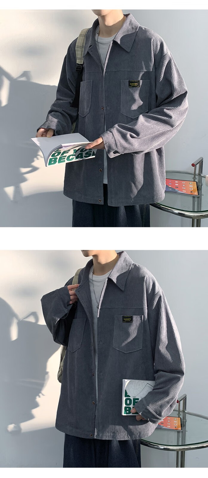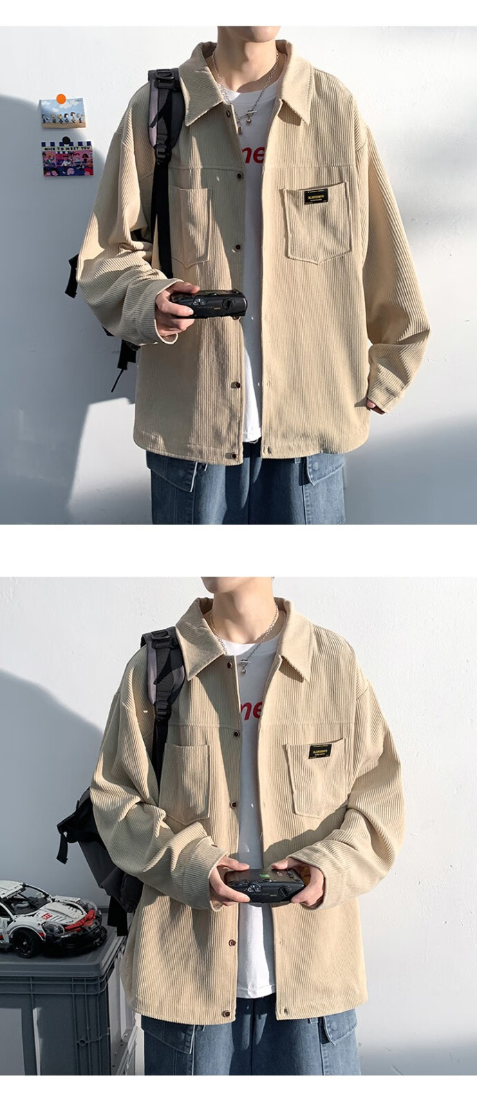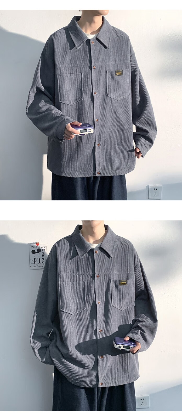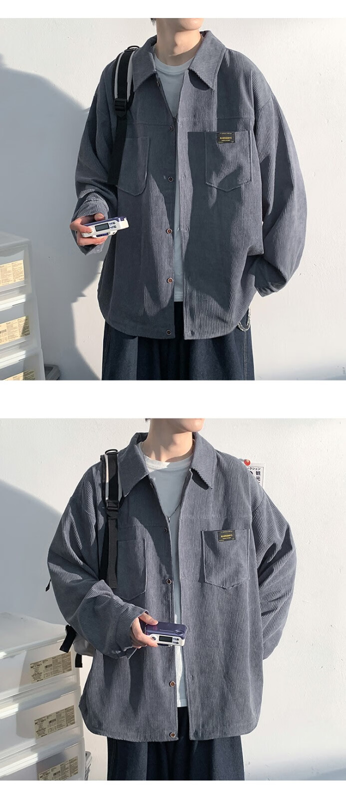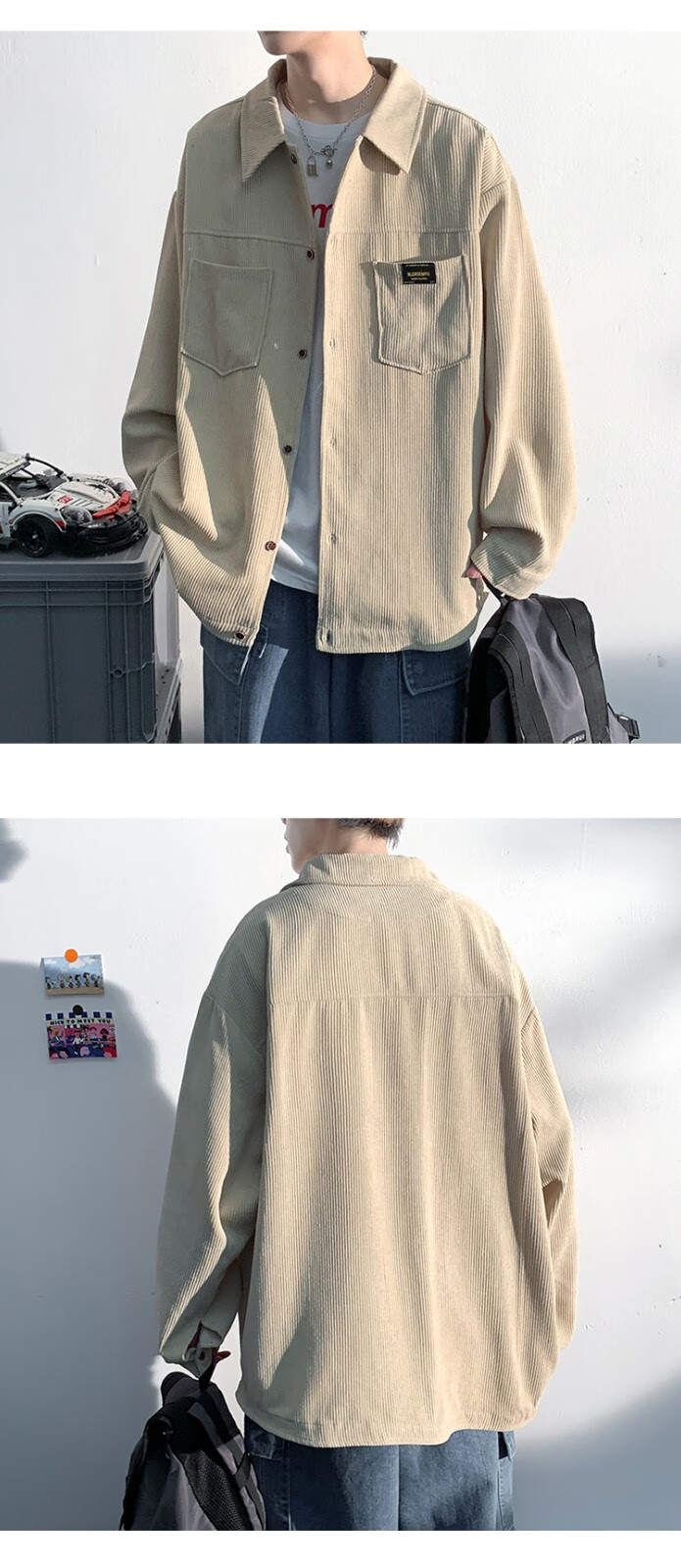 Baiqueting shirt men's 2025 autumn new Hong Kong style loose shirt jacket men's trendy brand fashion versatile casual tops black XL recommended 115-135 Jin Jin equals 0.5 kg