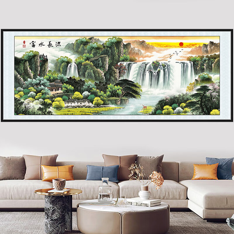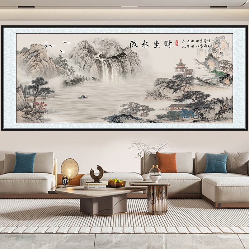 Xichao Landscape Painting Self-adhesive Wall Stickers Living Room Sofa Background Wall Mural Ink Painting Study Bedroom Self-adhesive Stickers Flowing Water Makes Money Type A Type A Length 140cm x Width 60cm