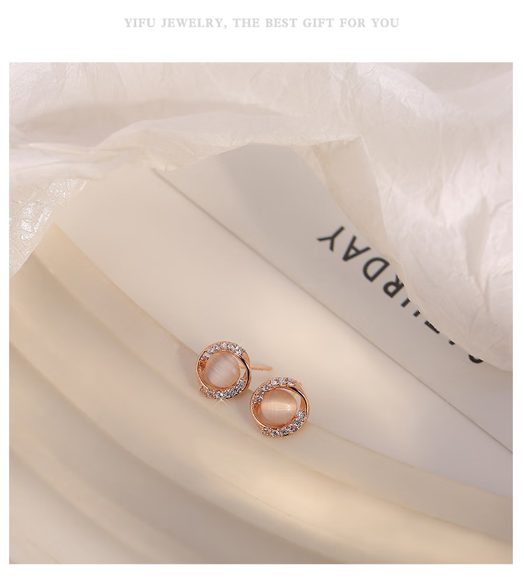 Idel's new design exquisite 925 silver earrings, high-end earrings, women's fashionable temperament circle imitation cat's eye earrings, circle earrings rose gold E2711