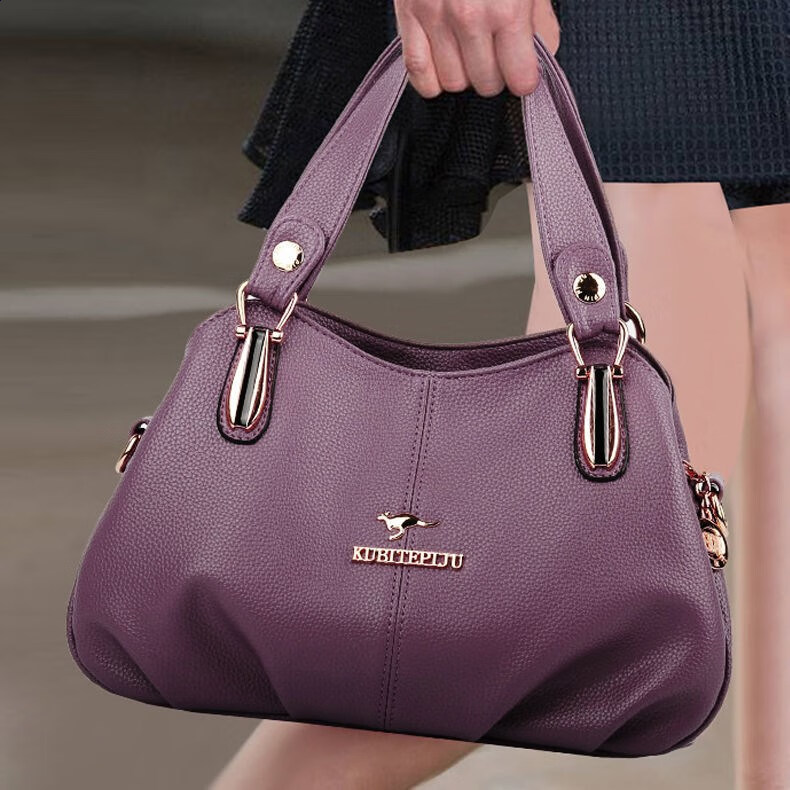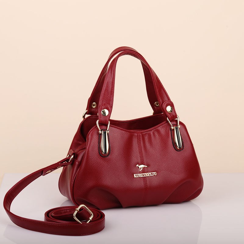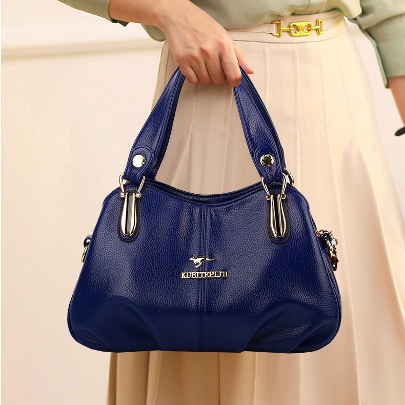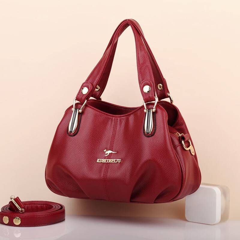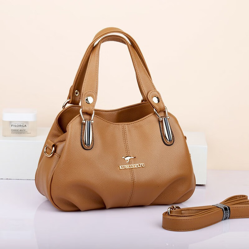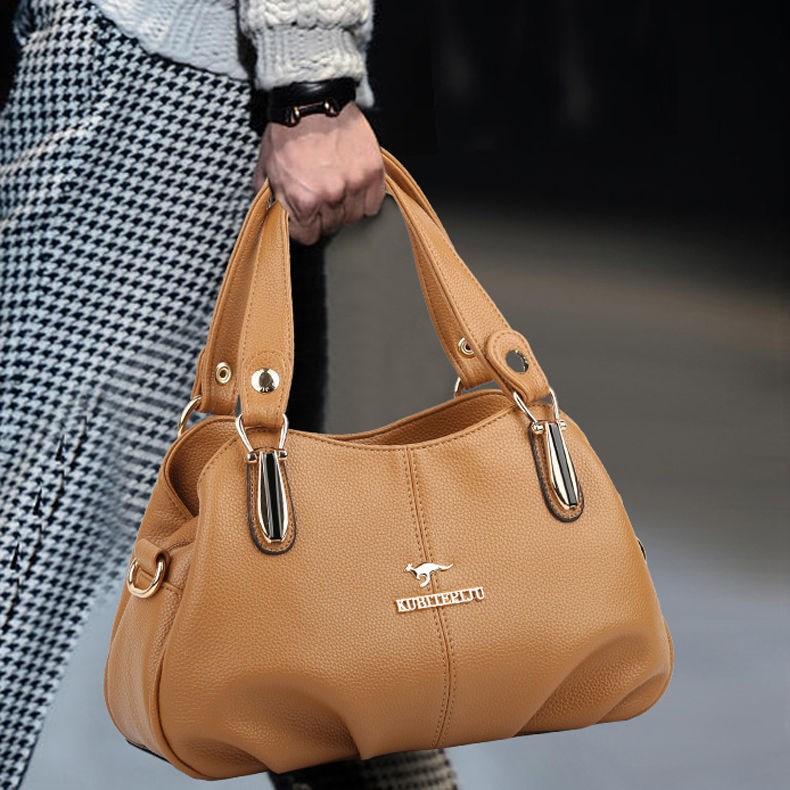 Kuqi Kangaroo Leather Bag Women's 2022 New Mom Bag Soft Leather Portable Shoulder Black Large Size