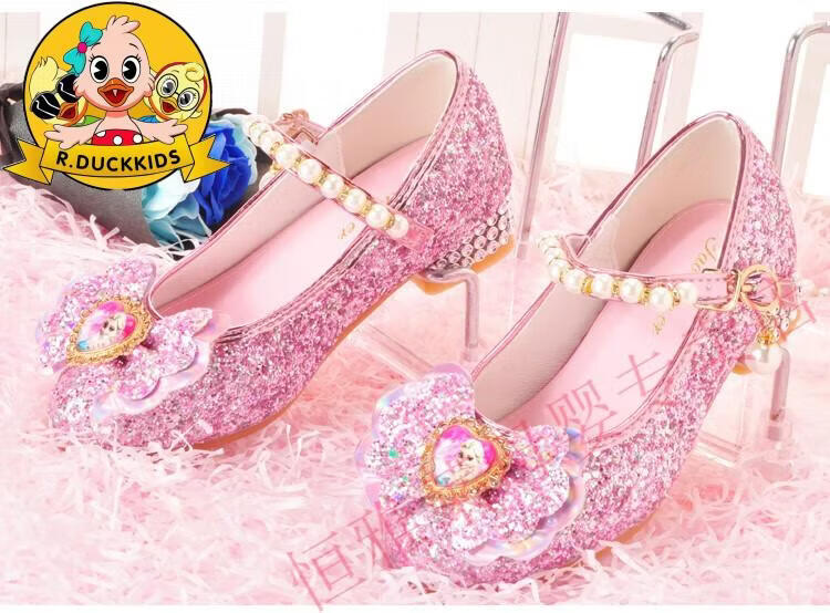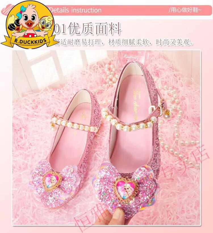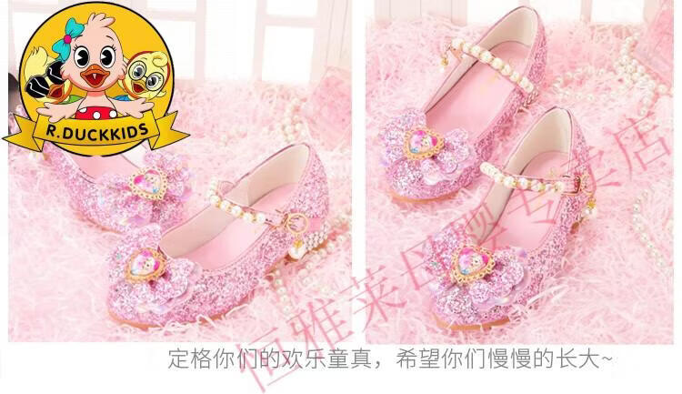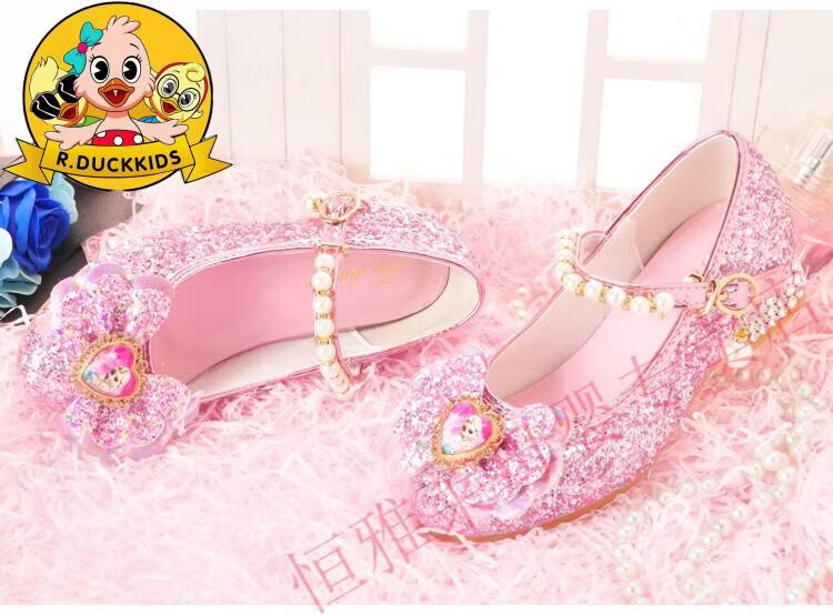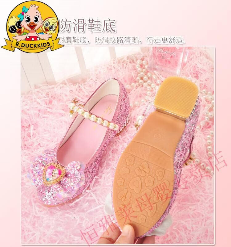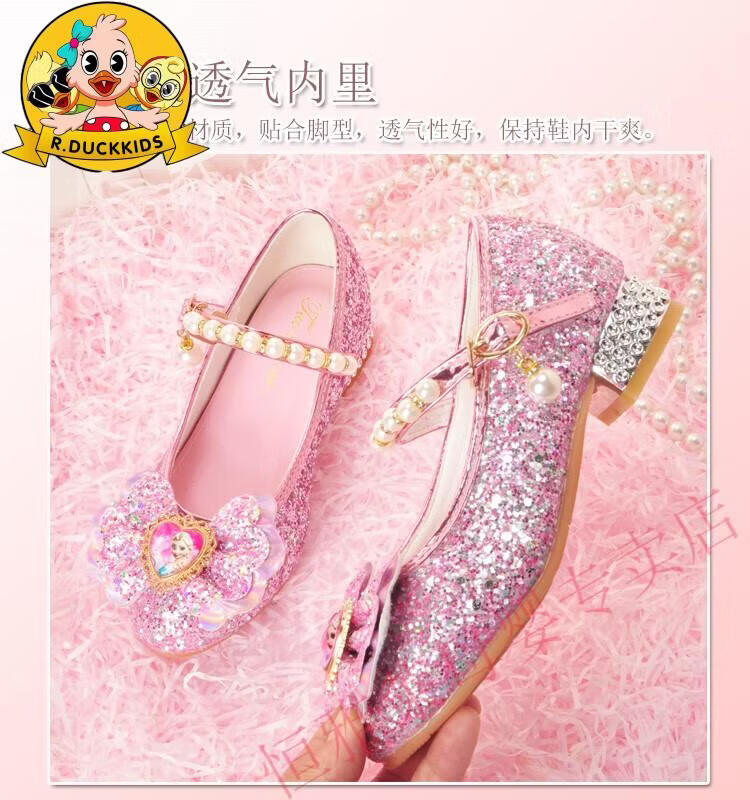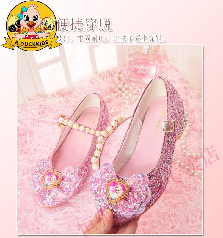 R.DUCKKIDS girls leather shoes Aisha single shoes 3 baby princess crystal shoes 5 students 6 girls 8 children catwalk performance high heels 990 flat pink size 26 inner length 16.8 cm