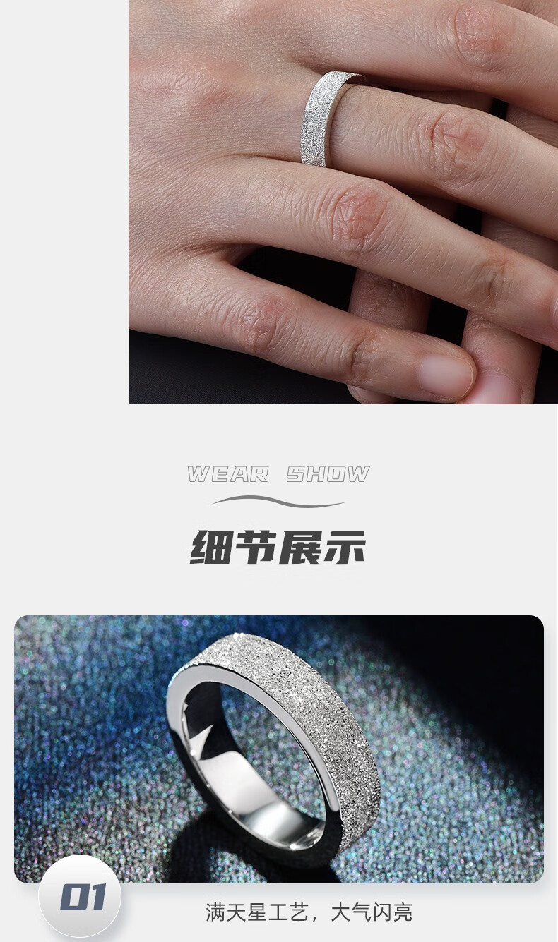GsunG platinum ring men's PT950 sparkling starry atmosphere couple style platinum ring women's fashion bright sand surface priced by gram contact before bidding