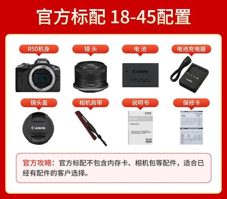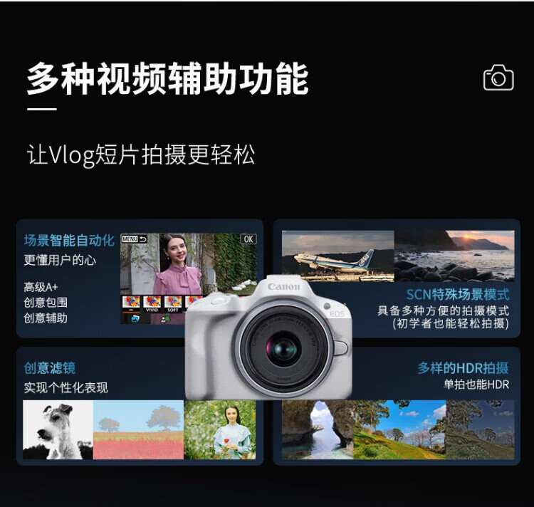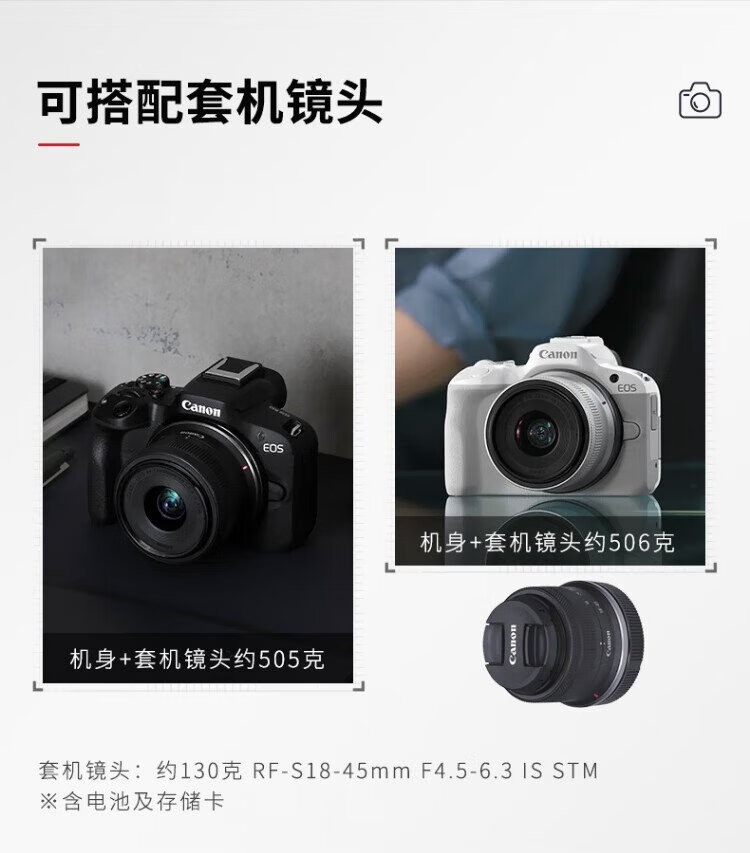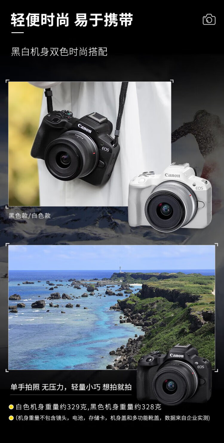 Canon EOS R50 mirrorless half-frame camera r50 compact and portable Vlog shooting live broadcast camera 4K short video R50 white 18-45 STM lens kit good gifts daily travel package (grab a limited time upgrade 256 memory card spree)