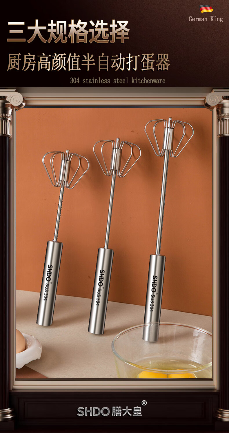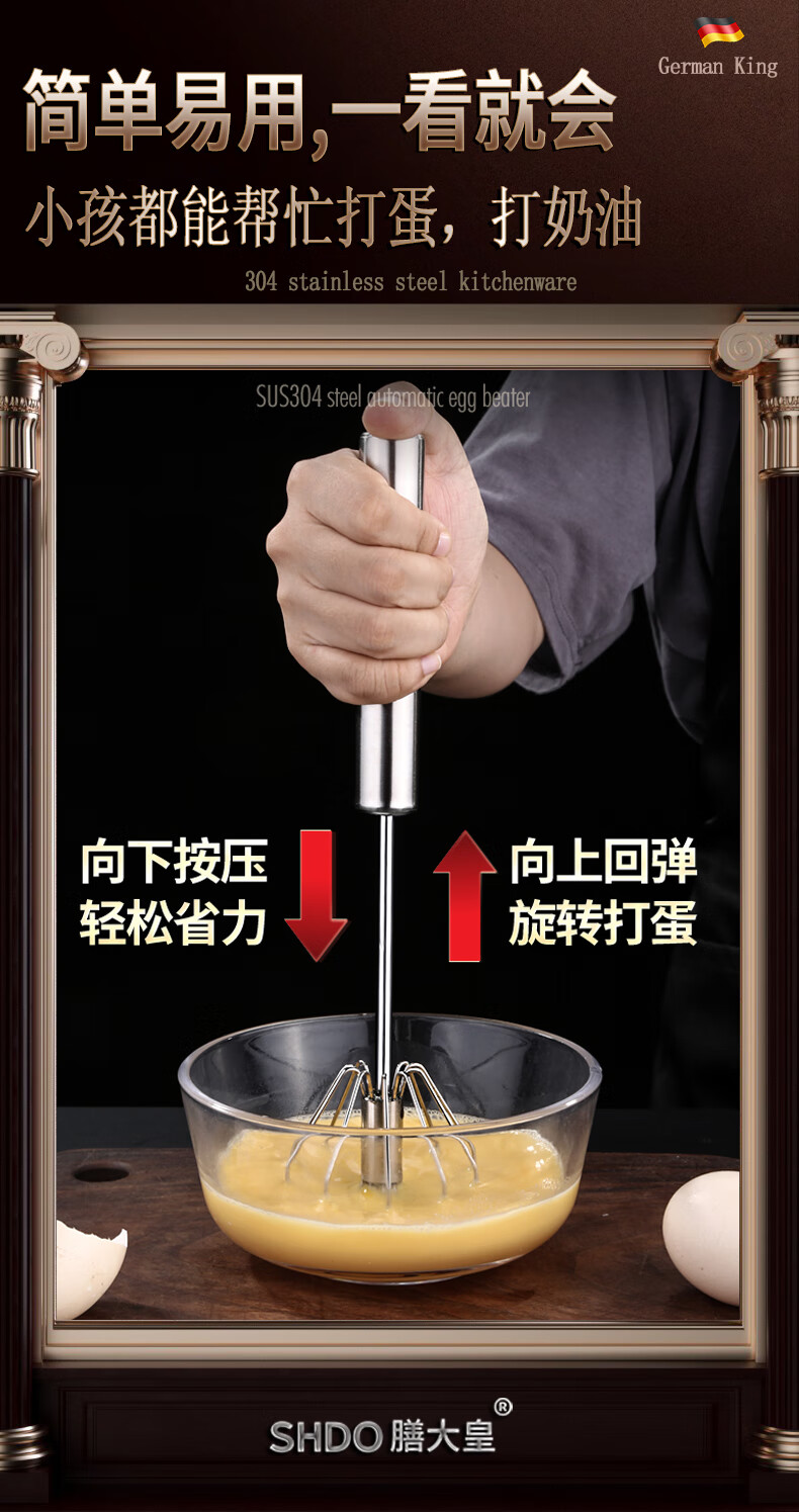 Shanda Huang (SHDO) German semi-automatic egg beater 304 stainless steel hand-held egg beater press beater egg beater artifact small 304 German semi-automatic egg beater