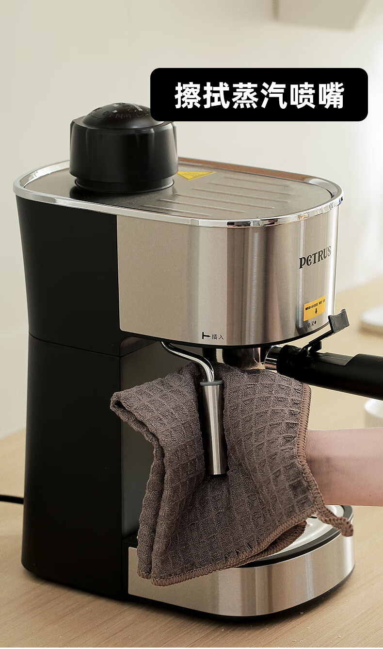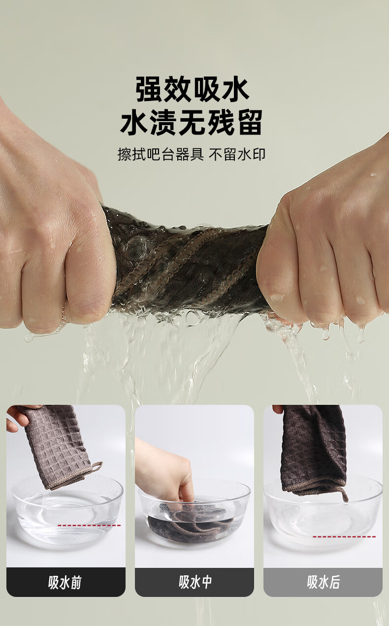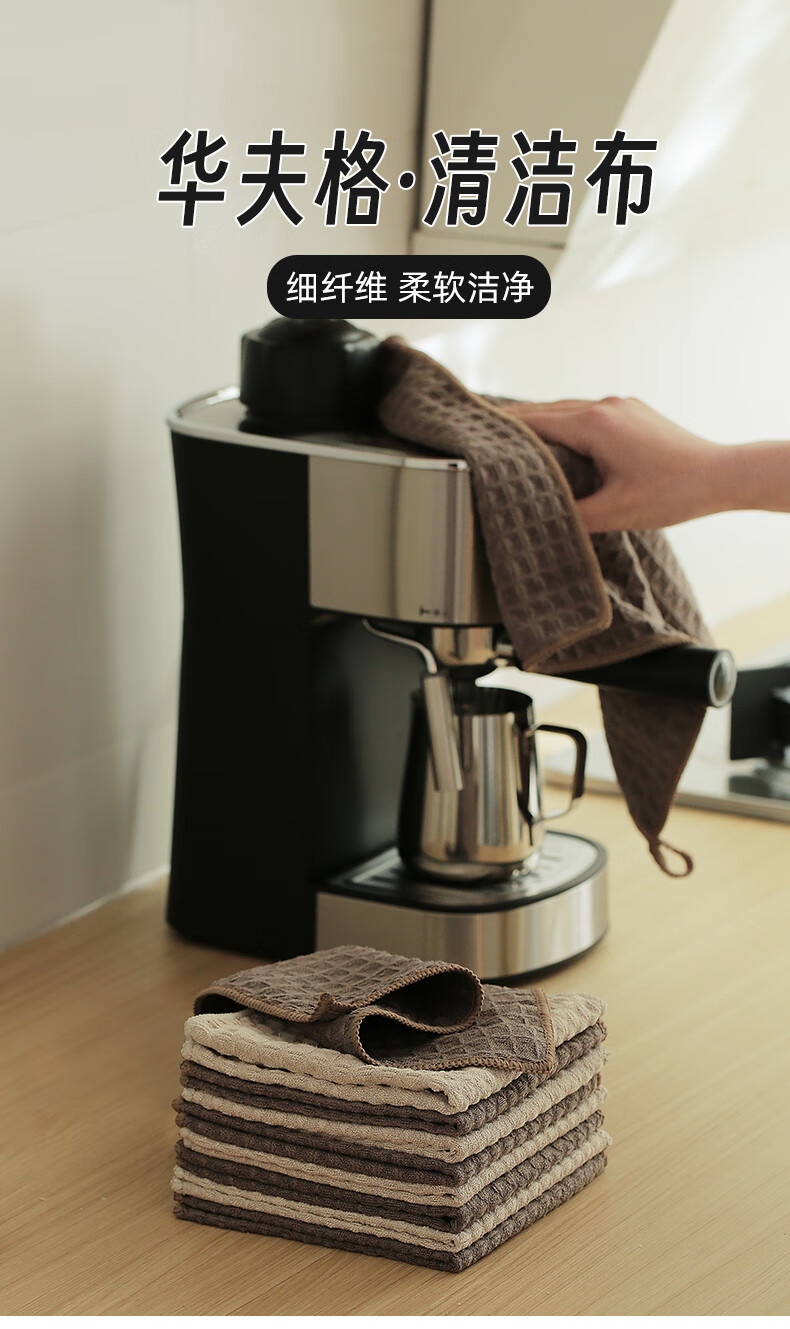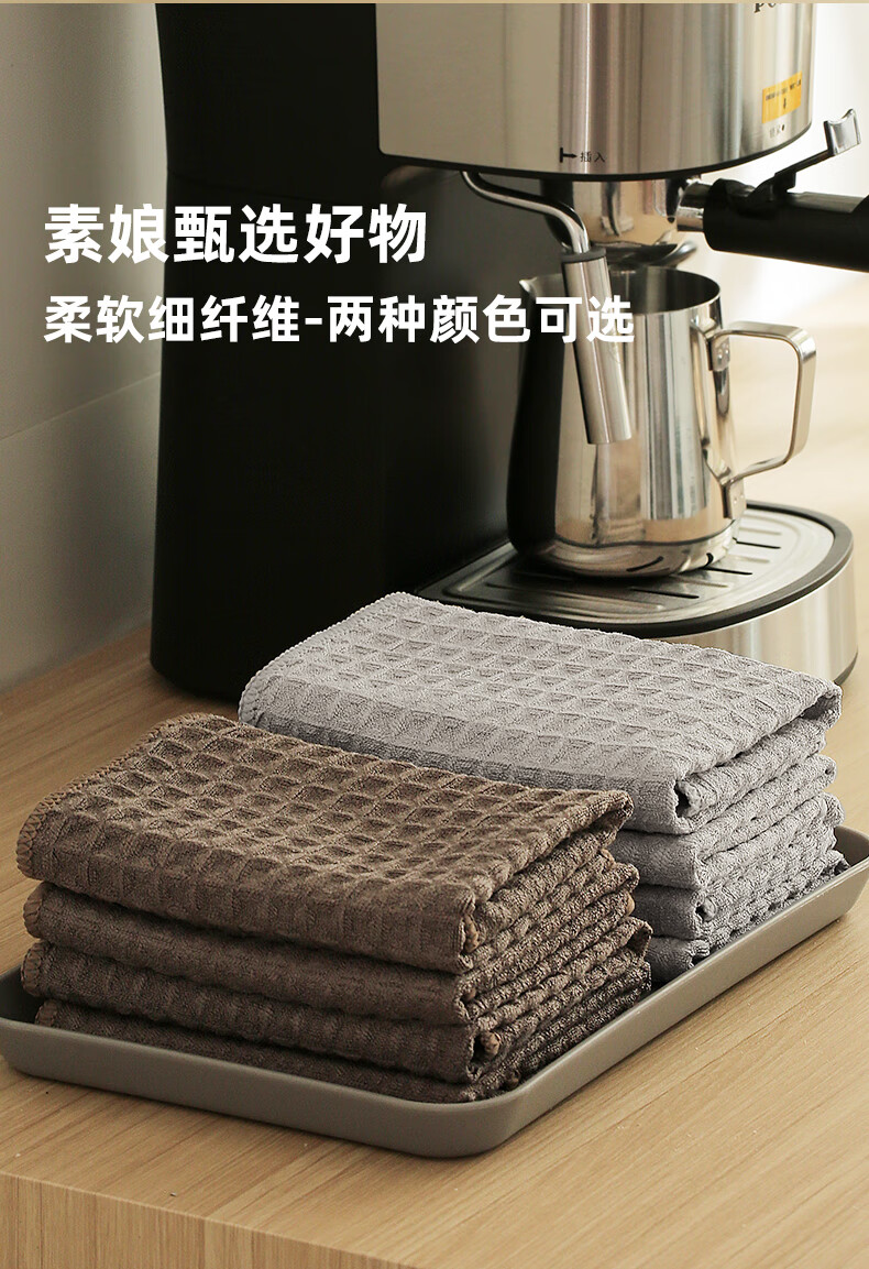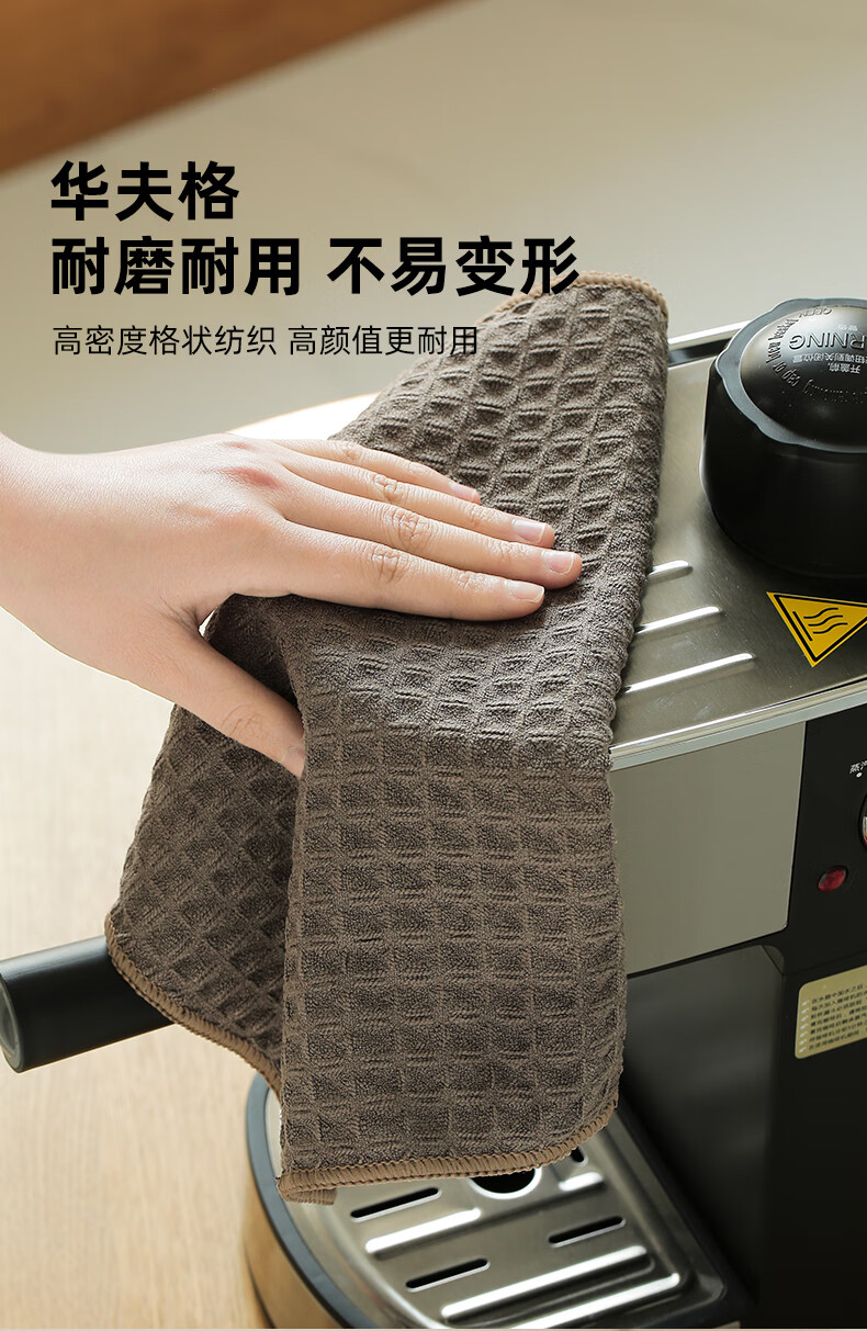 Su Niang waffle dishcloth, coffee machine milk tea shop bar special towel, absorbent and lint-free, household dishwashing cloth, edge-locking lanyard, brown 4-pack