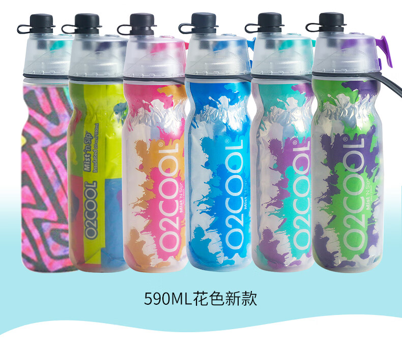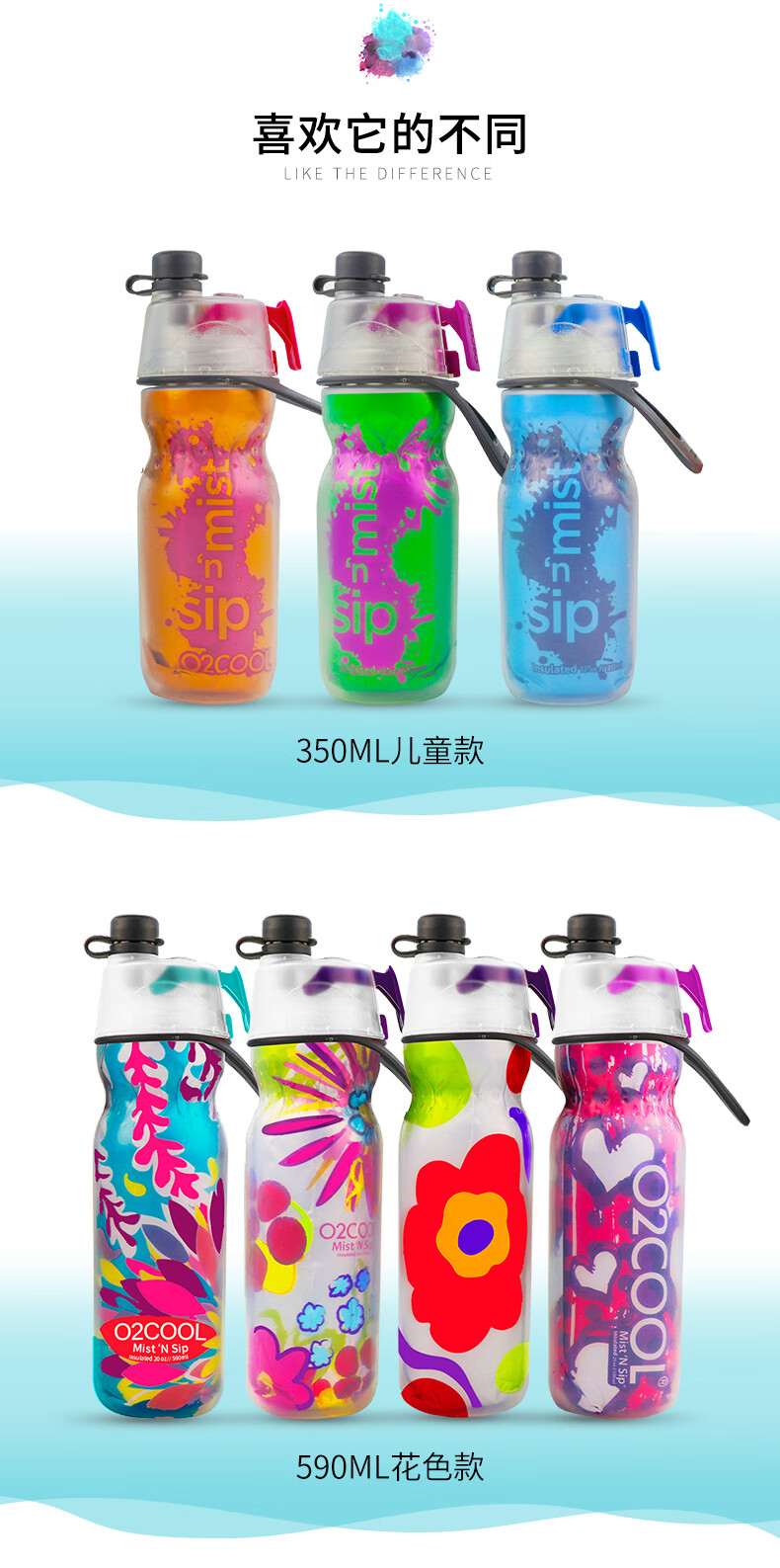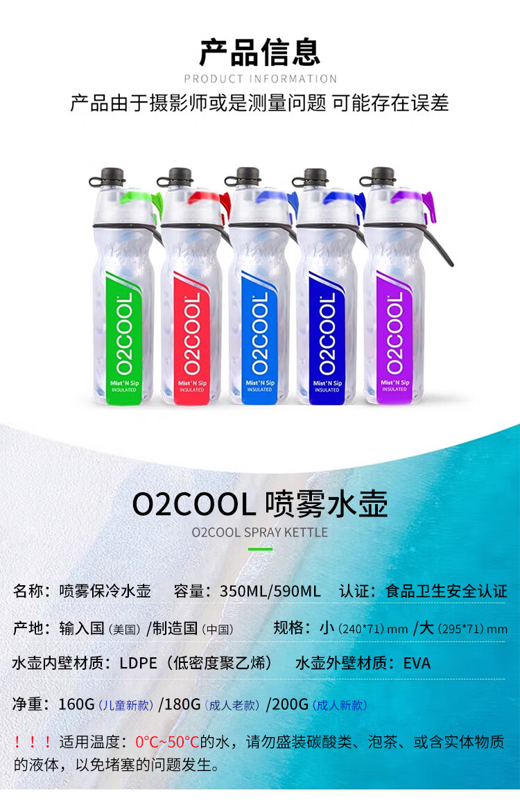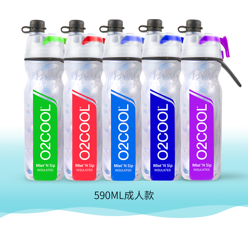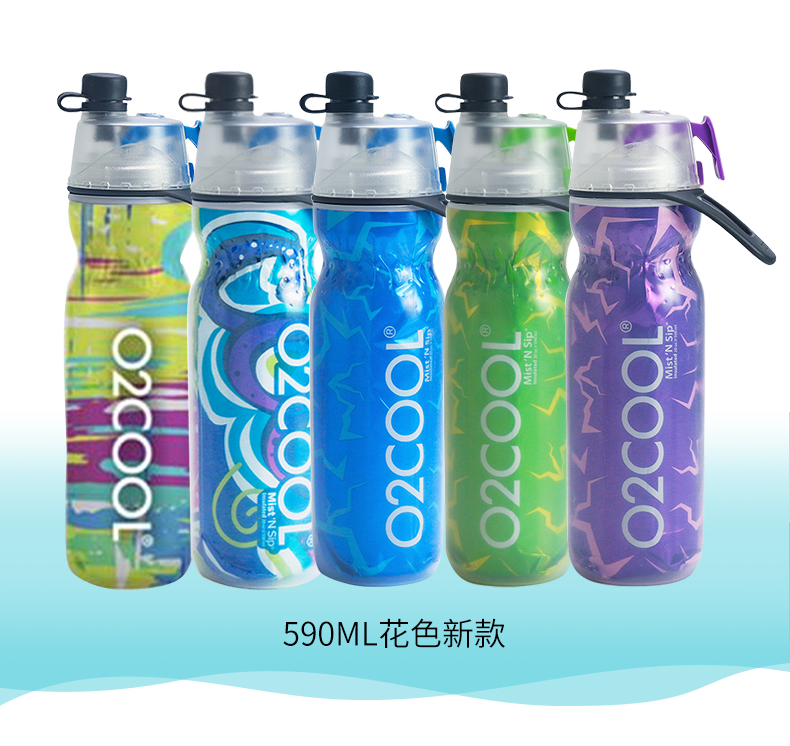 O2COOL Spray Water Cup for Children and Students Spray Water Cup for Adults Outdoor Sports and Fitness Cooling and Cooling Squeeze Soft Bottle Crack Blue 590ml