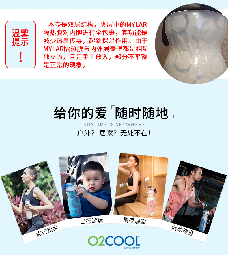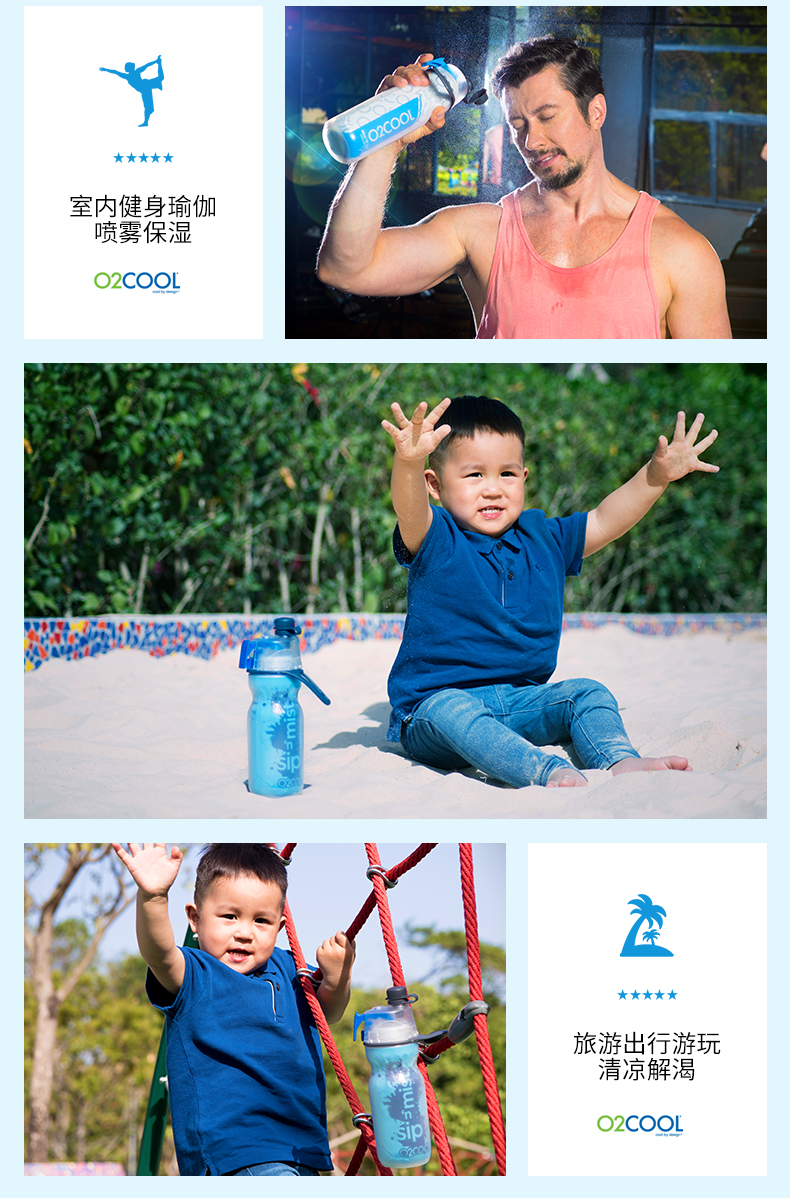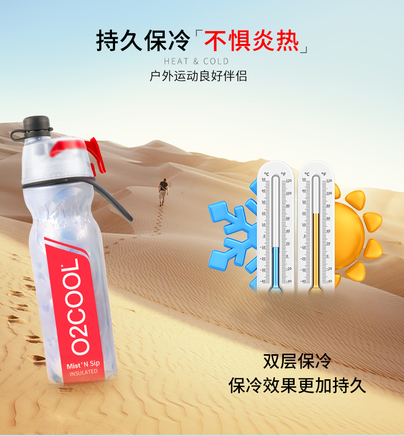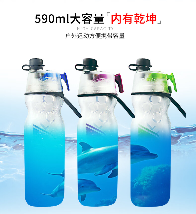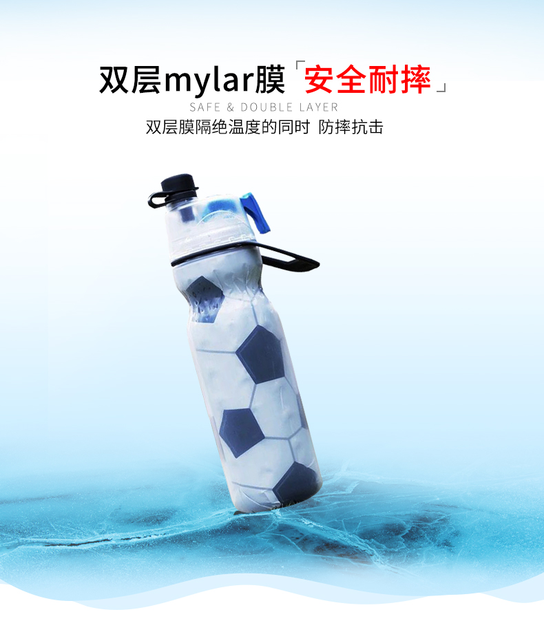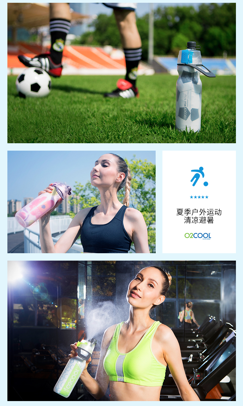O2COOL Spray Water Cup for Children and Students Spray Water Cup for Adults Outdoor Sports and Fitness Cooling and Cooling Squeeze Soft Bottle Crack Blue 590ml