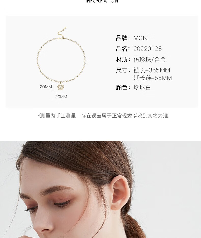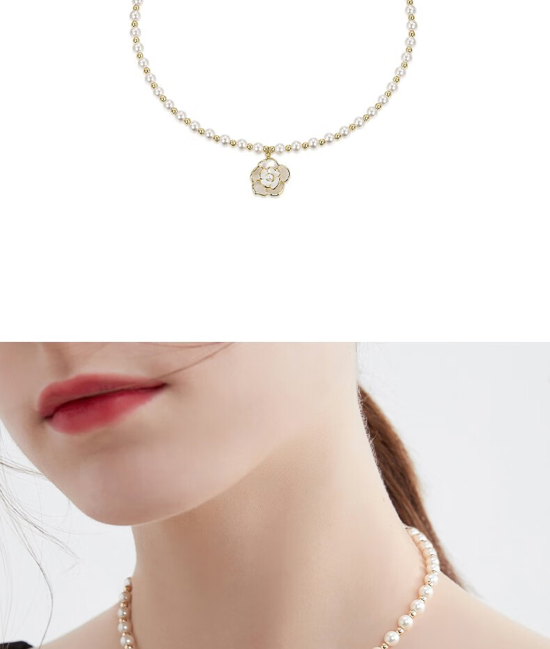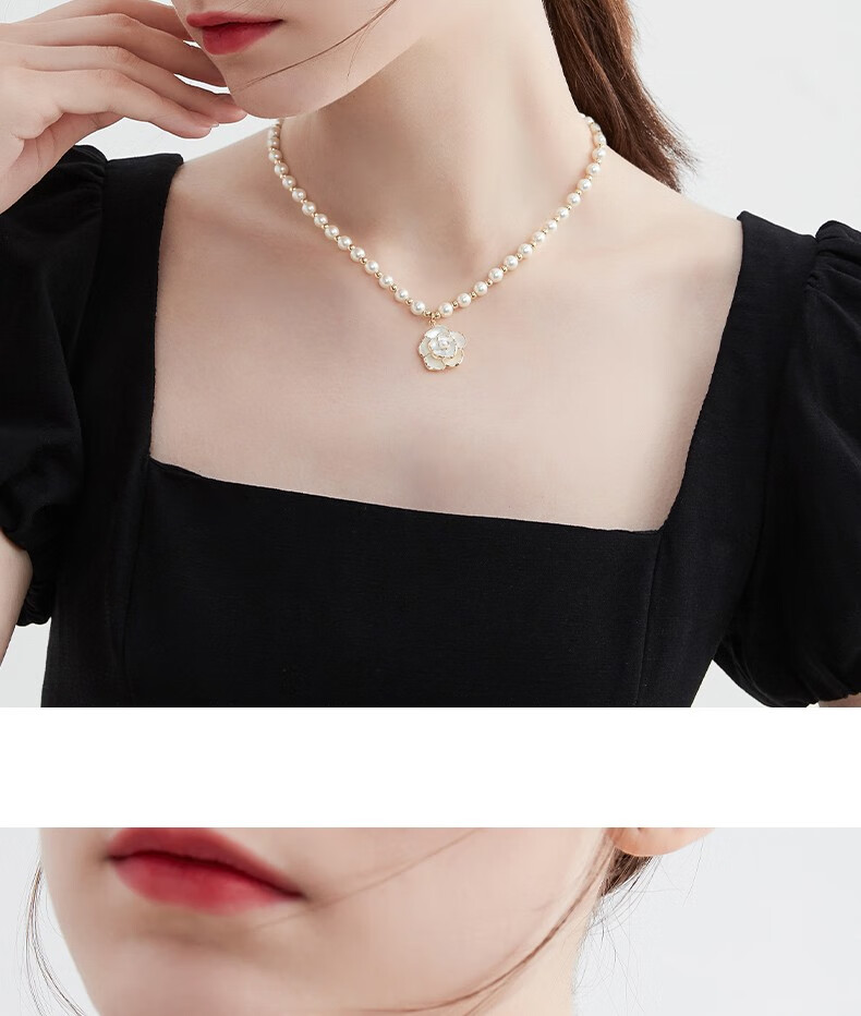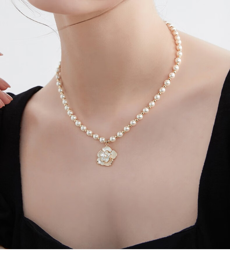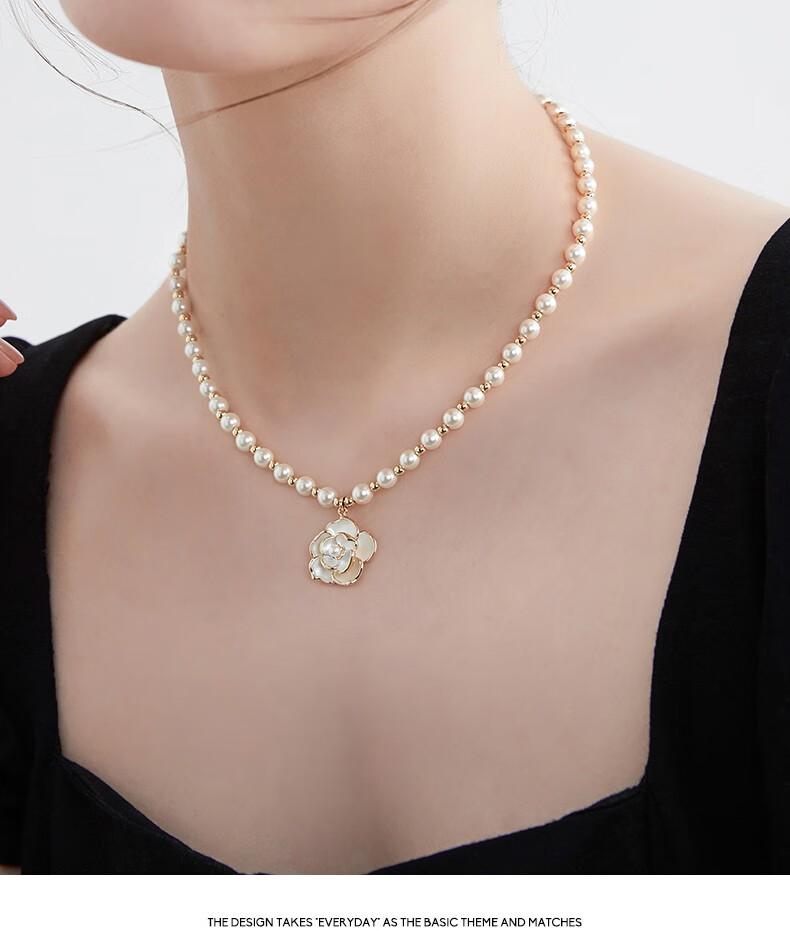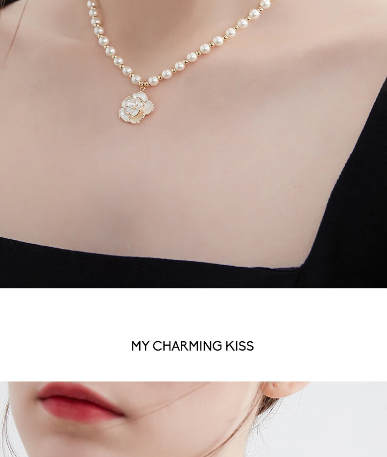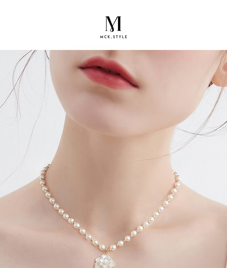 Mck Camellia Imitation Pearl Necklace Women's Necklace Clavicle Chain Girlfriend Chinese Valentine's Day Gift