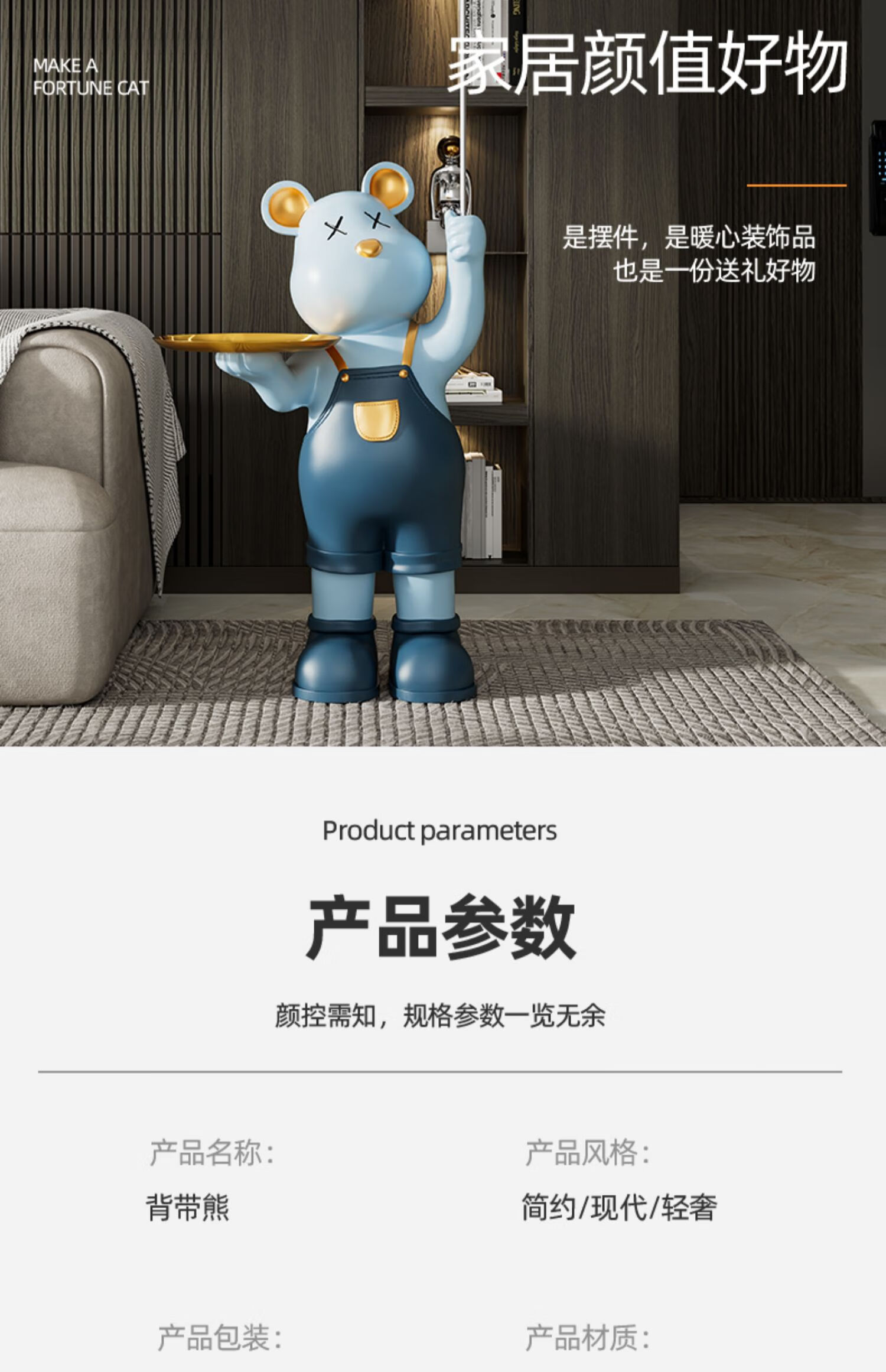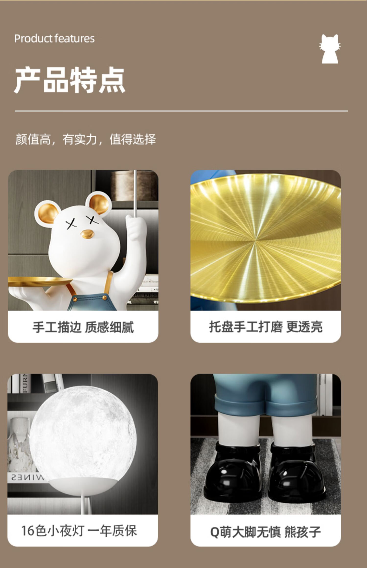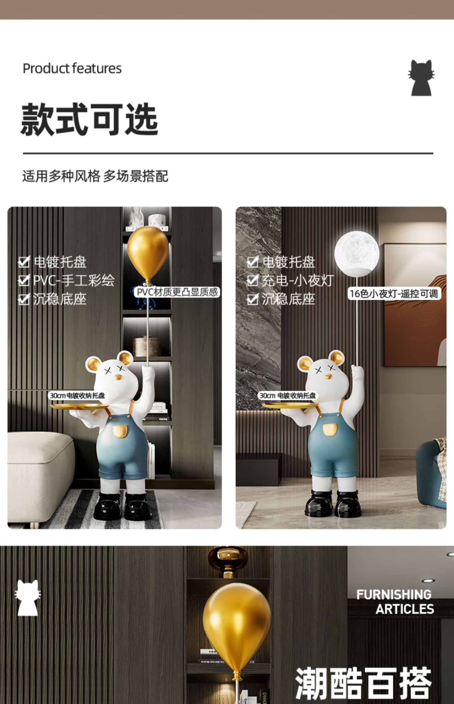 Jizhao Violent Bear Large Ornament Floor-standing Living Room TV Cabinet Sofa Next Home Decoration Housewarming Gift Blue Bluetooth Speaker + Piggy Bank 115CM No Specifications