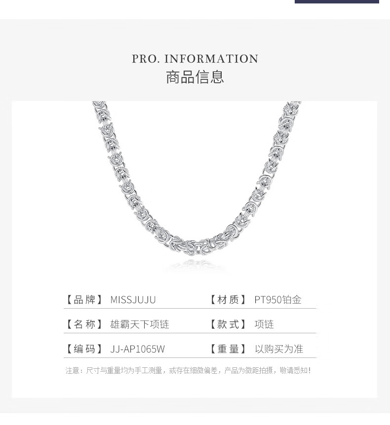 Miss JuJu pt950 platinum necklace men's platinum necklace keel chain domineering faucet buckle looks thick Thai plain chain (customized) 48-50g long 58-60cm thick about 3.5mm