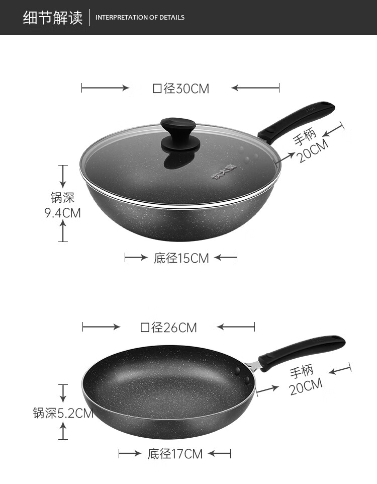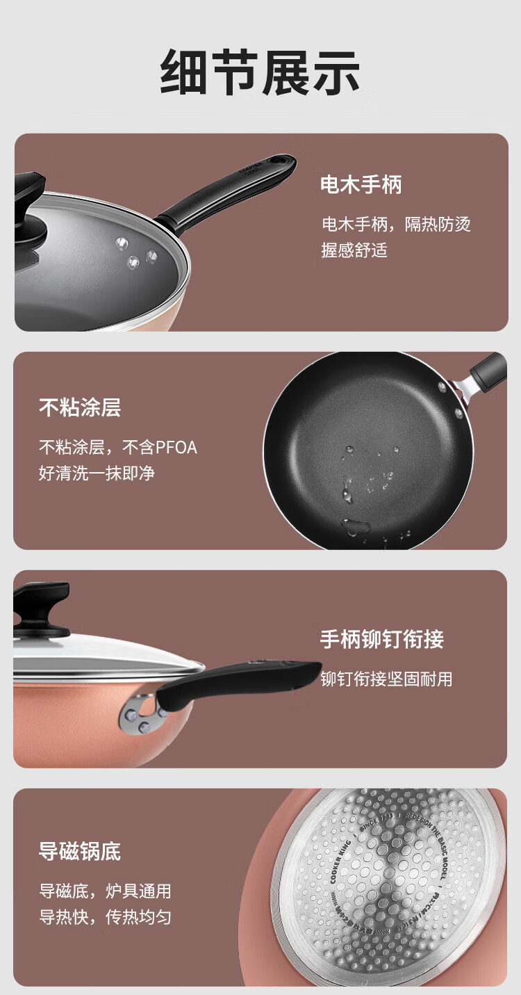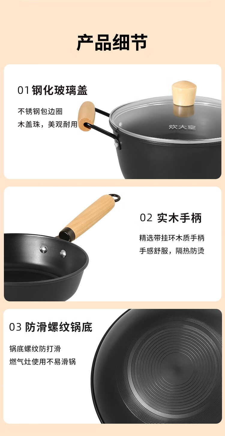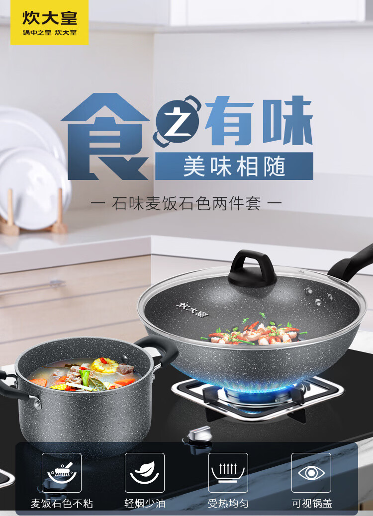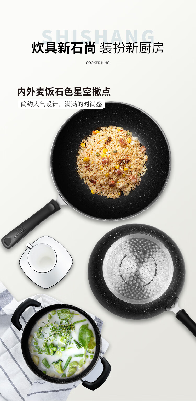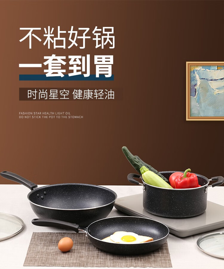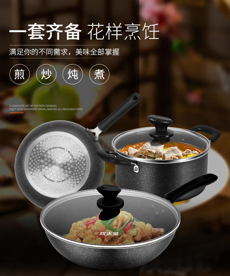 Cuidahuang non-stick pot set wok frying pan soup pot wok cooking pot household pan induction cooker gas stove universal elegant three-piece set + WG46628 3-piece set