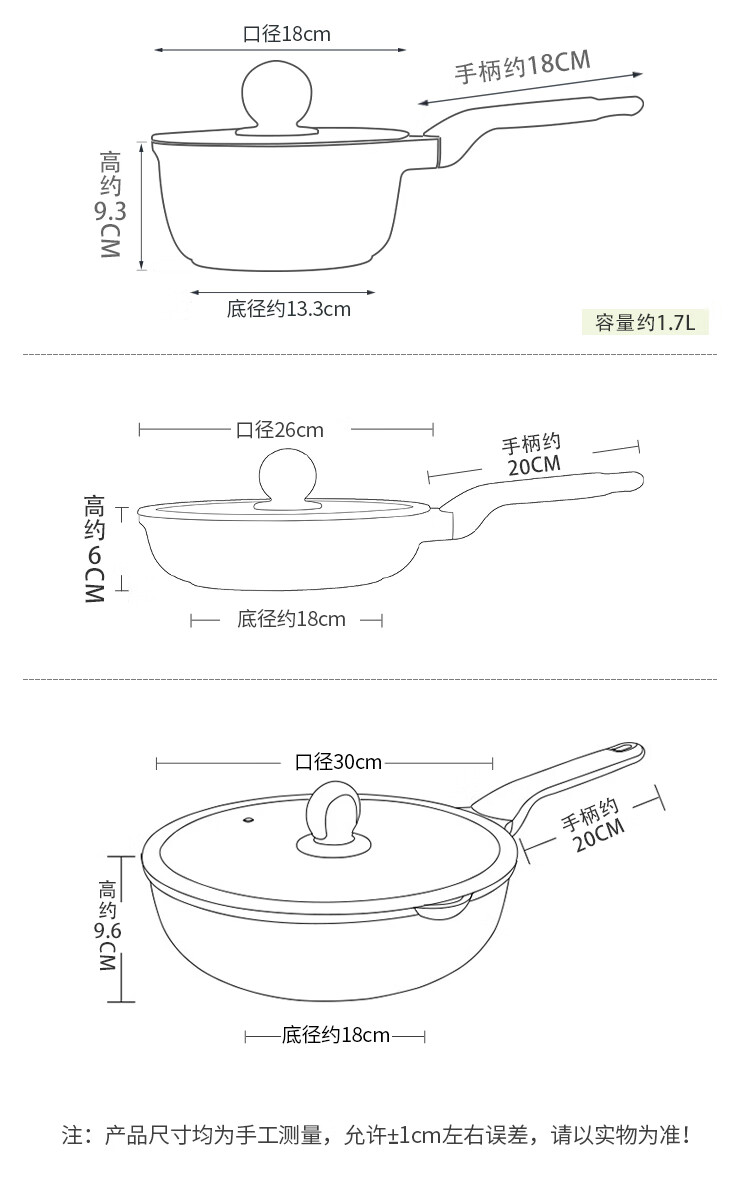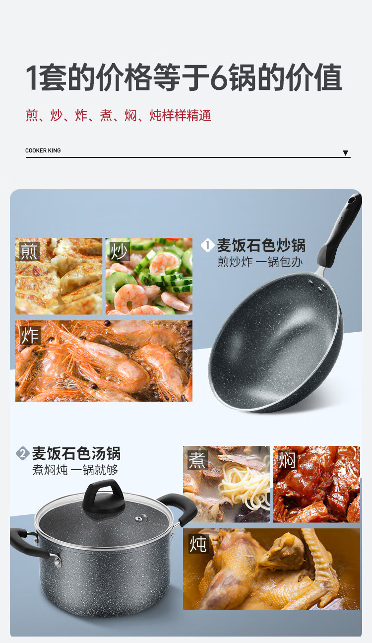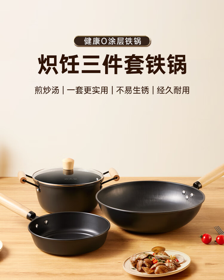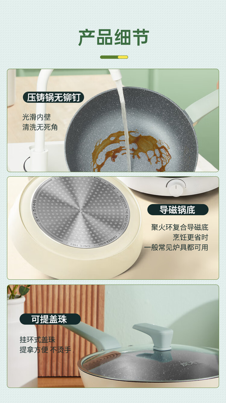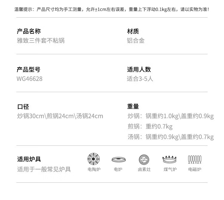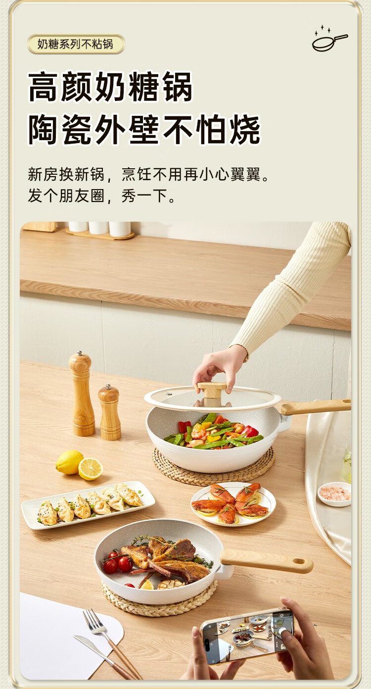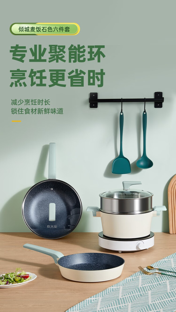 Cuidahuang non-stick pot set wok frying pan soup pot wok cooking pot household pan induction cooker gas stove universal elegant three-piece set + WG46628 3-piece set