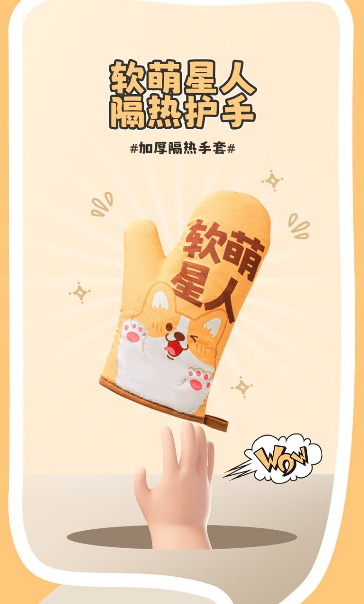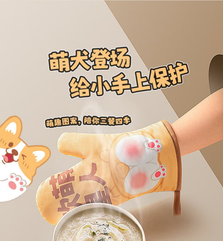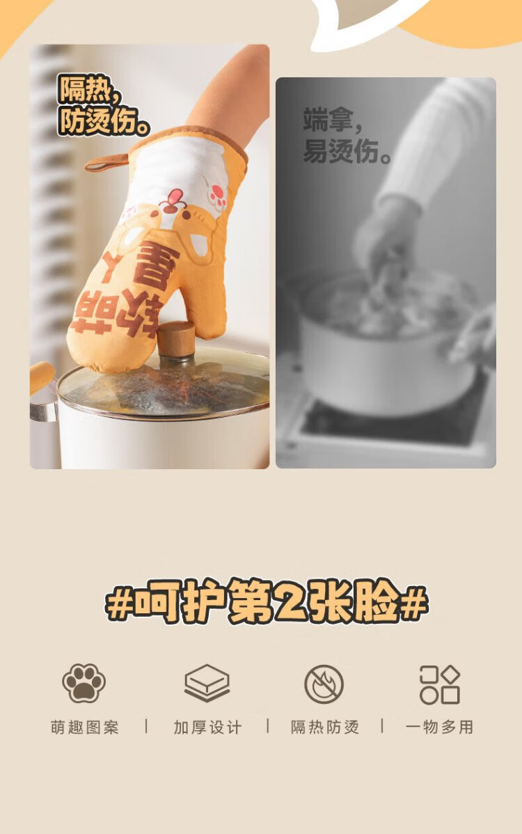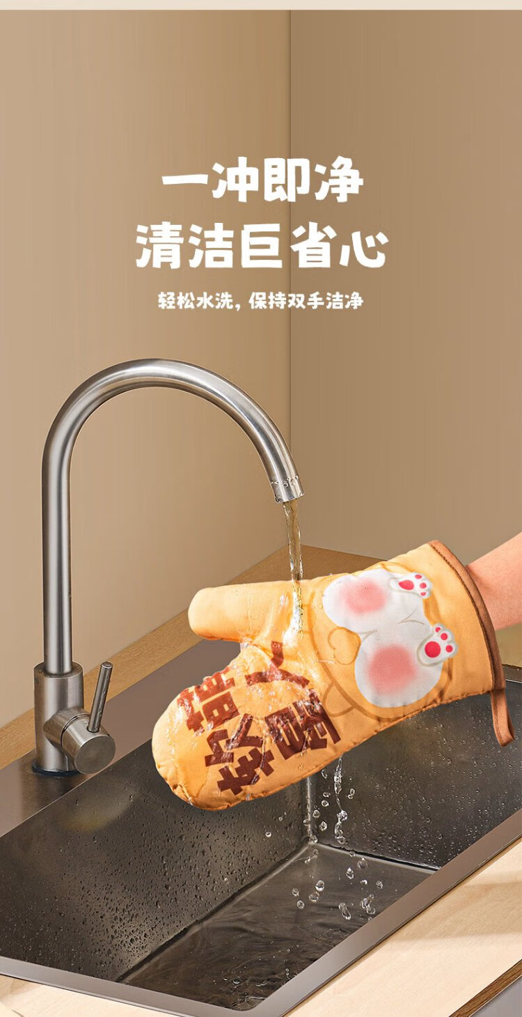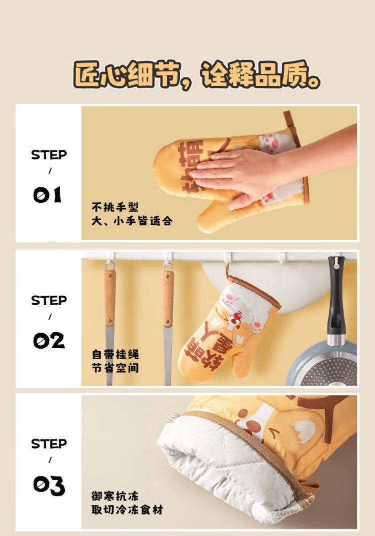 Magic kitchen insulation gloves, anti-scalding gloves, oven microwave gloves, high temperature resistant kitchen baking gloves, three-layer cotton, thickened, two packs - Miao Li Full Open
