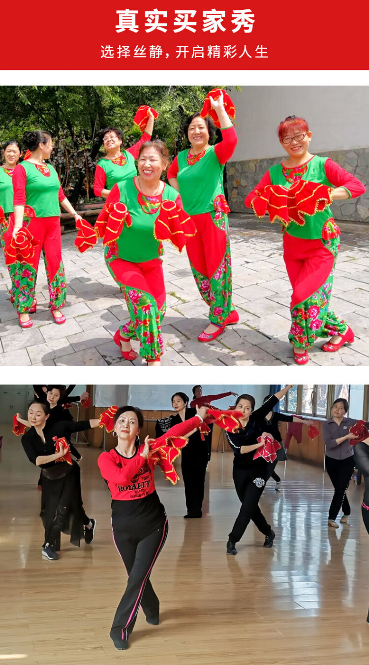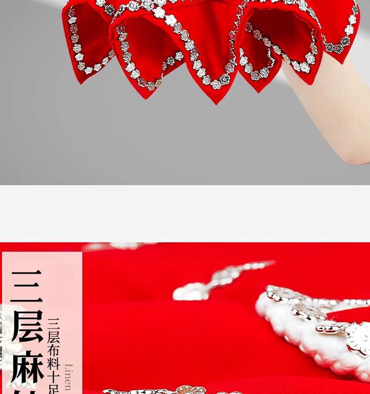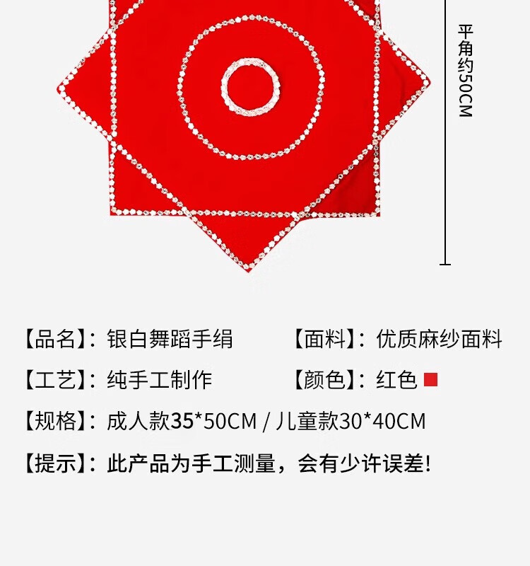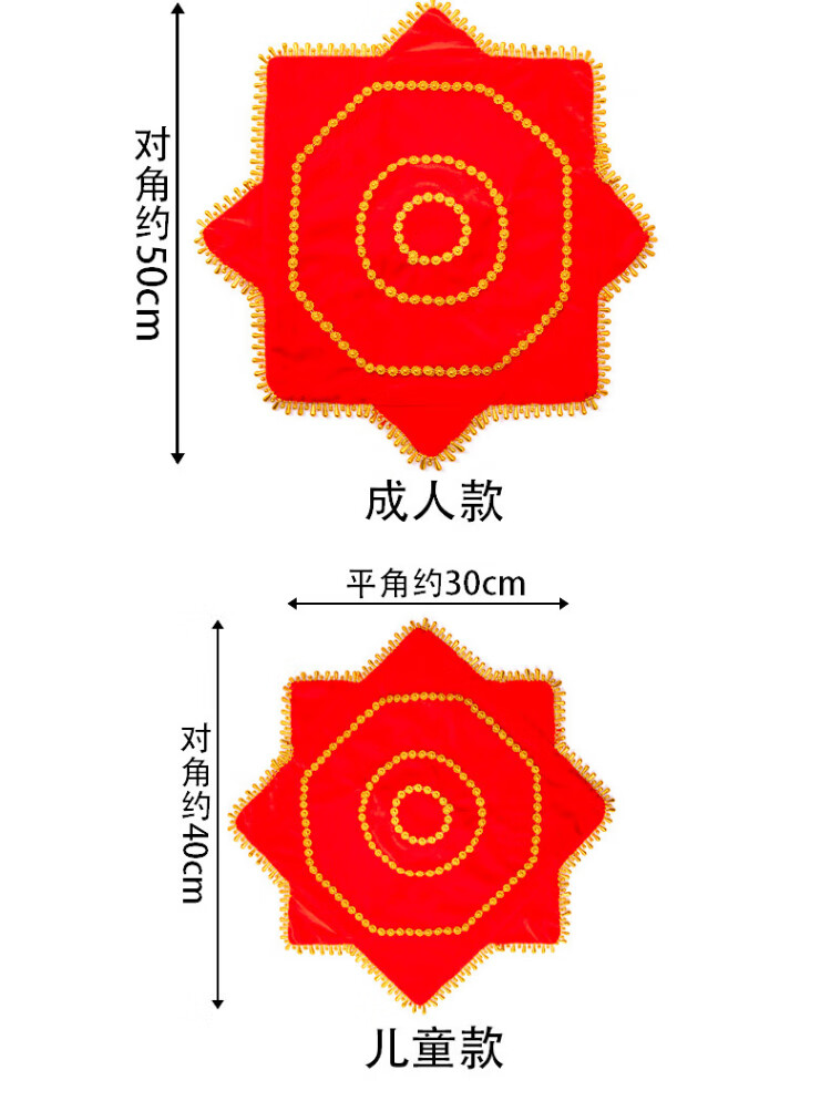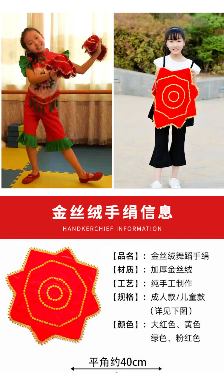 Yang Peng handkerchief flower dance two-person octagonal scarf for grade examination for children square dance Northeast Yangko dance red handkerchief gold velvet adult style bright red one pair