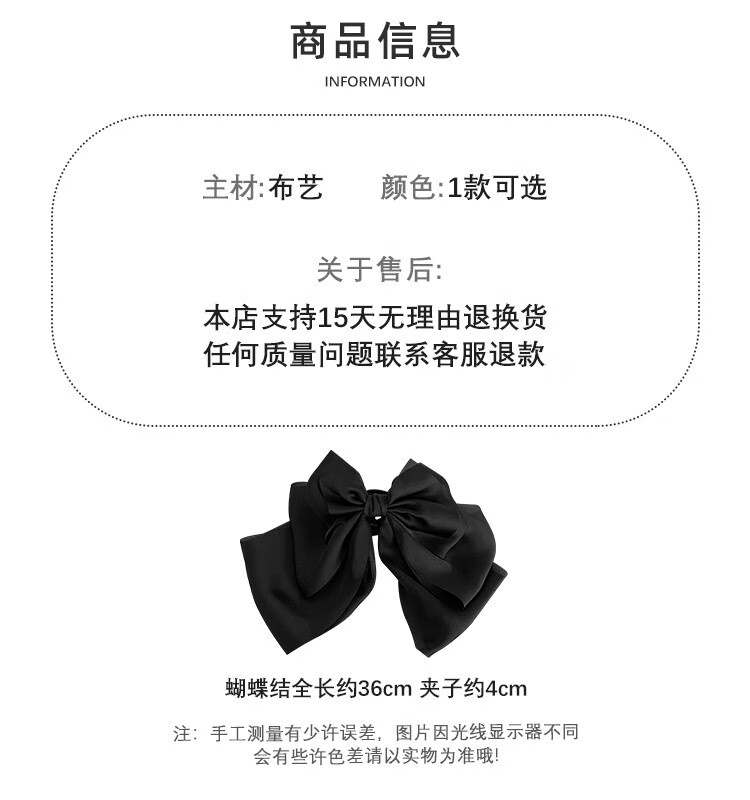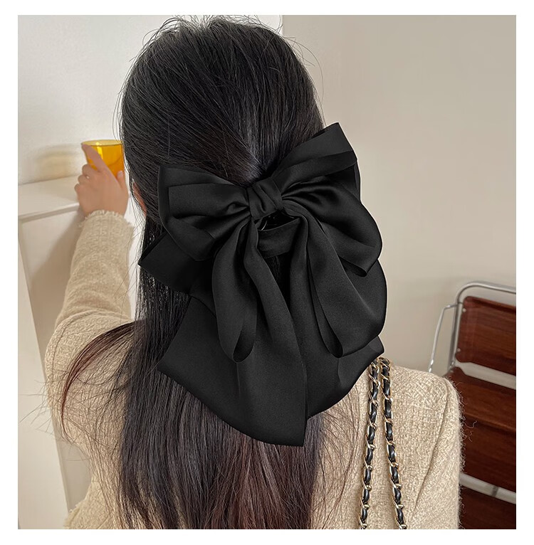 Zhuo Keke French style black satin oversized bow ribbon hairpin women's back head grabber hairpin hairpin hairpin hairpin hairpin hairpin black