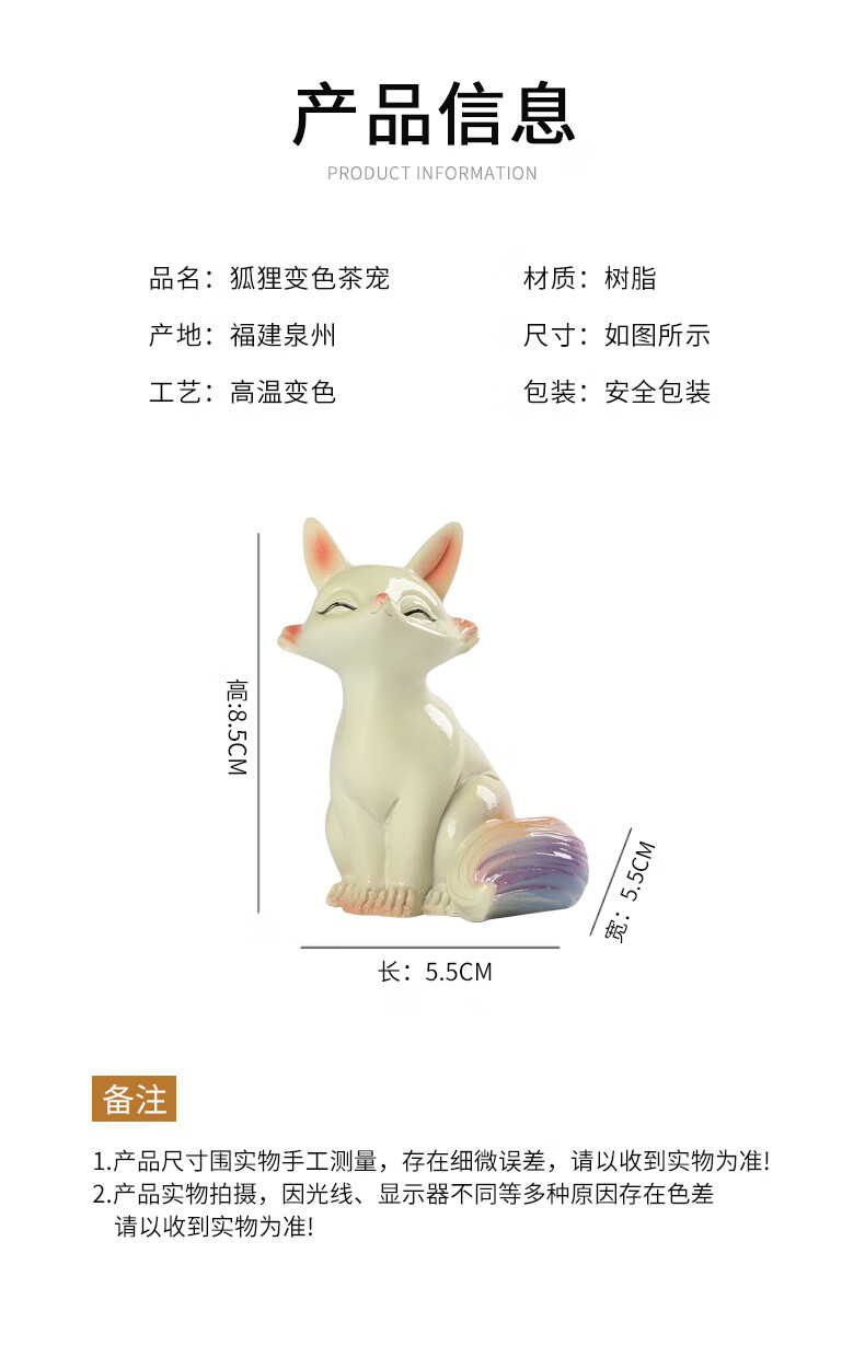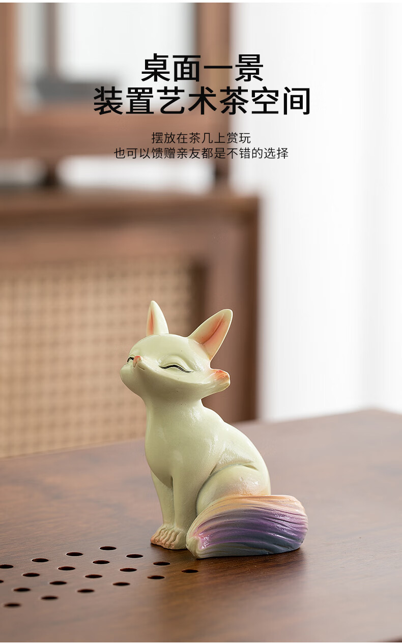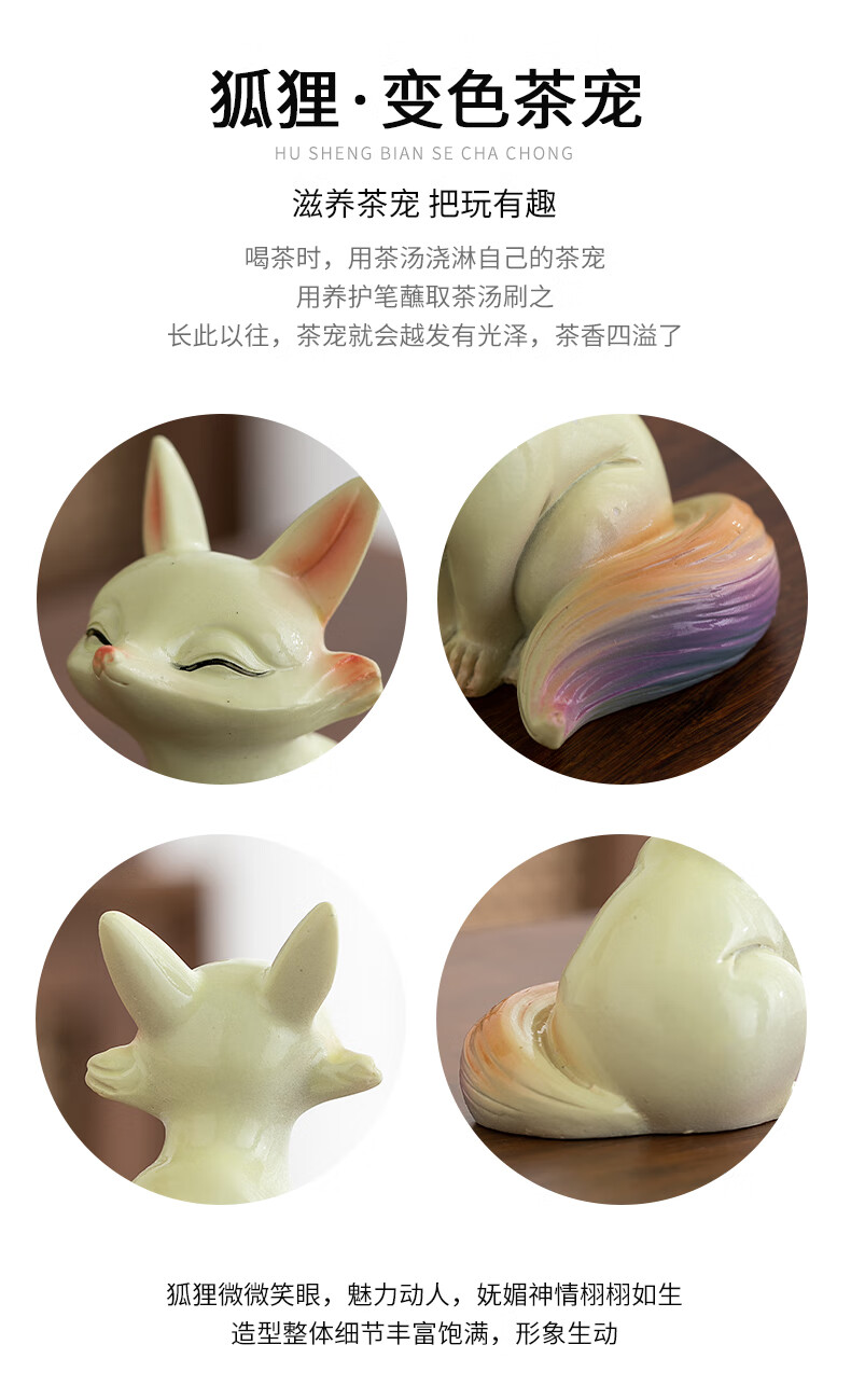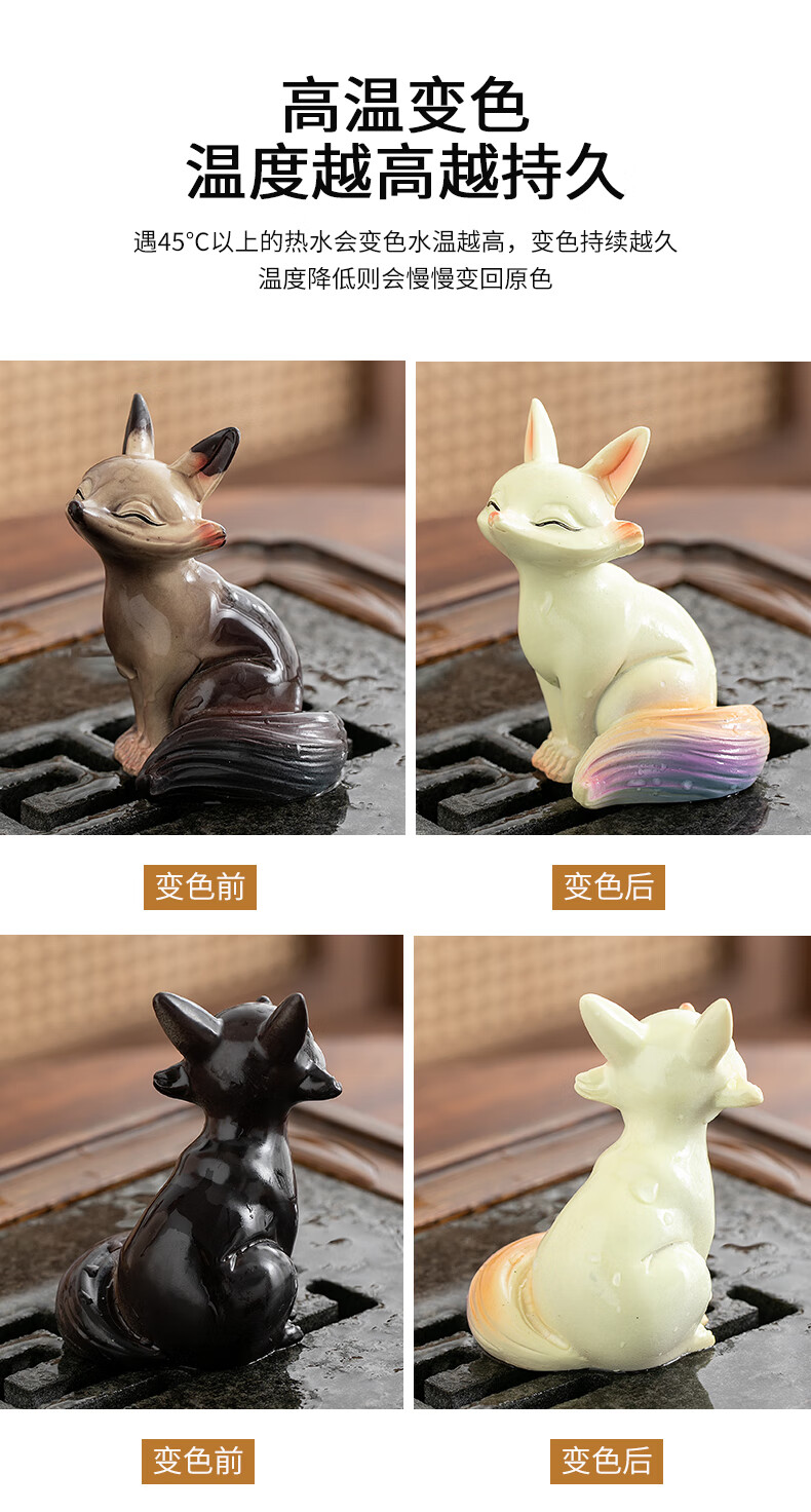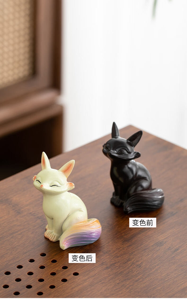 At noon, the color-changing little fox tea pet can raise fine tea, tea tray, tea table, tea set accessories, tea table couple resin ornaments, color-changing tea pet fox