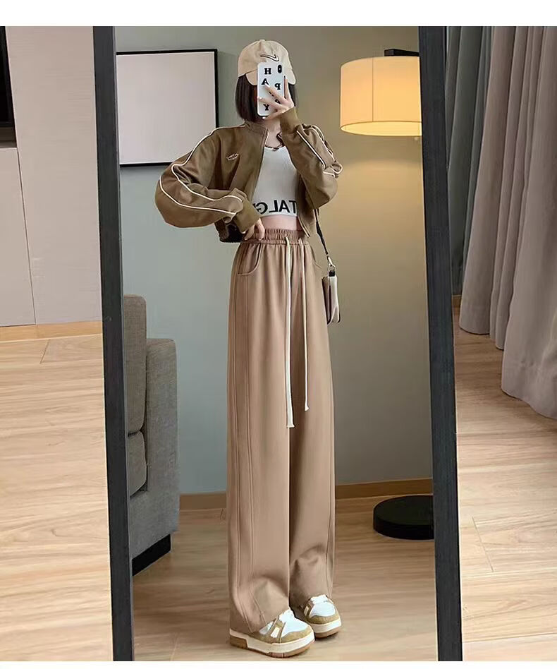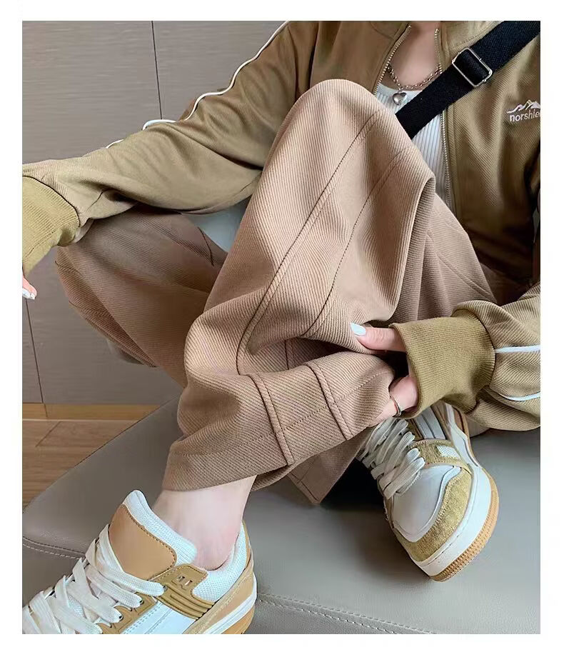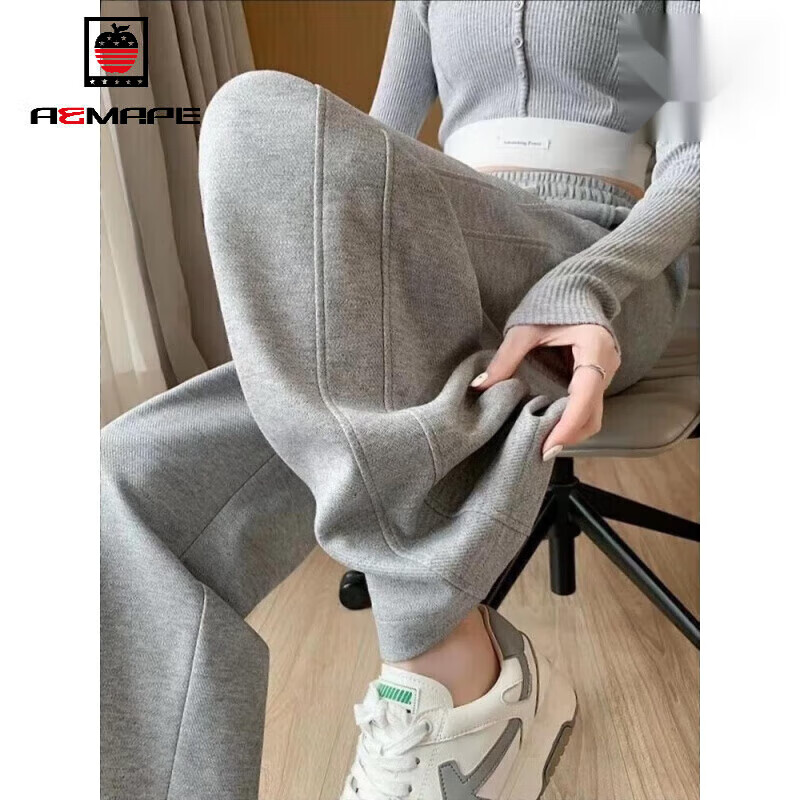AEMAPE Banana Pants Women's 2025 Spring, Autumn and Winter New Casual Pants Women's High Waist Loose Straight Wide Leg Pants MX-12-1354_Black Slimming Legs L_Recommended 111-125Jin Jin is equal to 0.5 kg