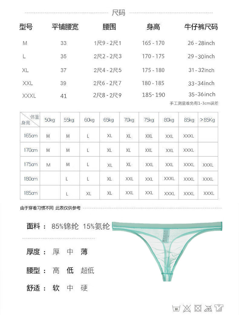 Guiruo men's nude transparent thong thin mesh sexy underwear seductive breathable young men's T-pants sex toy white XXXL