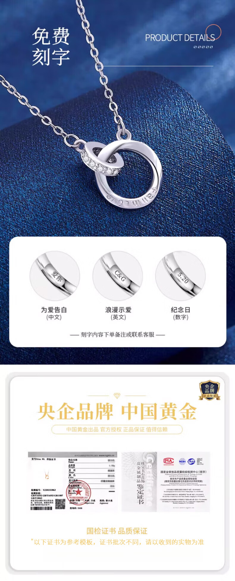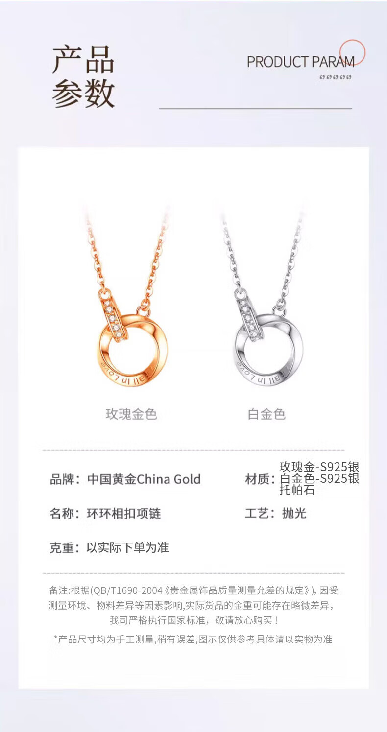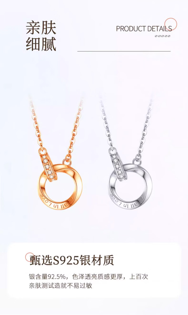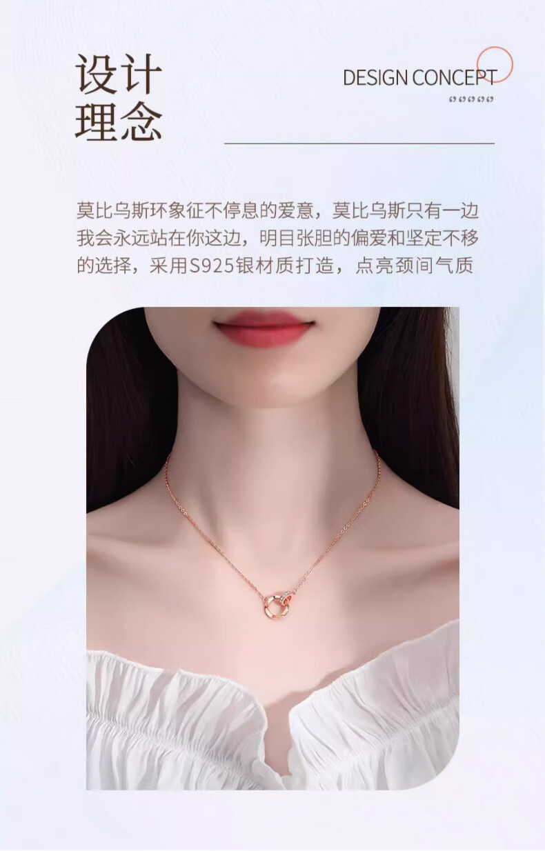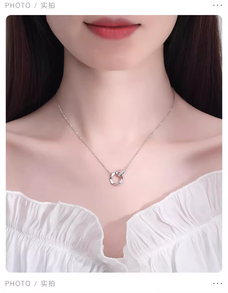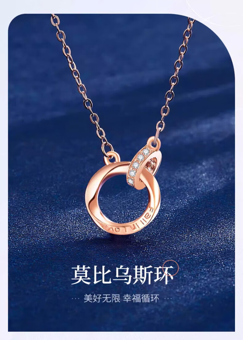 CHINA GOLD Möbius Ring Silver Necklace Women's Pendant Silver Jewelry Valentine's Day Practical Birthday Gift for Girlfriend and Wife Jingsuda Möbius Necklace Platinum-Zhongjin Gift Box