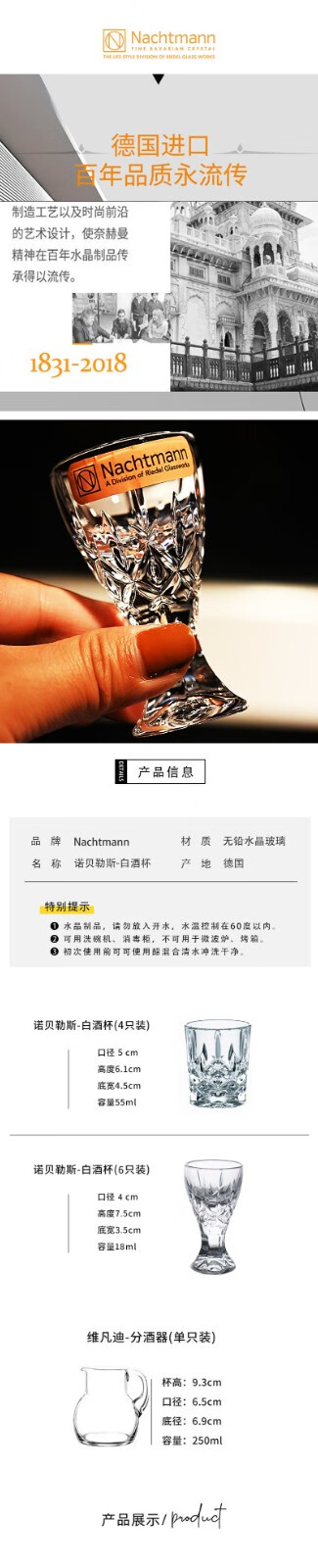 Naichmann German imported crystal glass household light luxury white wine glass small wine glass one cup one or two spirits glass set Nobeles tall white wine glass (single price