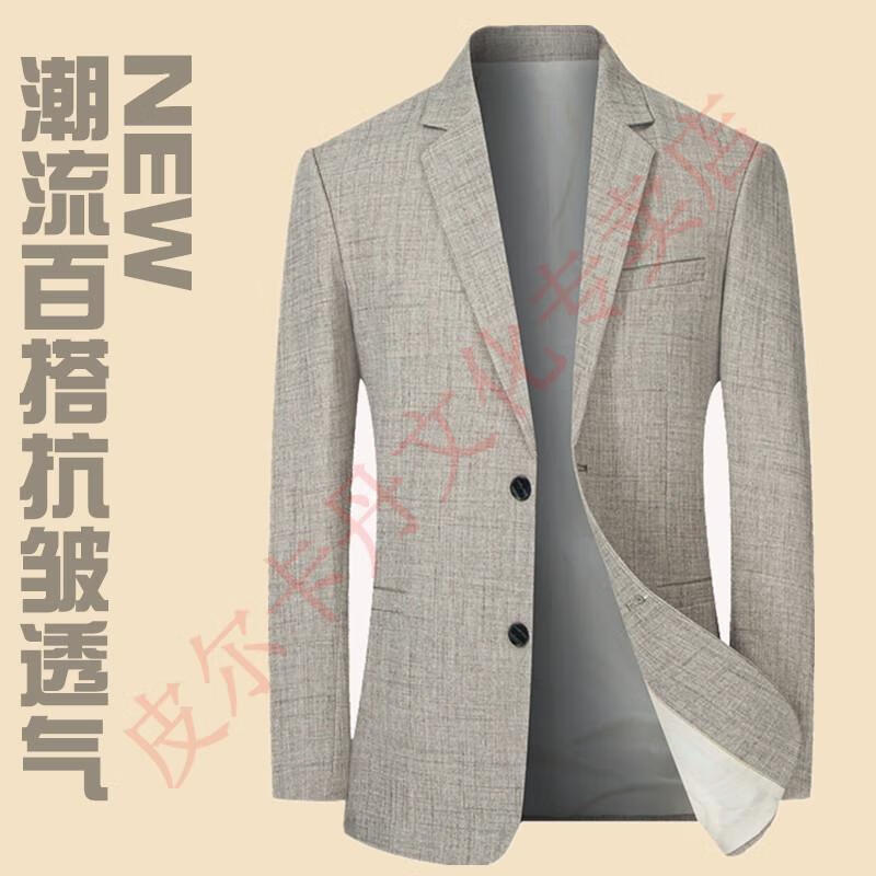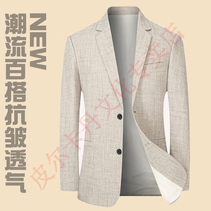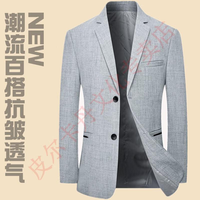 皮尔卡丹(pierre cardin)西服男士外套春夏清爽商务休闲中青年亚麻薄款色西装 灰色  DL18302  XL 180 143-155斤