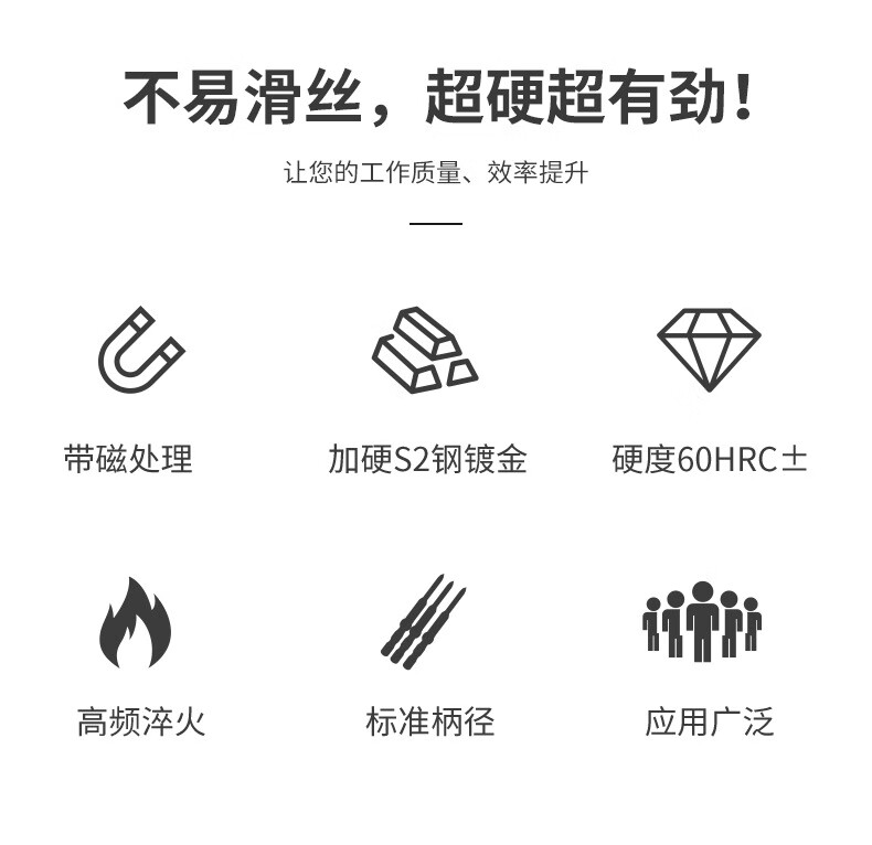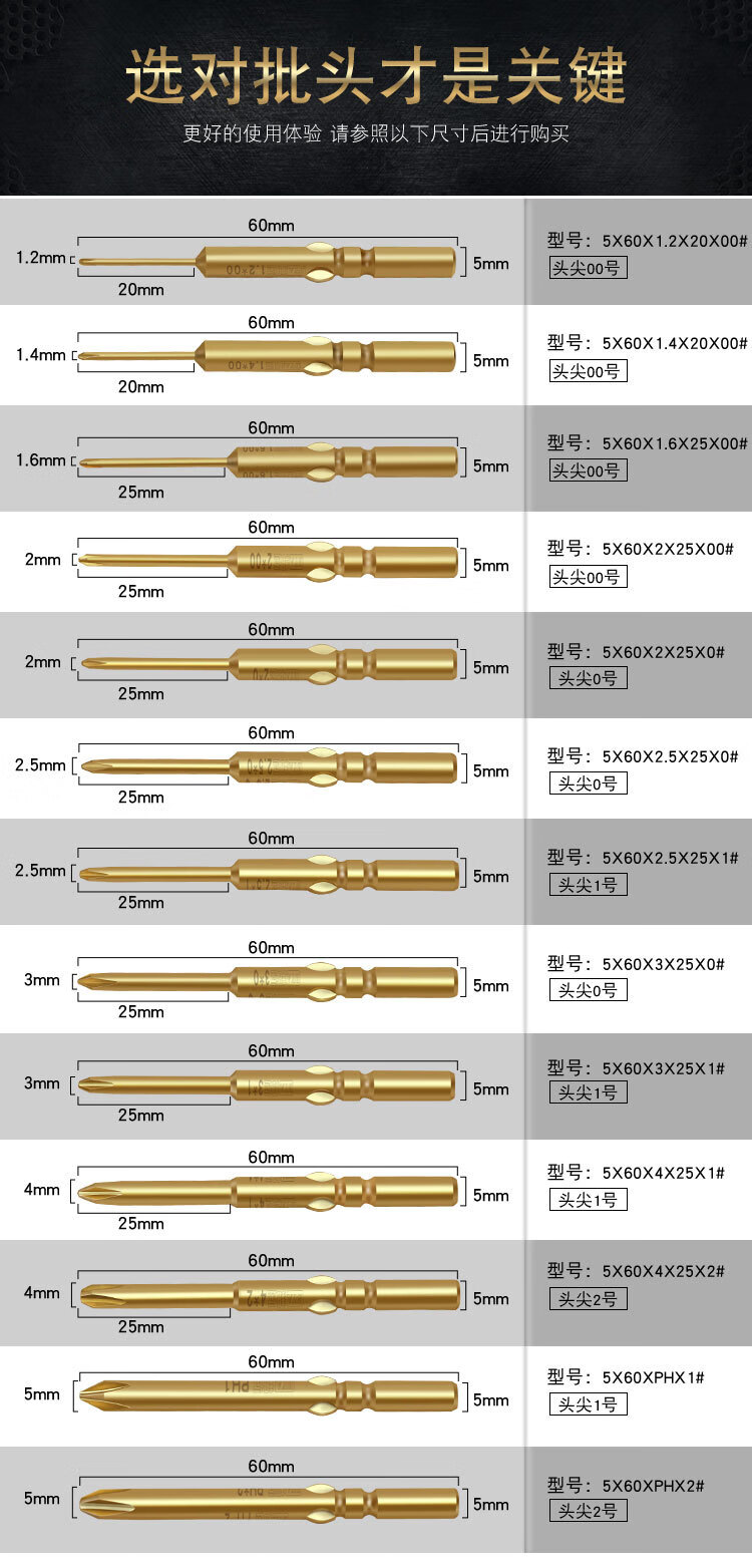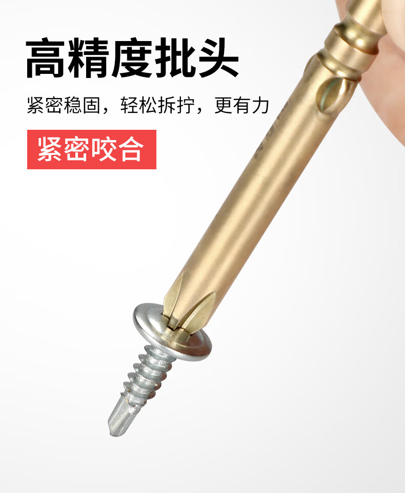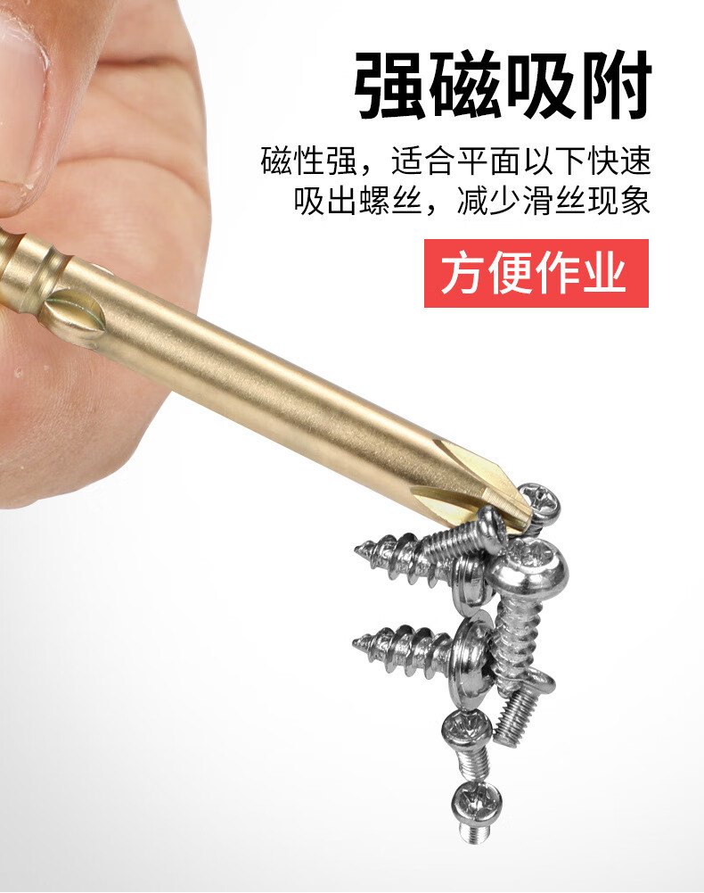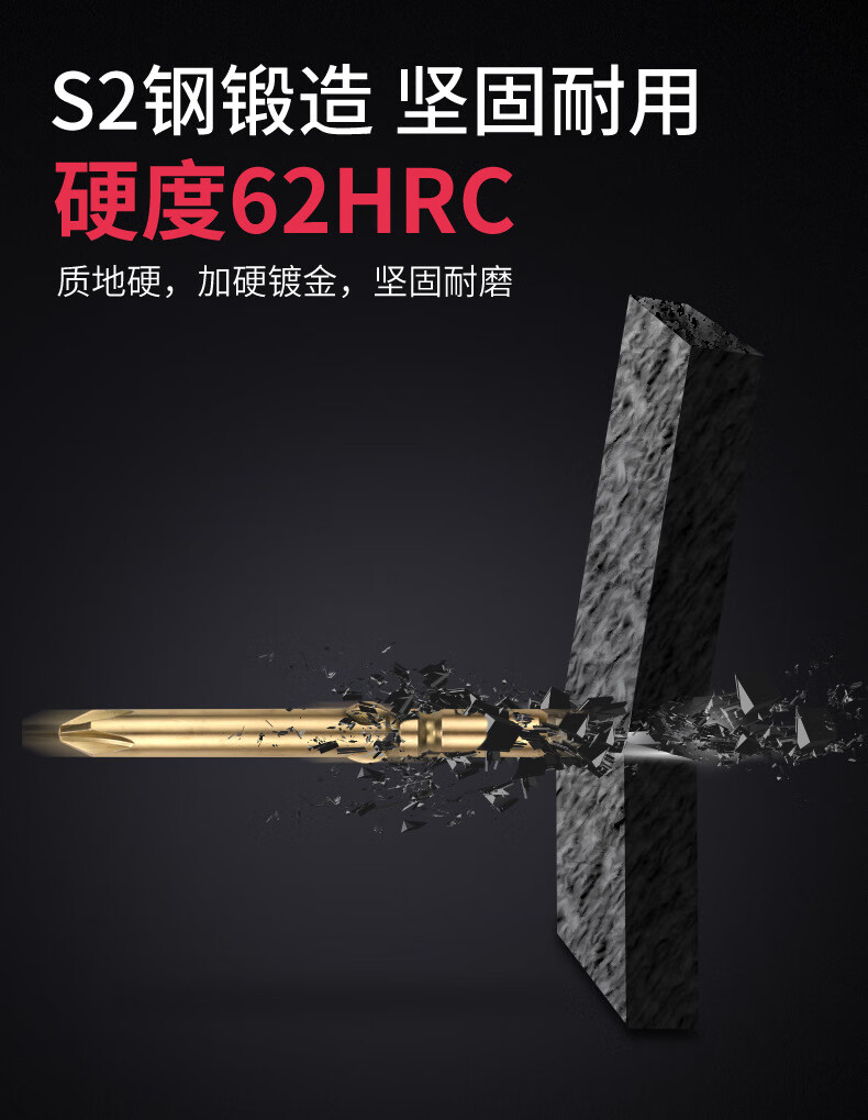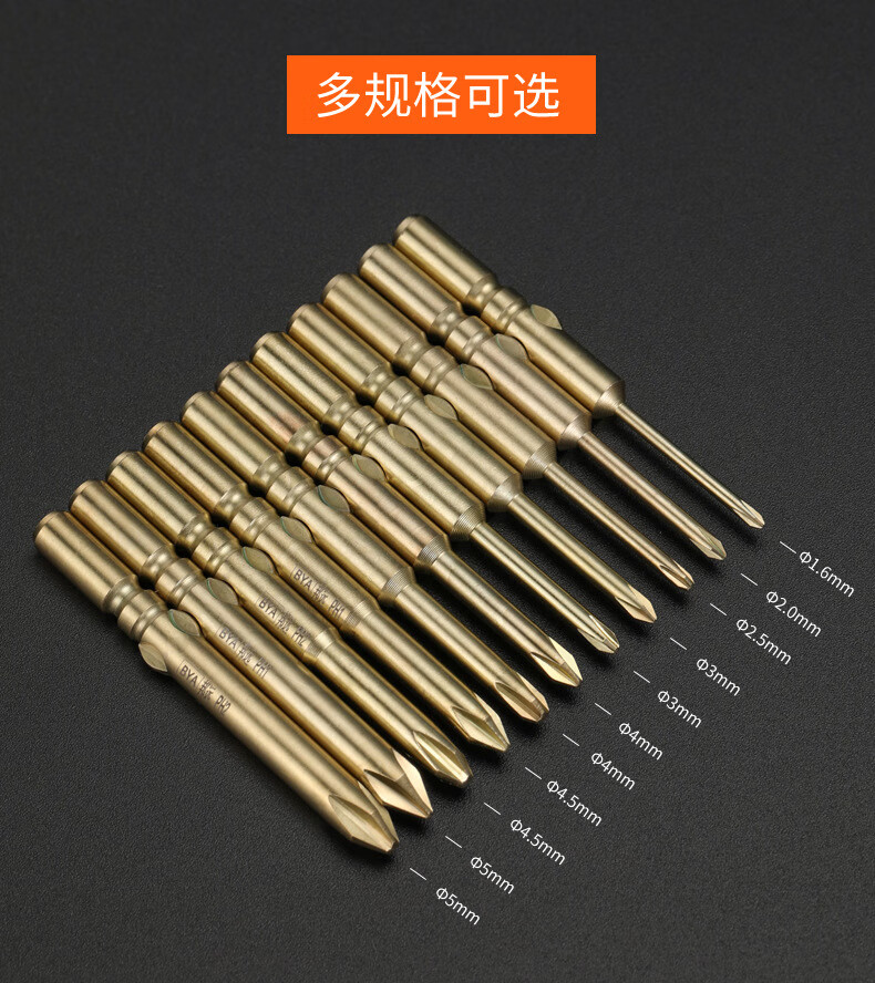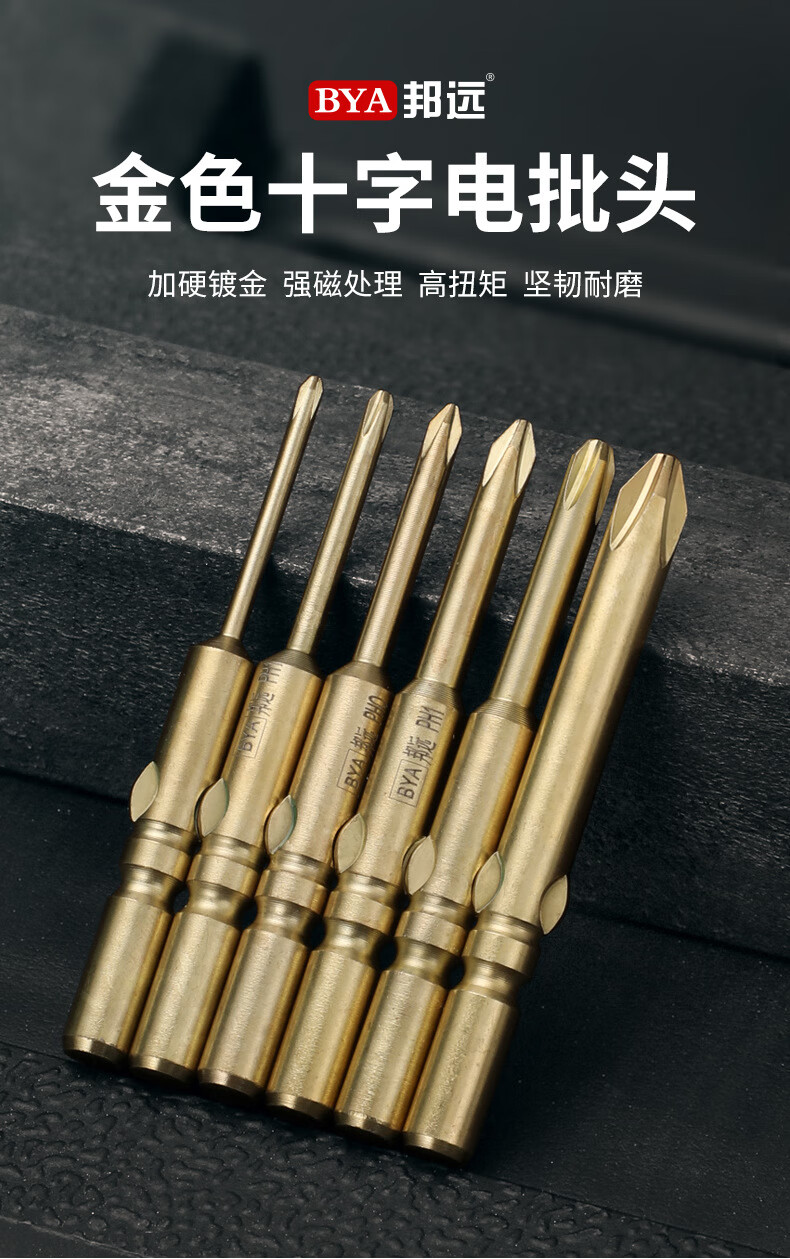 Bangyuan gold bit with hard magnetic S2 steel cross hand electric drill M5/60 electric screwdriver head 801 batch tip gold 5*60mm cross 13 pieces set