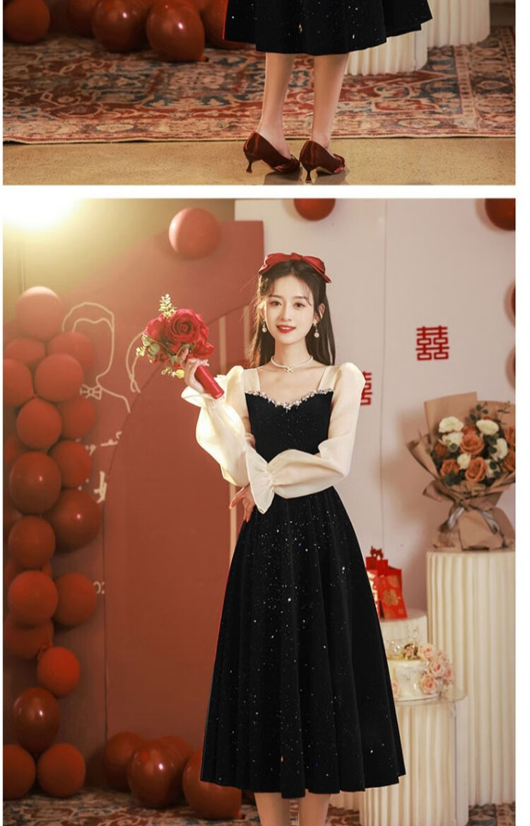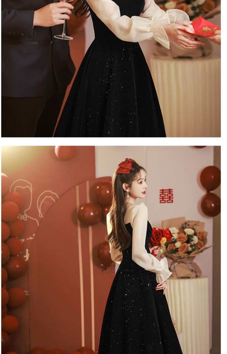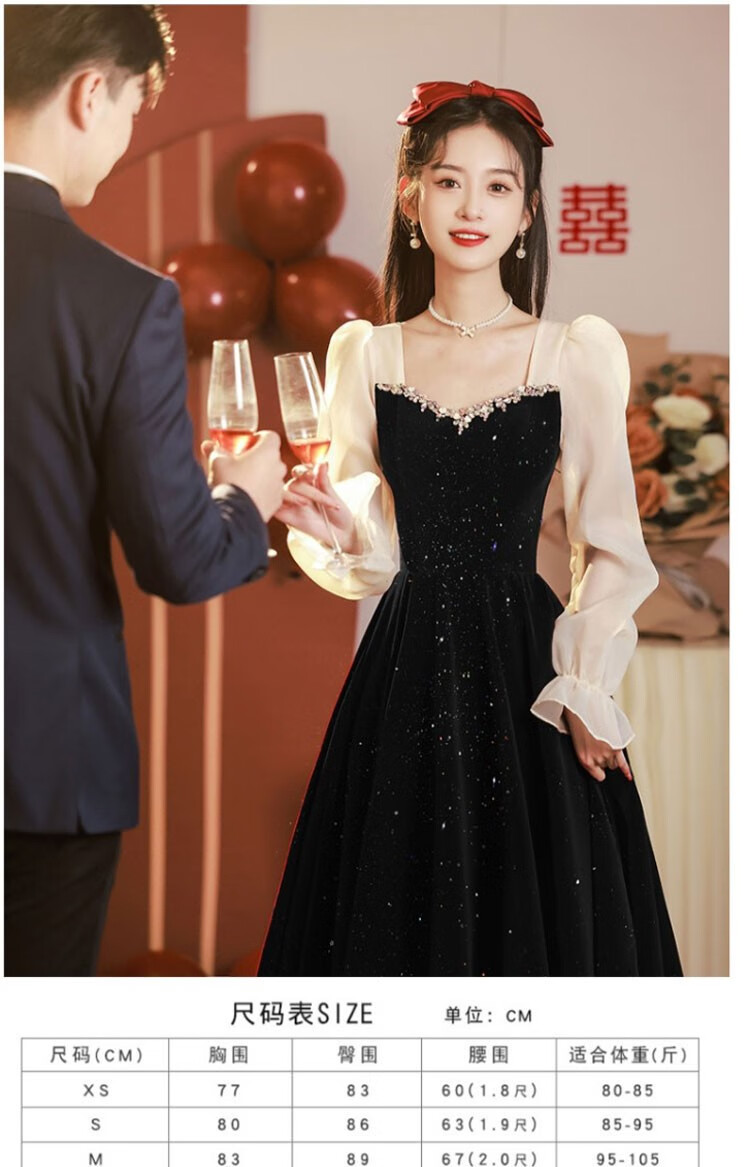 SAIDELE black evening dress for women, can wear French dress for banquet, light luxury, high-end Hepburn style adult dress, black XL (recommended 116-125 Jin Jin equals 0.5 kg)