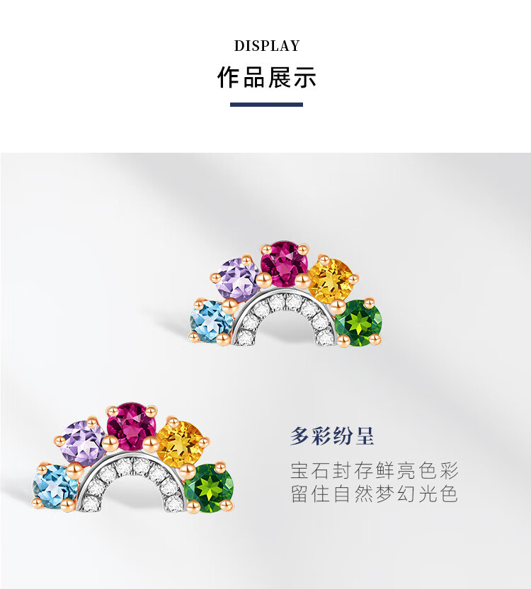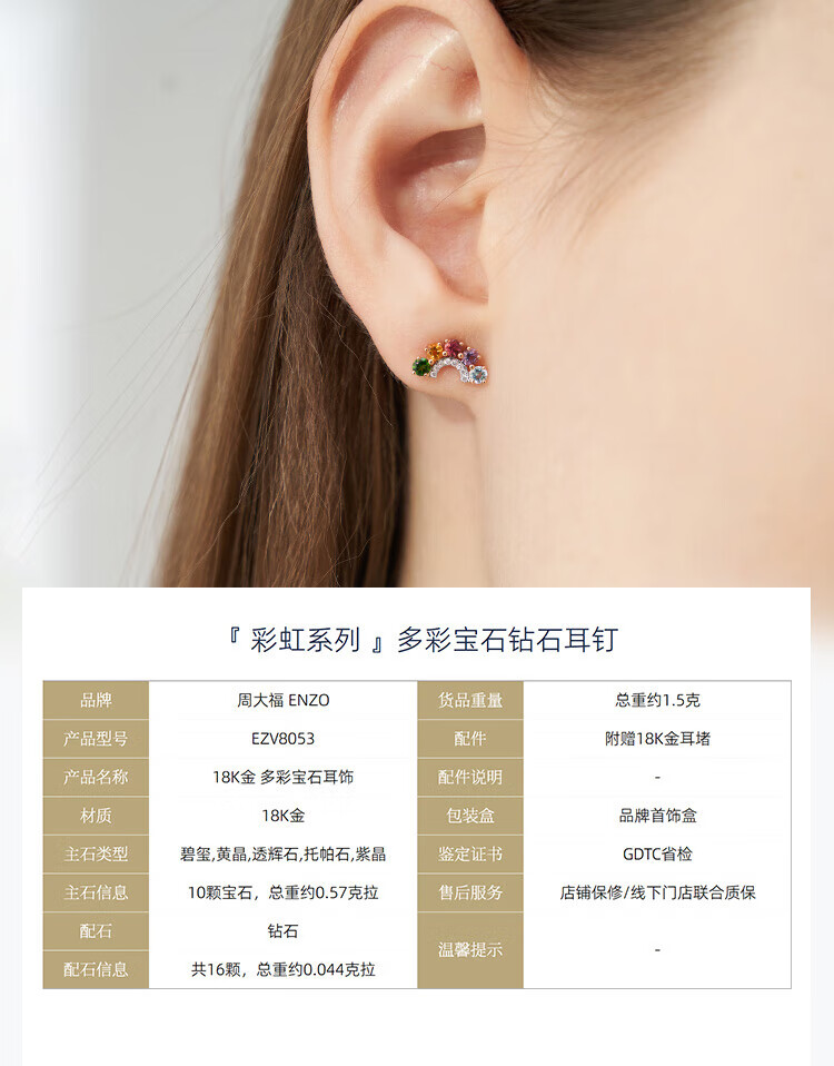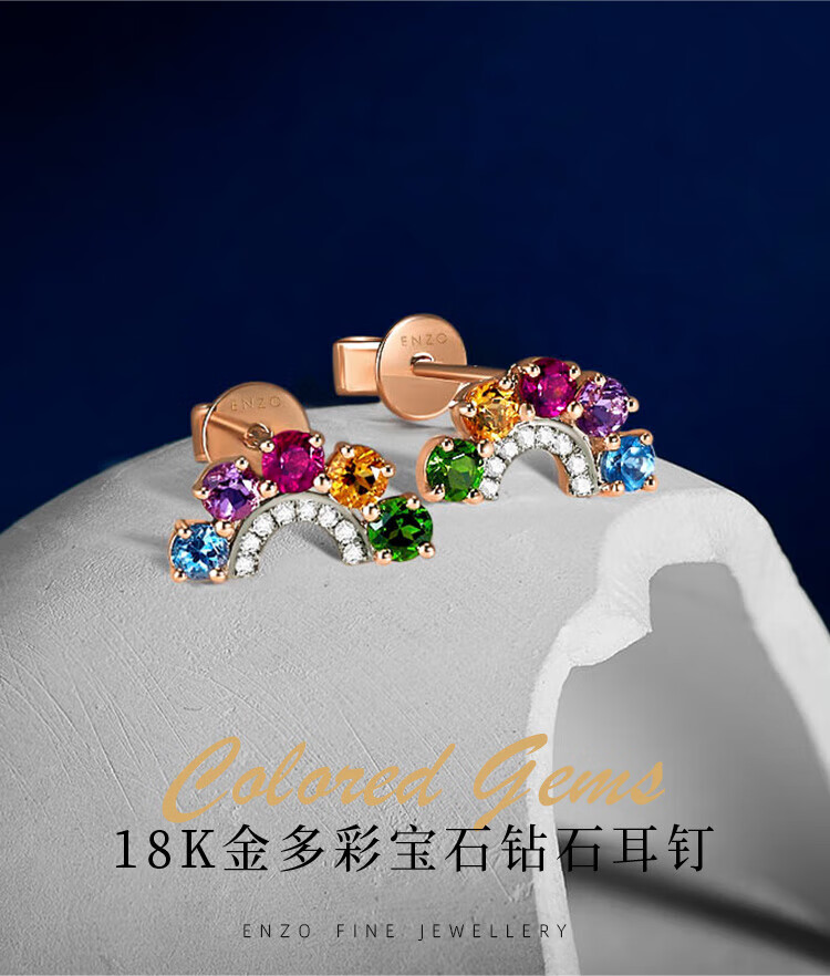 Chow Tai Fook ENZO Rainbow Series 18K Gold Colorful Gemstone Diamond Earrings for Women EZV8053 Birthday Gift EZV8053