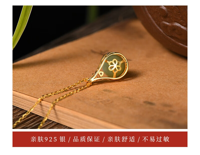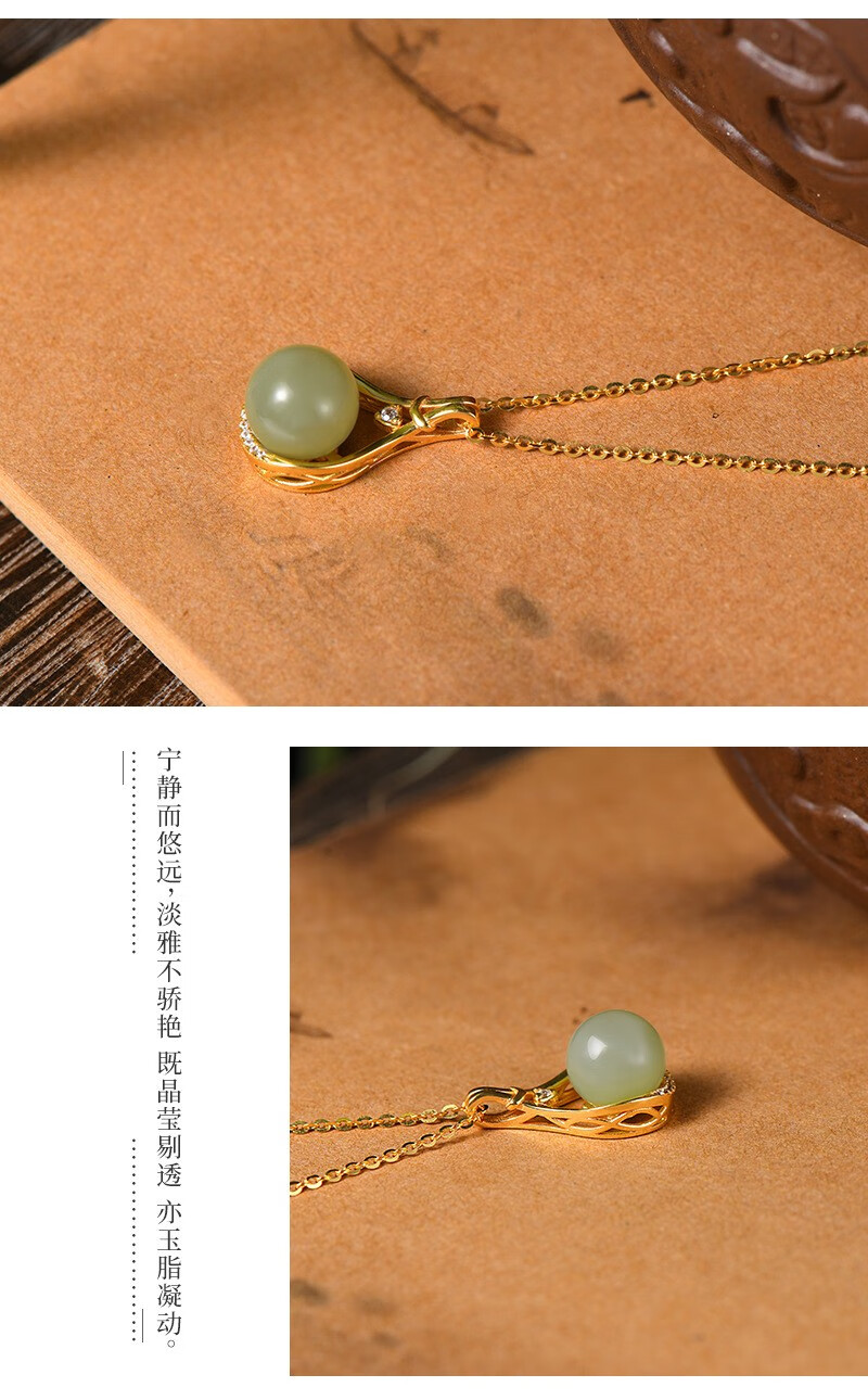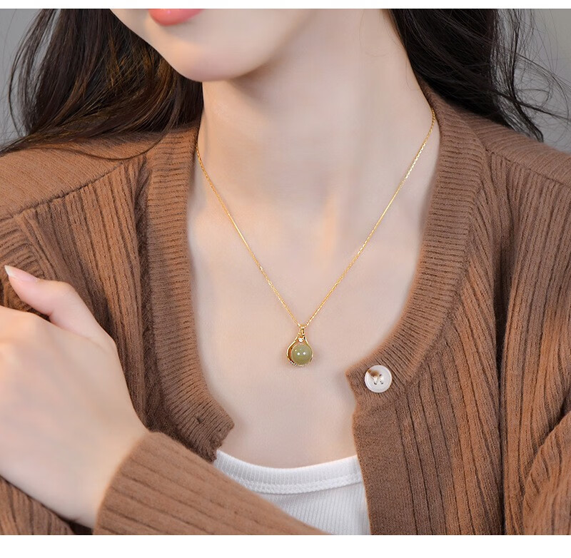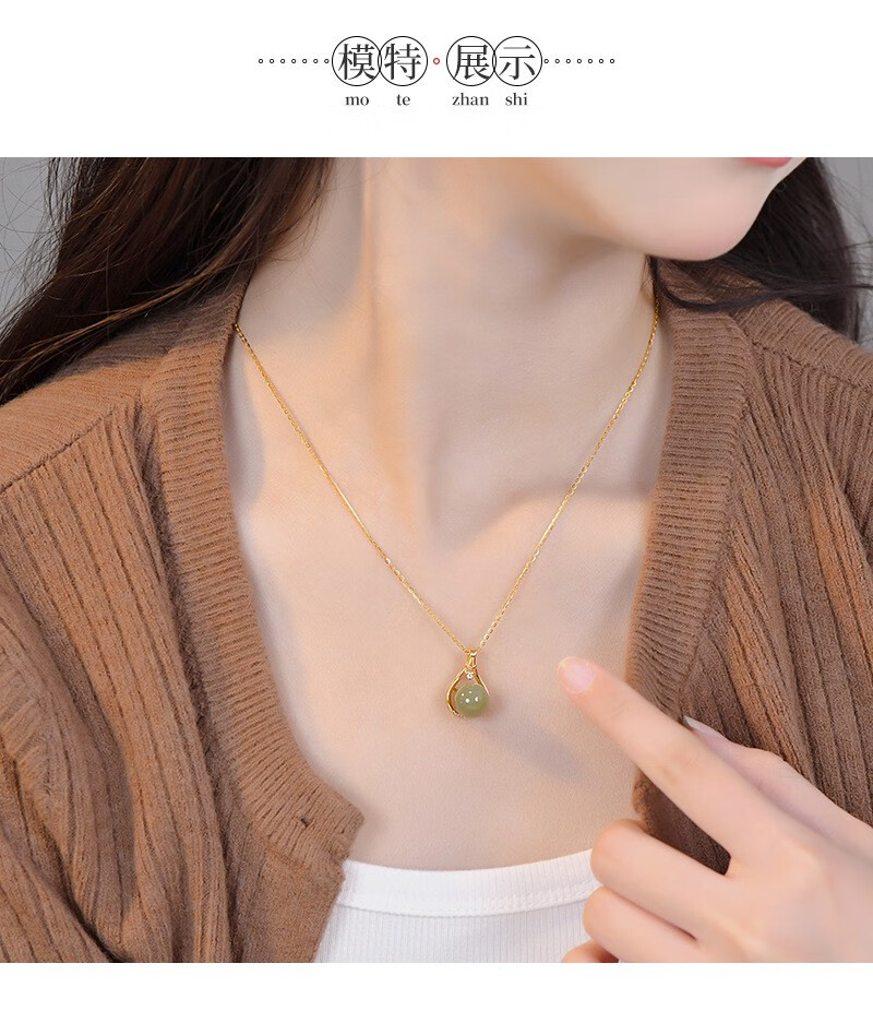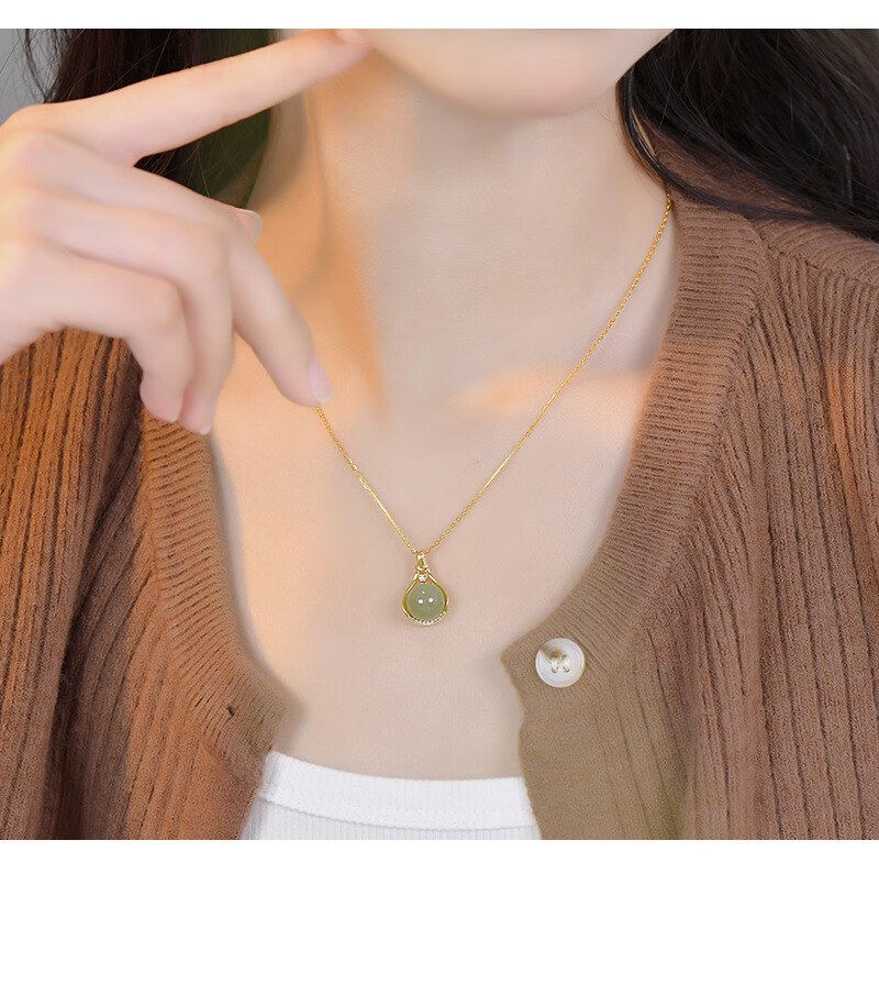Yijin S925 sterling silver necklace women's niche design high-end lucky bag Hetian jade necklace round bead clavicle Valentine's Day gift exquisite gift box lucky bag Hetian jade necklace