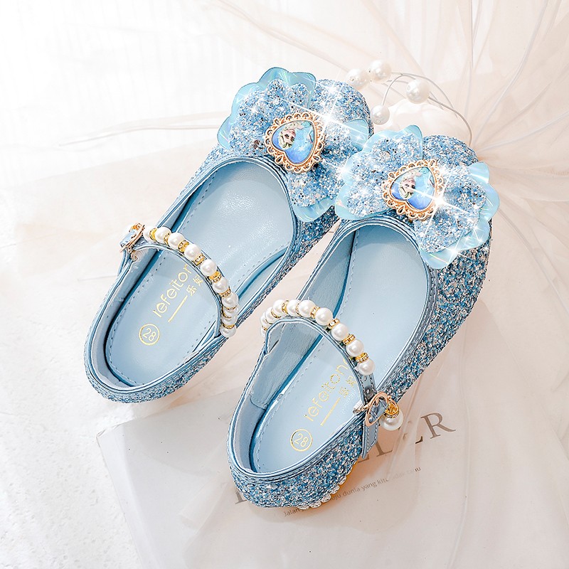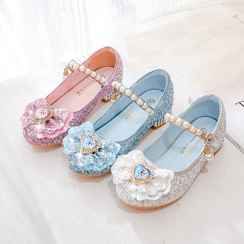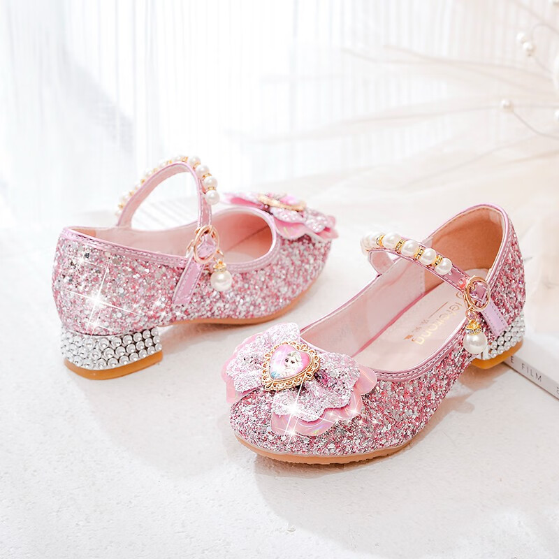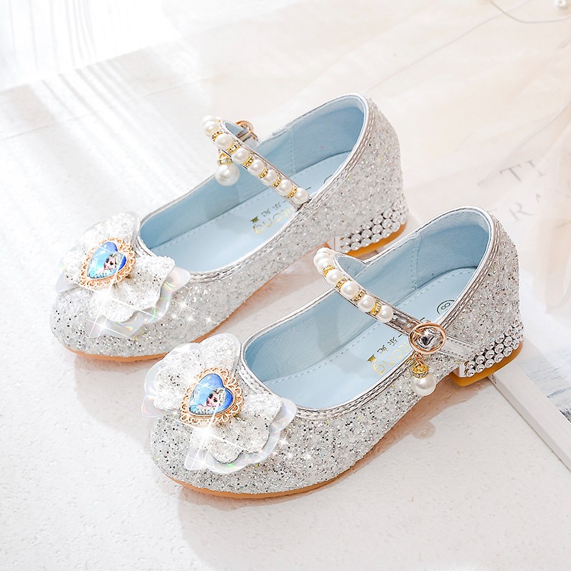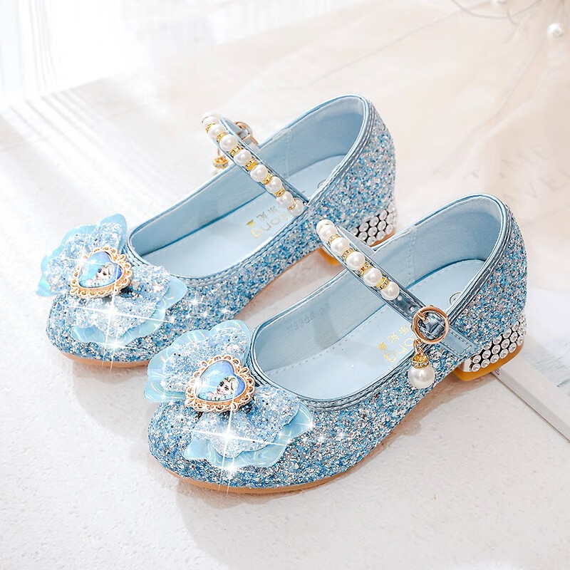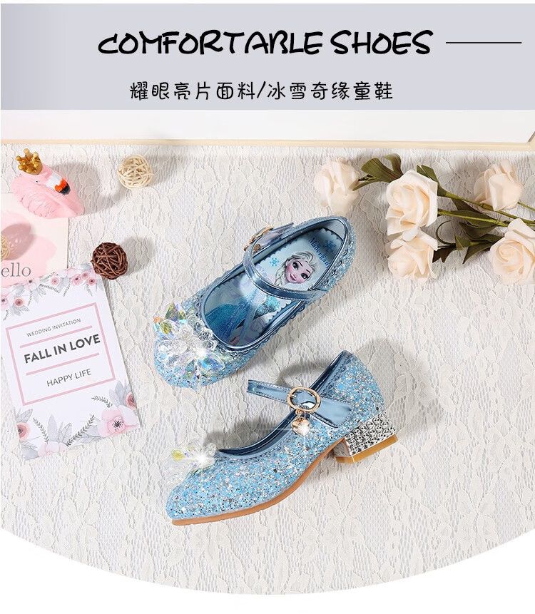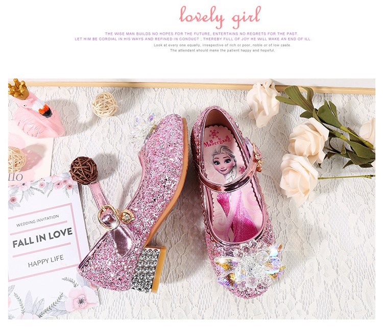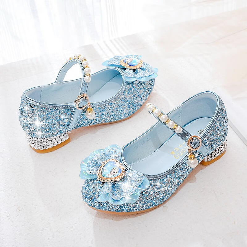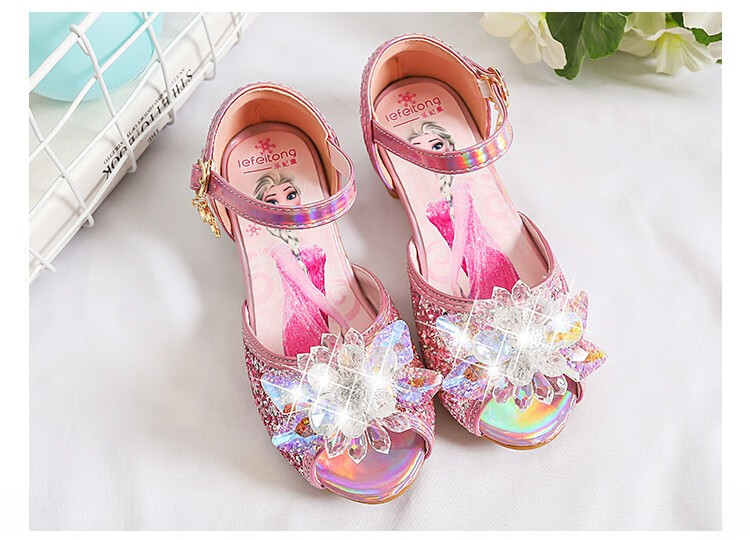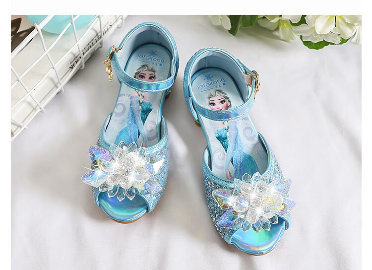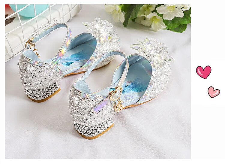 BeiRanMay Princess Elsa Shoes Summer Girls 2025 Children's Crystal Shoes Princess Elsa Shoes Little Girls Birthday High Heels Purple Rhinestone Velvet 28/Shoe Inner Length 18cm