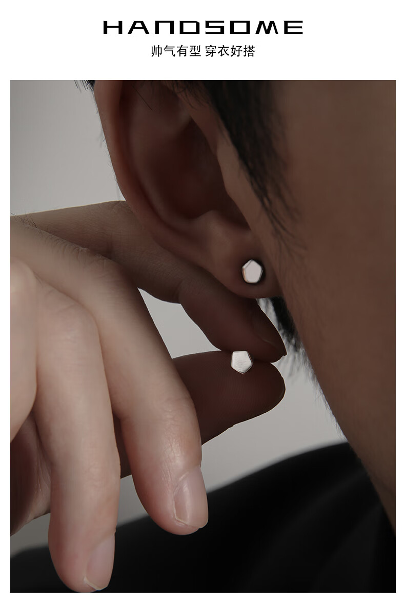 Xili Tongbody S925 Silver Stud Men's Trendy Single Pair Men's Fashion Korean Style Student Brother Birthday Gift for Boys Black Model Single Earring
