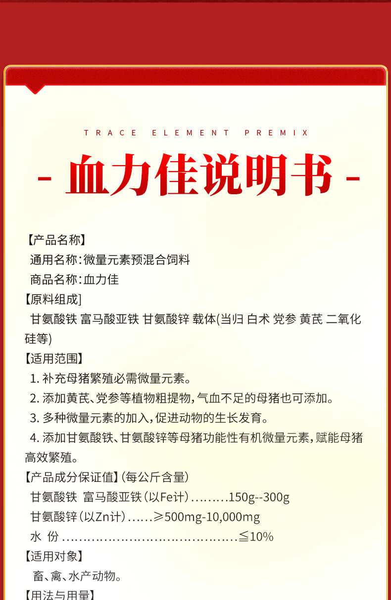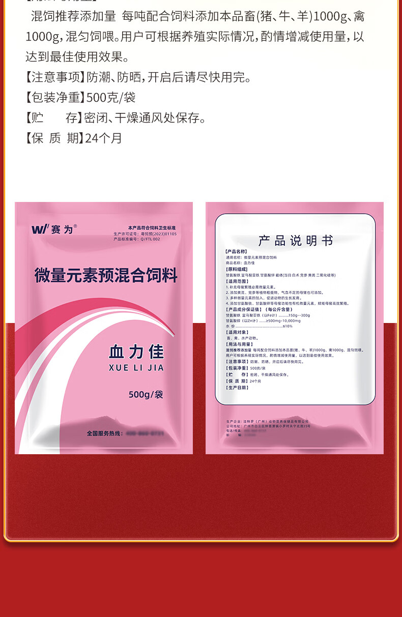 Saiwei sow health care products, good blood, iron supplement, veterinary organic iron, Codonopsis pilosula and astragalus to improve sow fertility, feed addition, 1 bag 500g/bag
