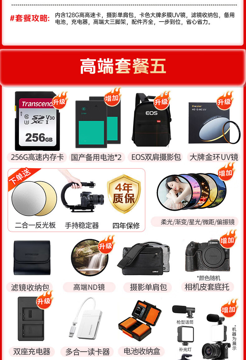 Canon r50 mirrorless camera 4K digital high-definition travel vlog video student beauty R50 entry-level live broadcast camera R50 white body + RF50/1.8 small spittoon portrait fixed focus Package 1 including 128G card camera bag battery vlog set