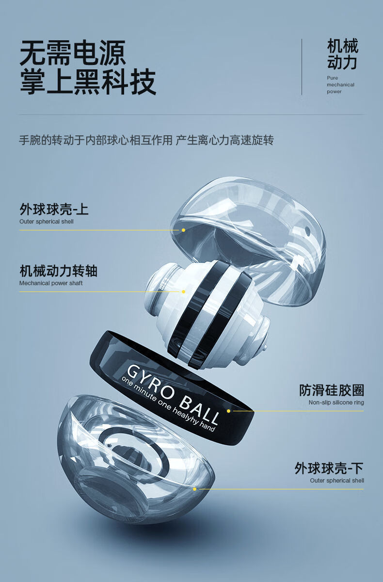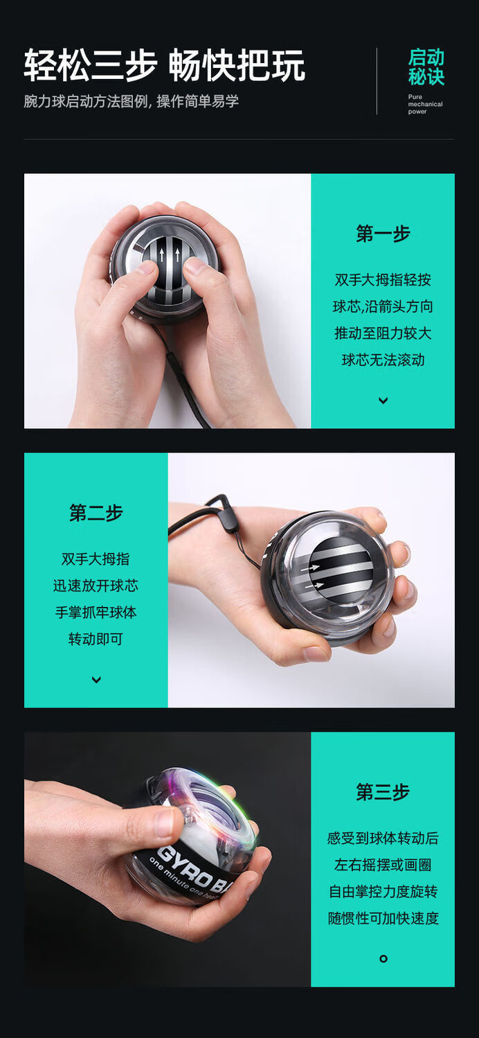 Chaoke (CAOOELCOL) wrist strength ball, grip strength ball, wrist strength device, self-starting luminous decompression training arm strength ball, finger gyro, wrist centrifugal ball, all metal - colored lights + ball bag + wrist rope