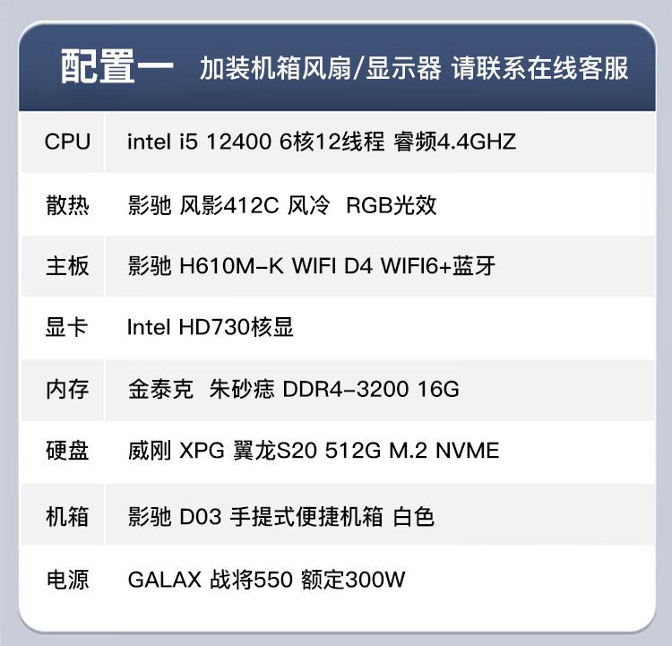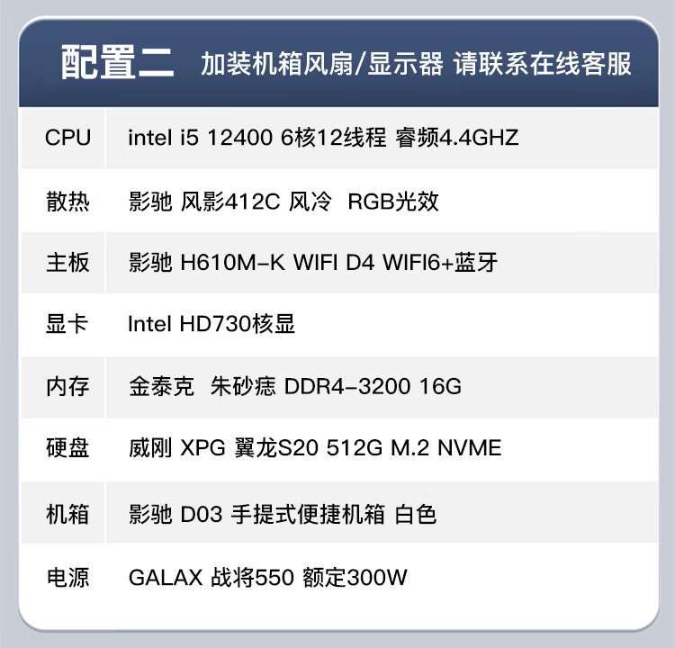 GALAX Intel Core I5 12400 Barebone Financial Accounting Enterprise Procurement Design Home Business Office Desktop Assembly Computer Configuration Two 12400+16G+512G