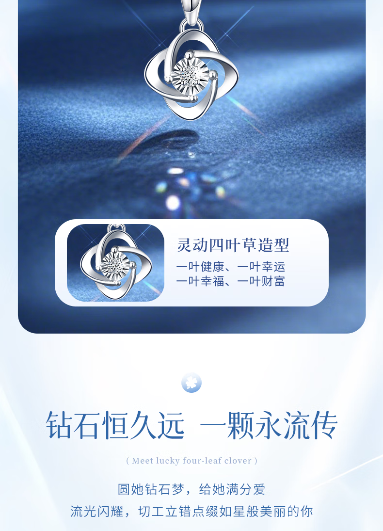 China Gold (CHINA GOLD) platinum necklace women's four-leaf clover diamond pendant platinum set chain birthday gift for girlfriend, wife, same city delivery platinum diamond necklace - 3 points
