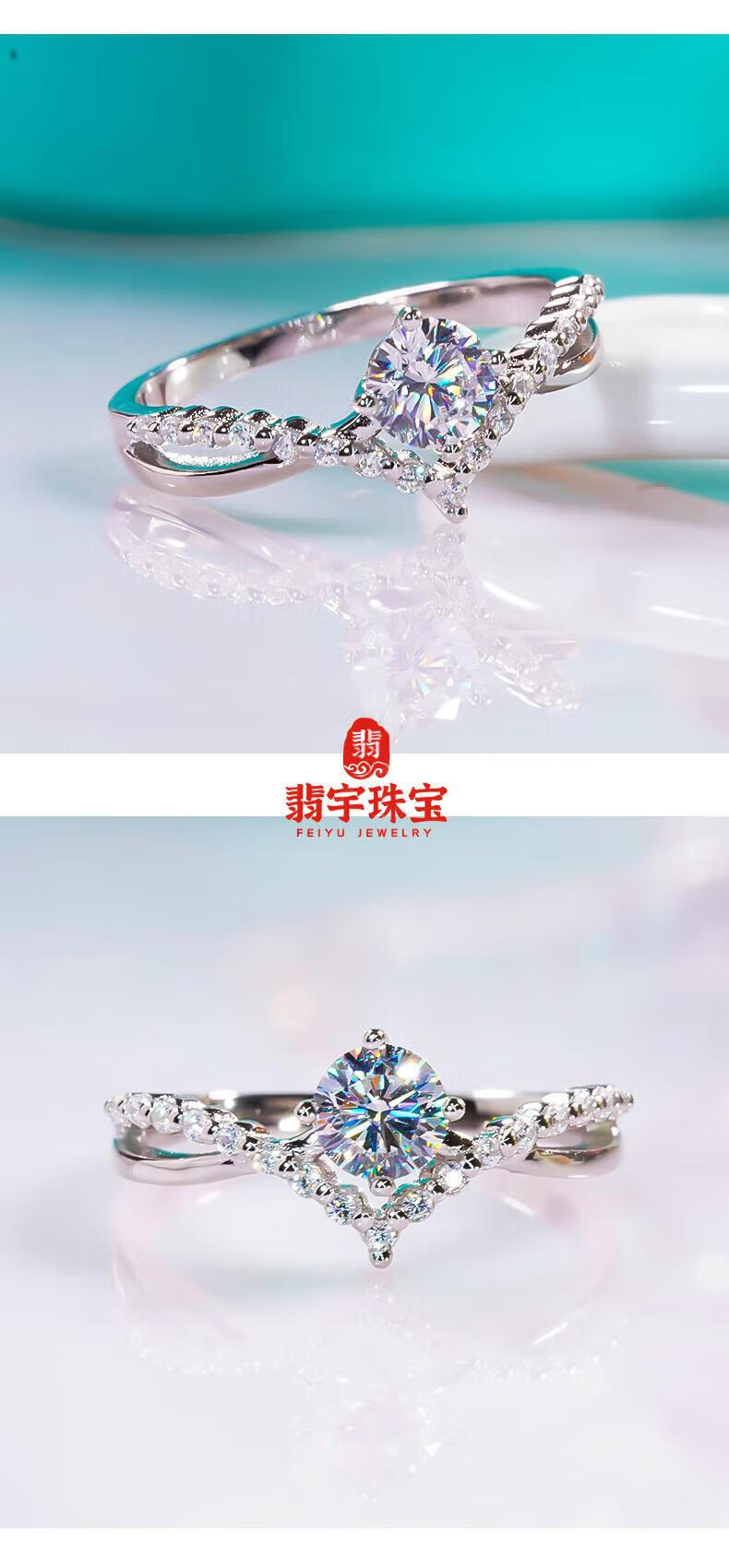 Feiyu Fat Donglai's same style, focusing on high quality, moissanite diamond platinum ring 18k rose gold double T opening female shell crown female ring 1 carat women's size 17