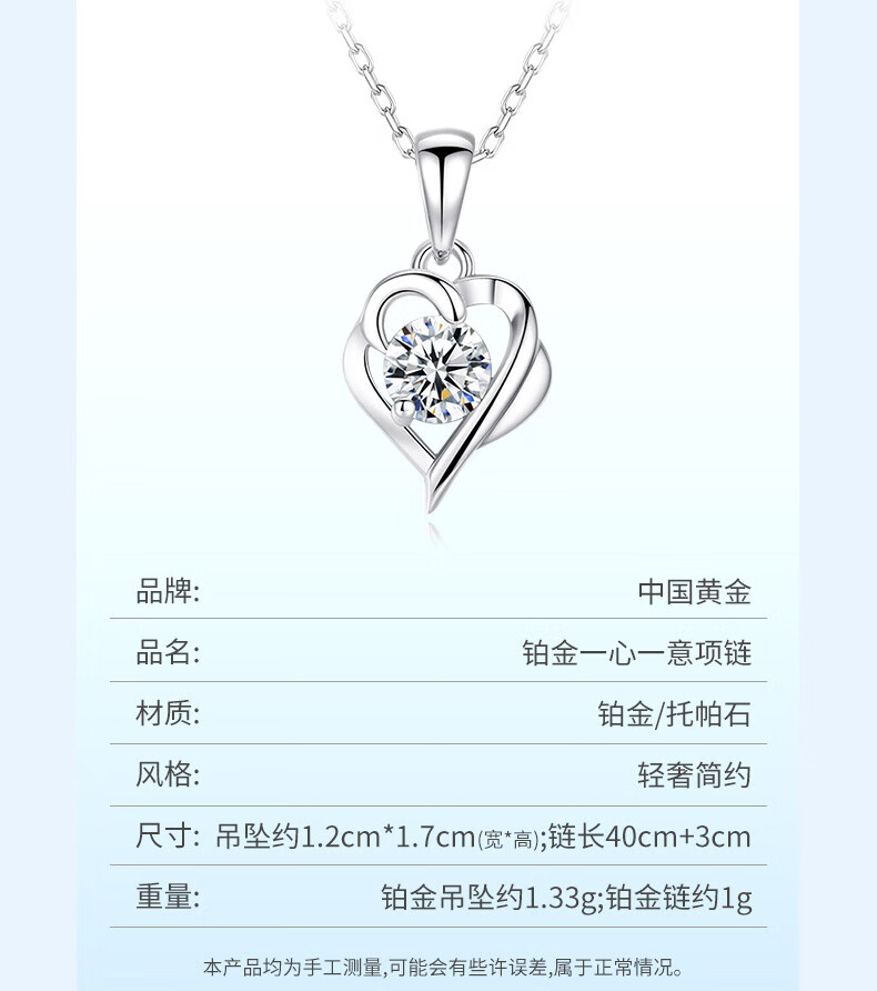 China Gold (CHINA GOLD) pt950 platinum necklace women's platinum pendant fashion chain set birthday gift for girlfriend and wife wedding anniversary customized platinum single-minded chain set
