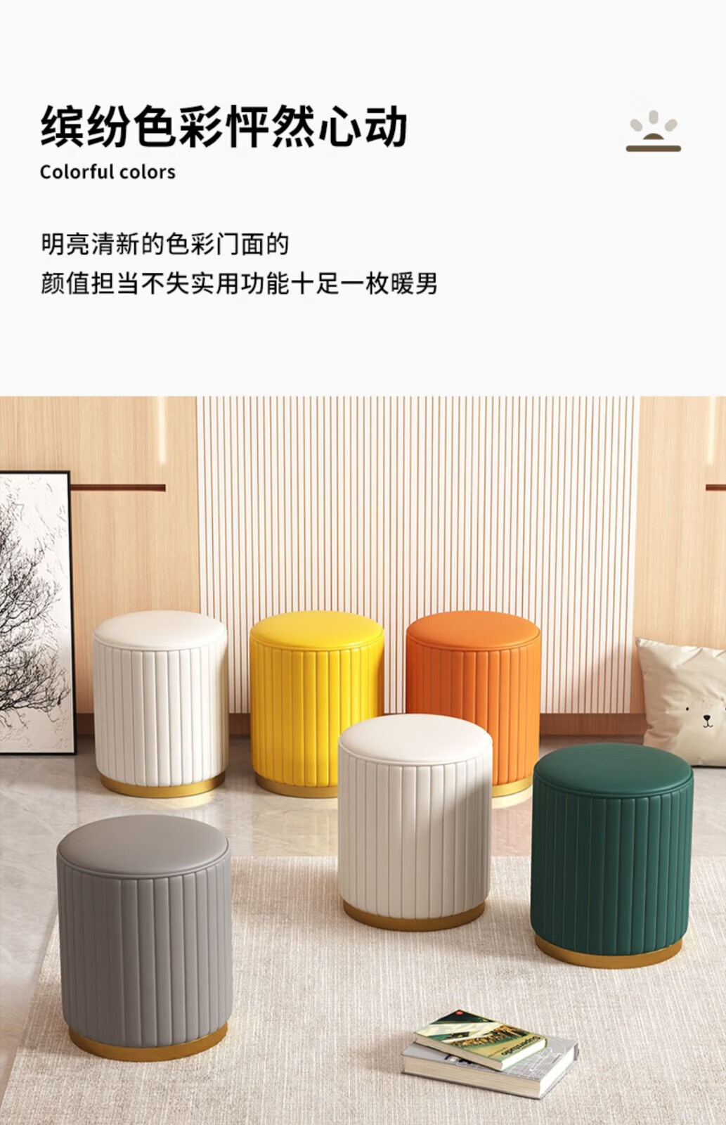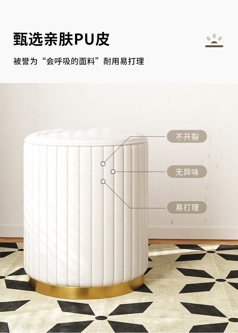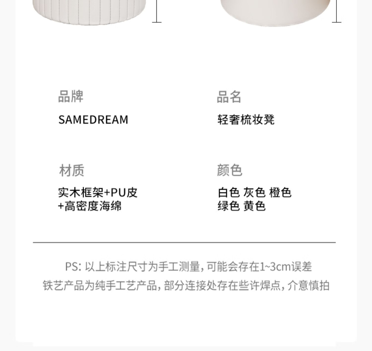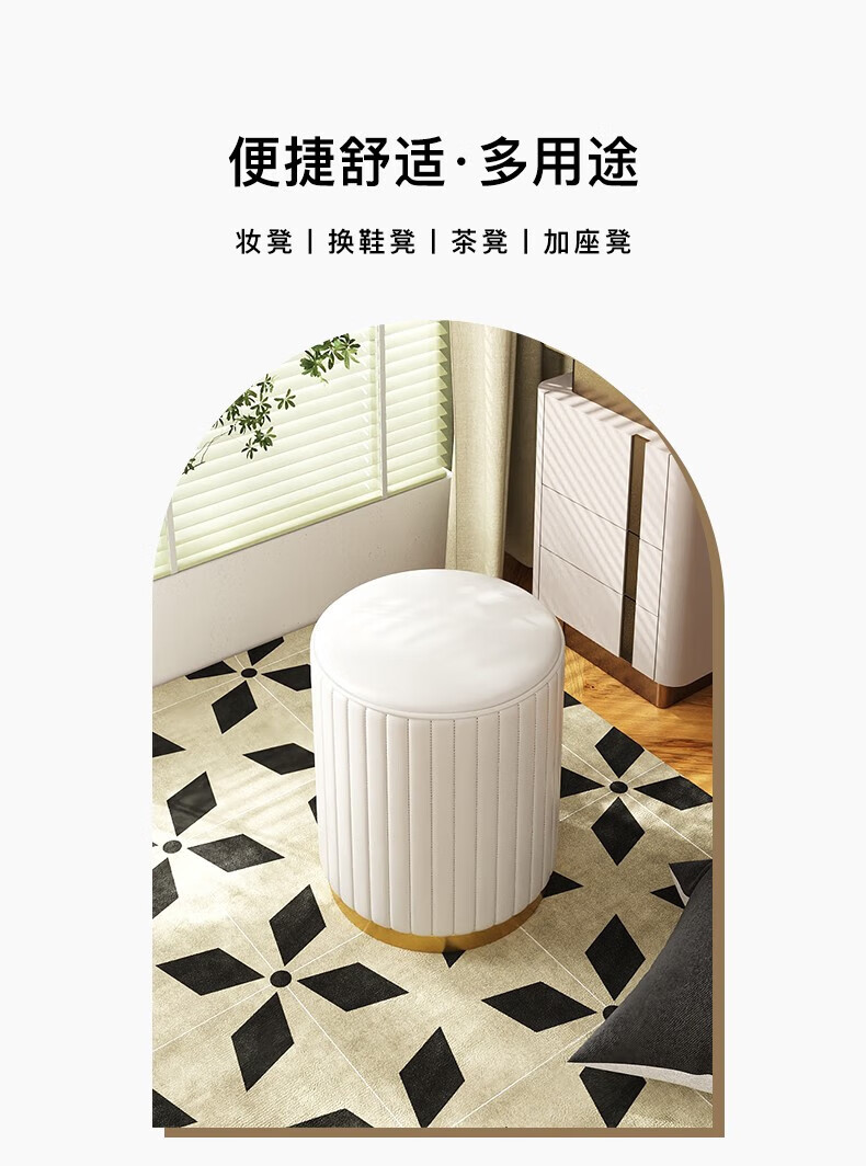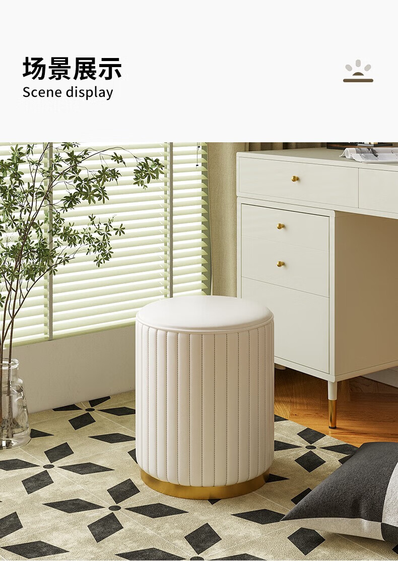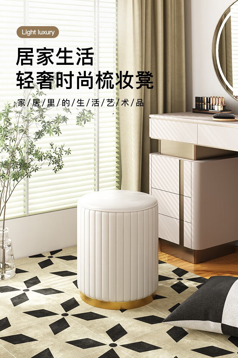 Moshidun Light Luxury Makeup Stool Girls' Bedroom Storage Ins Internet Celebrity Makeup Chair Simple Manicure Chair Dressing Table Stool Regular Style Off-White PU Leather + Metal Feet