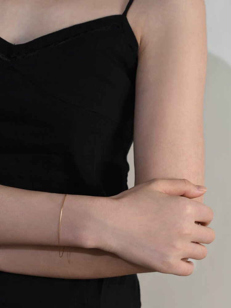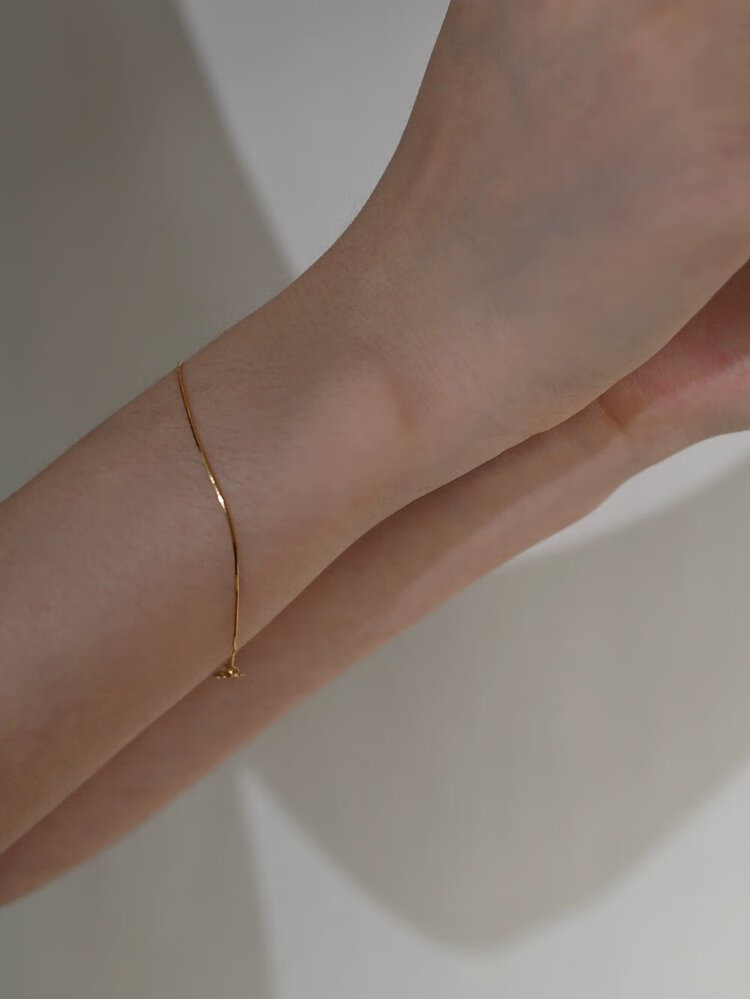 L.Bardeen 18K gold gold snake bone bracelet for women, French style, high-end, light luxury, simple basic style, very fine stacking, free 520 gift, 18k 16.5cm, ready stock