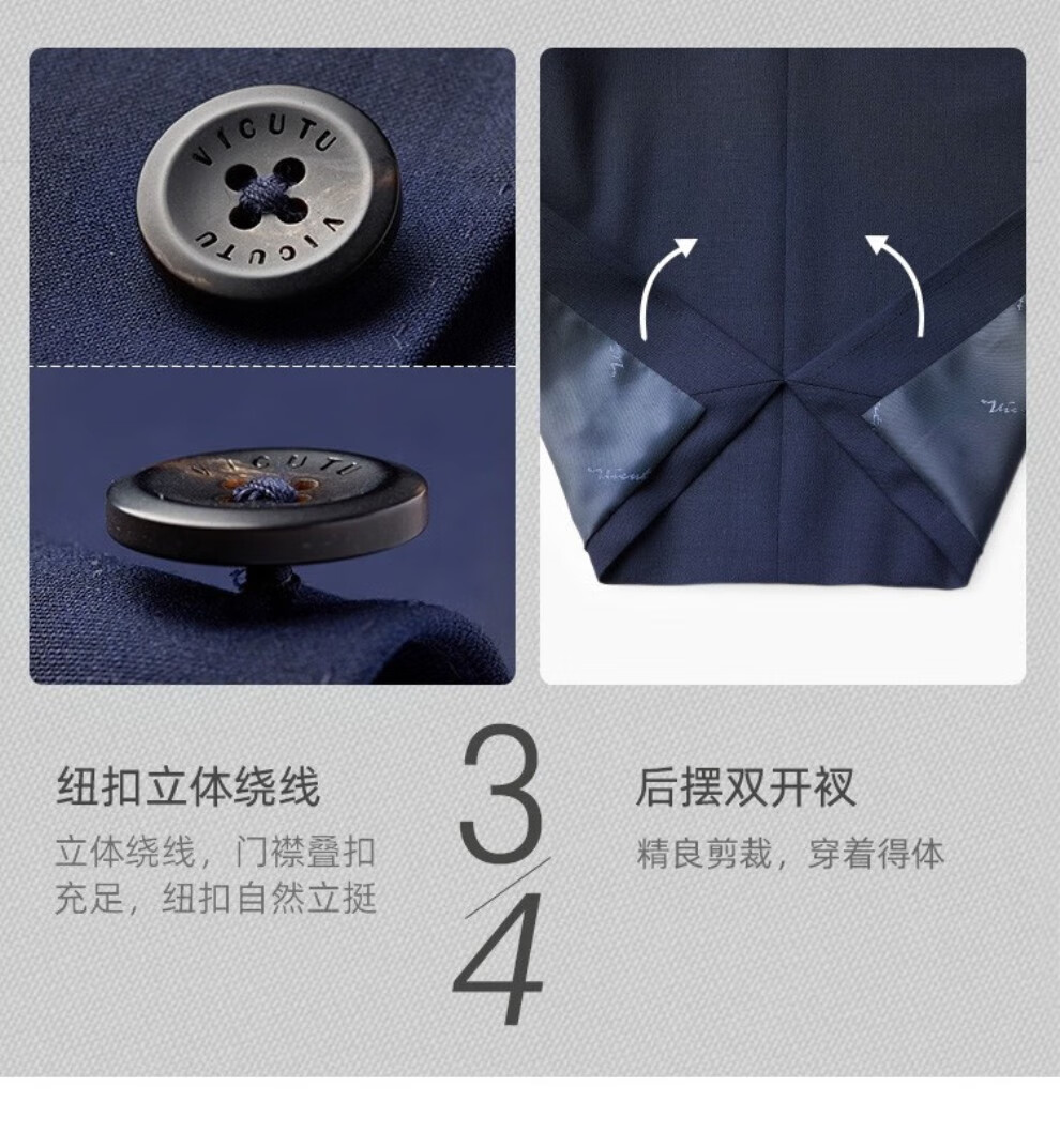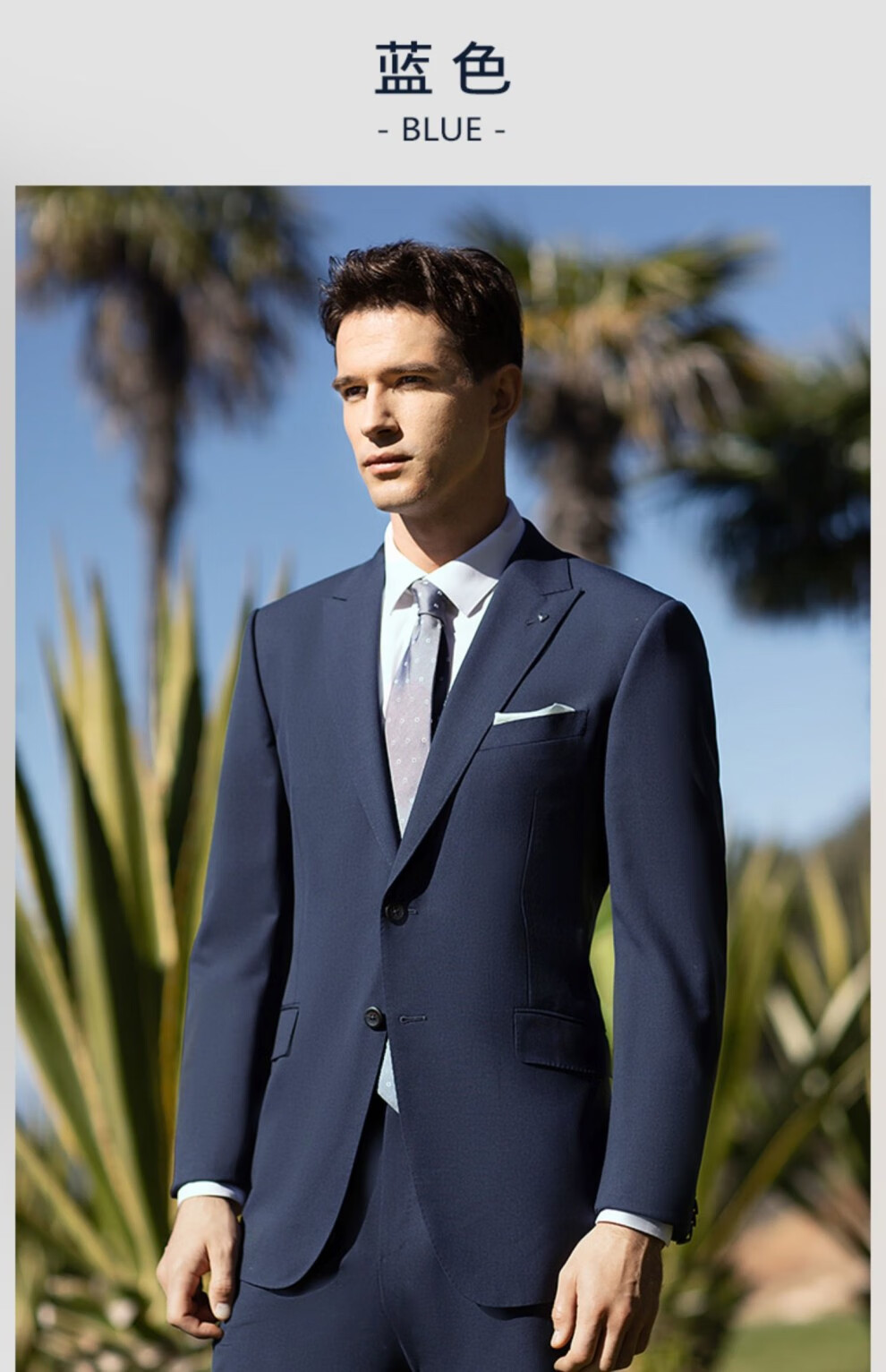 VICUTU men's trend small blue suit wool spring and summer easy care formal wedding dress jacket suit 170B or trousers 78 blue suit