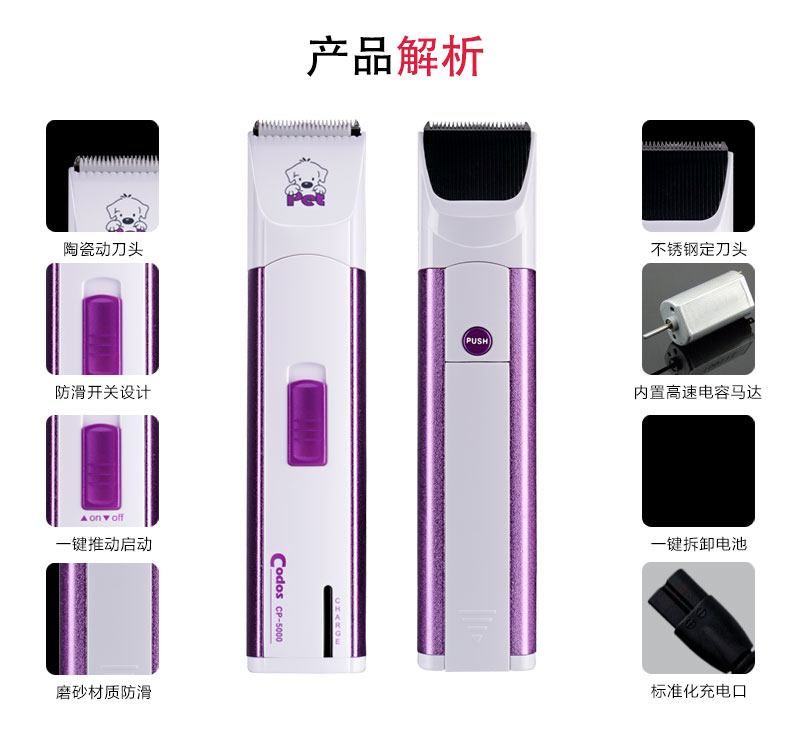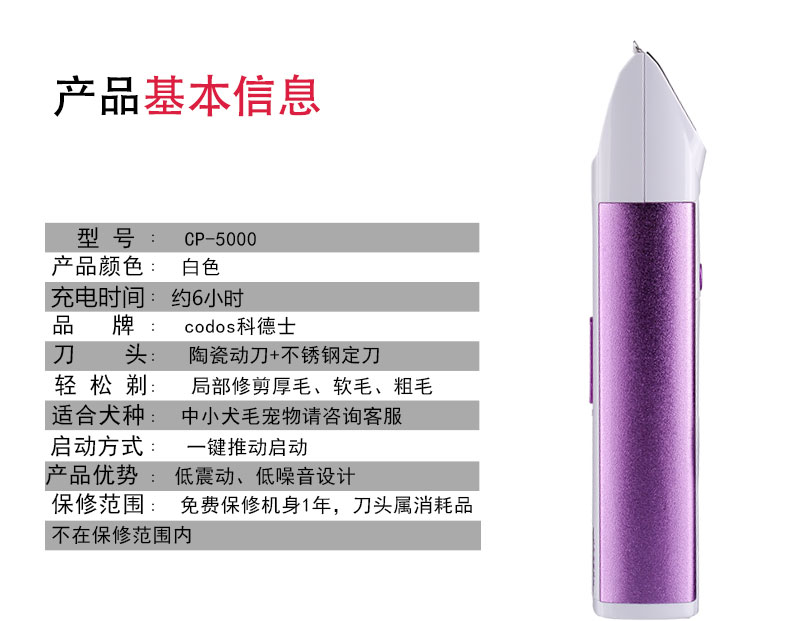 Codos Pet Partial Electric Clipper for Face, Ears and Feet Hair Trimmer Mini Puppy Electric Clipper Rechargeable CP-5000 Package 1 Standard