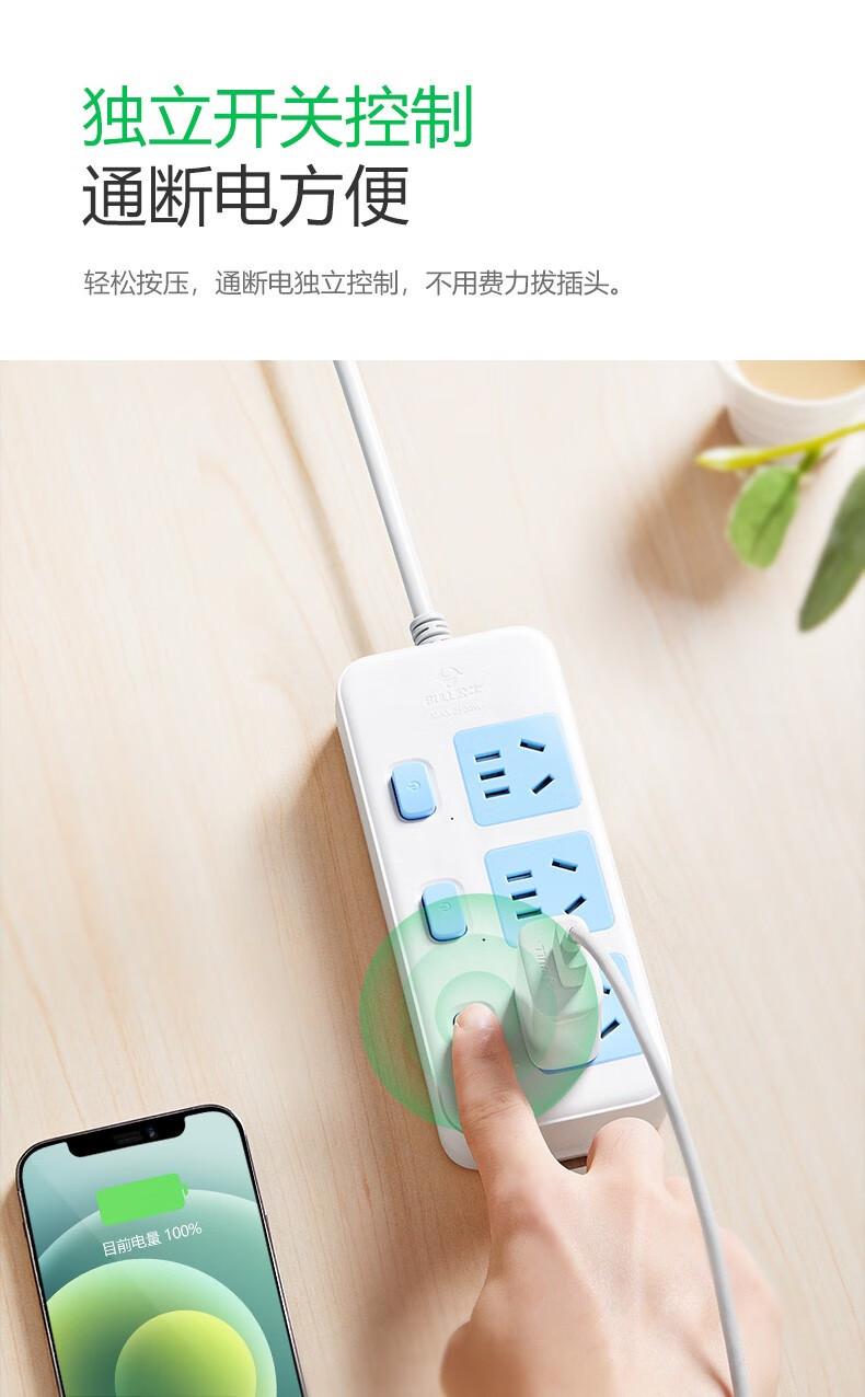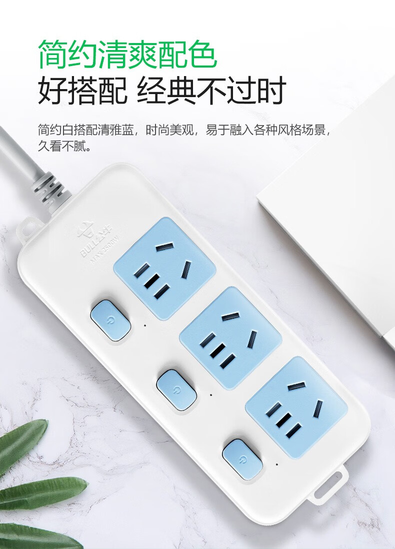 Bull (BULL) socket 3-position with protective door independent power sub-control switch new national standard plug-in strip plug-in strip plug-in strip strip 314-1.8/3 meters GN314-3 meters