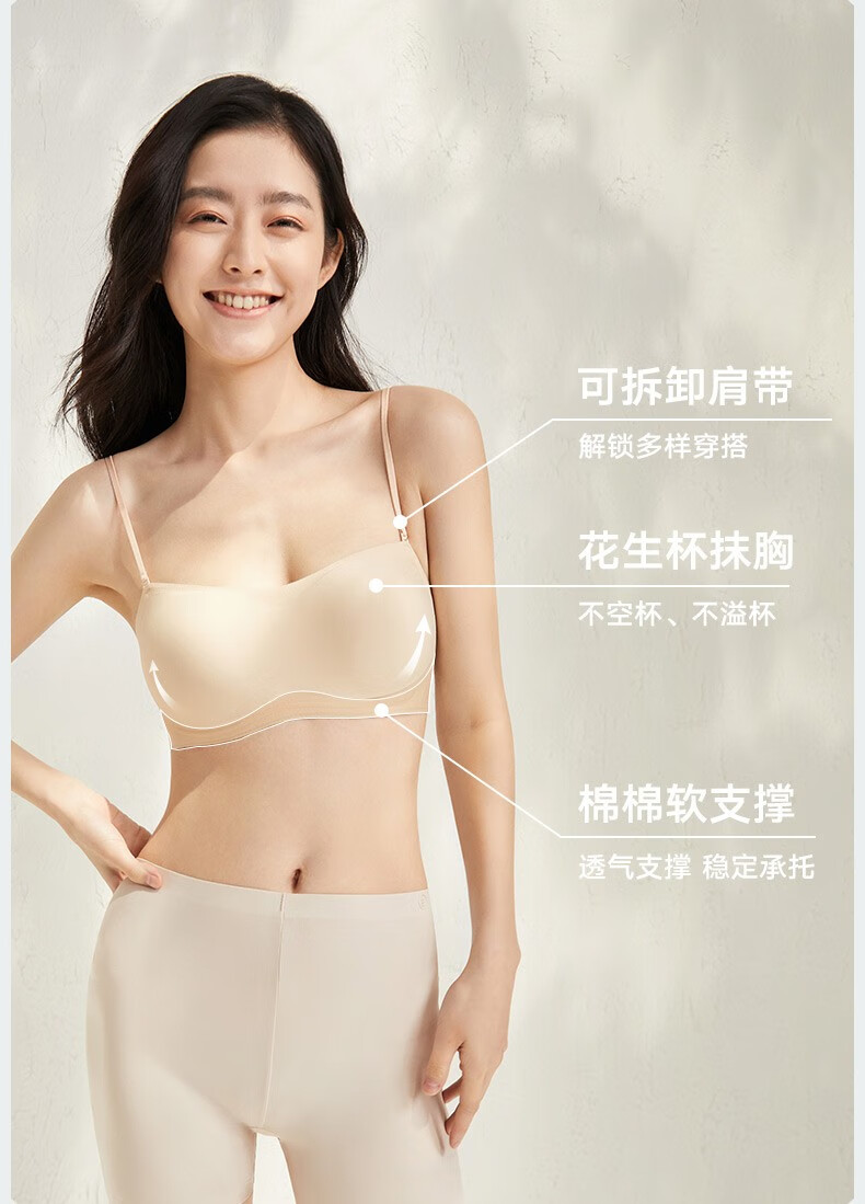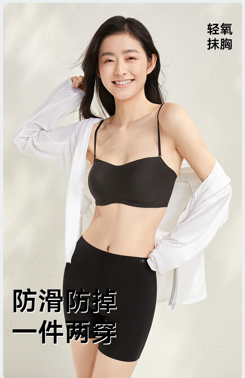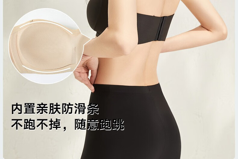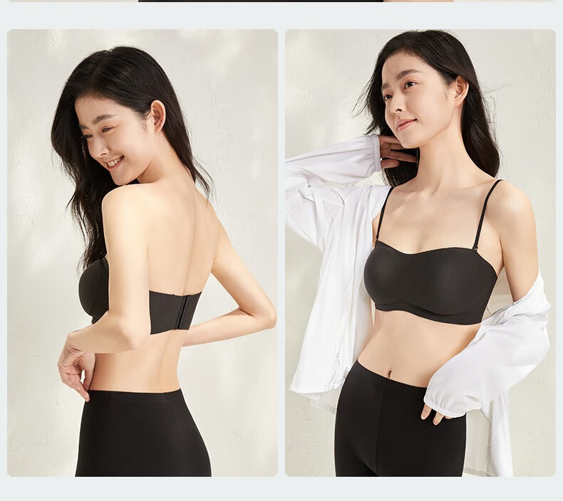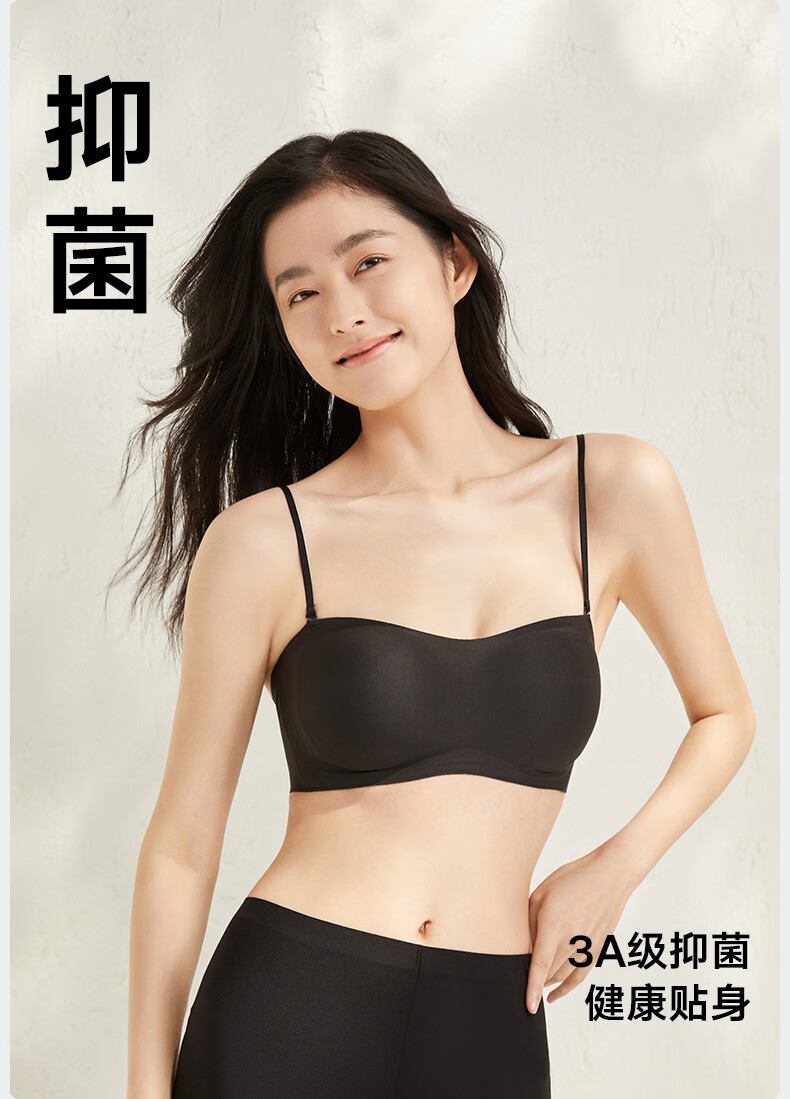 Songshan Cotton Store Removable Shoulder Strap Underwear Women's Bra 3A Antibacterial Anti-off Anti-slip Seamless Invisible Push-Up Sexy Tube Top Black M (A75-B75)