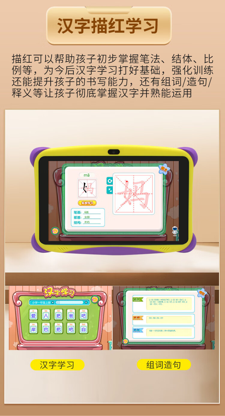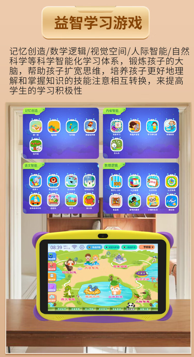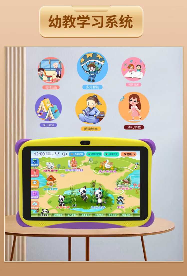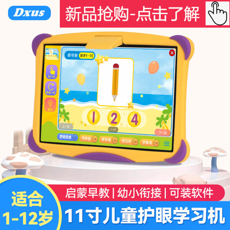 Bachelor's degree children's learning machine, early education machine, tablet computer, baby 1-3-6-12 years old point reading machine, eye protection, home teaching, preschool children, young children, connecting Chinese, mathematics, English, intelligent thinking machine, basic version 2+16G free pink silicone cover (preschool + primary school)
