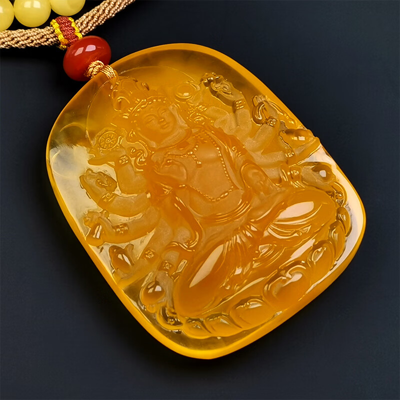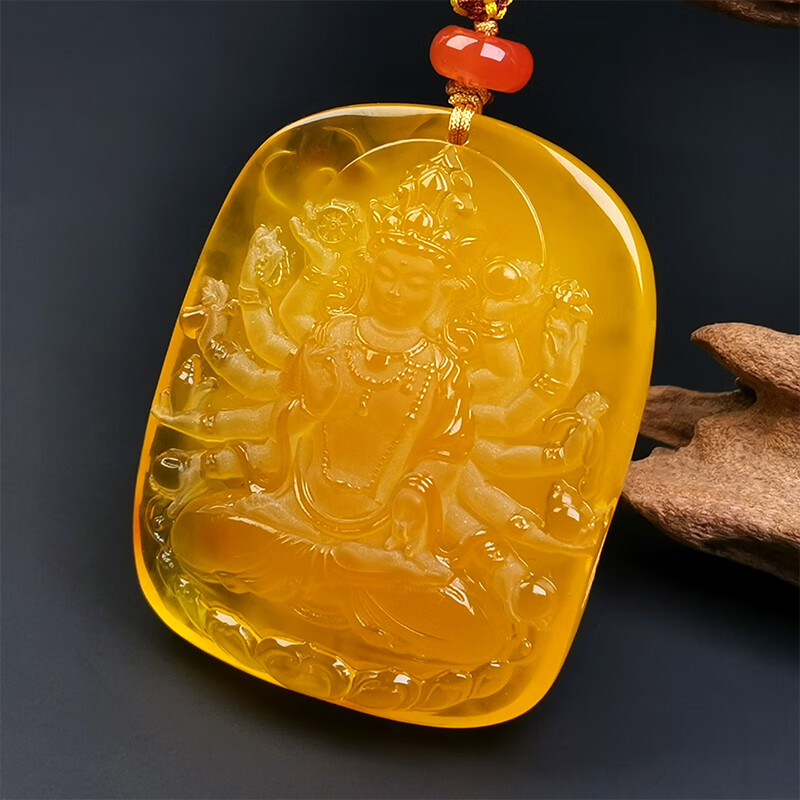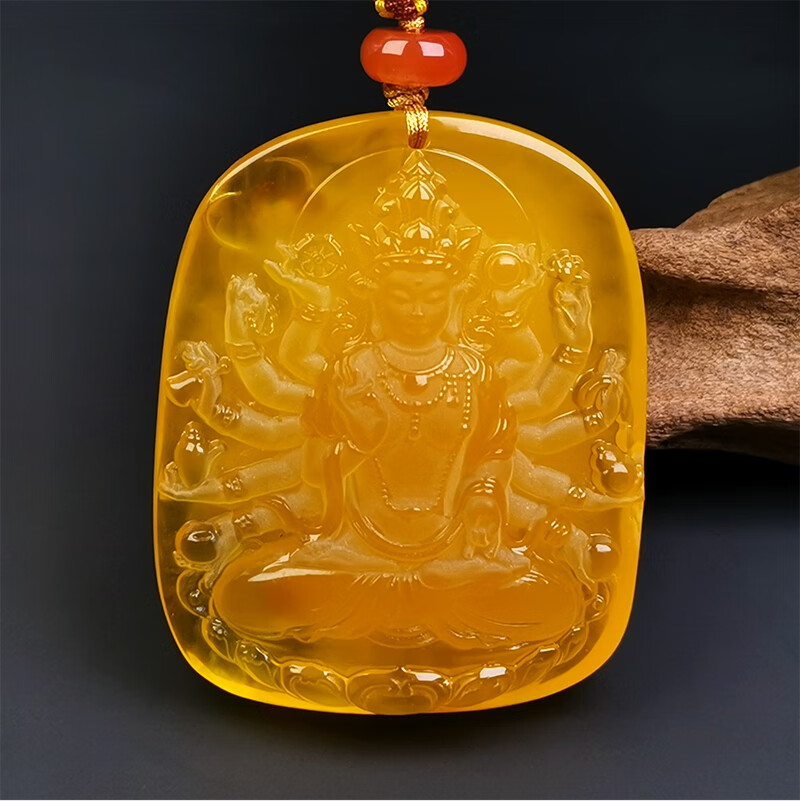 Hupai One thing, one picture, one certificate, natural beeswax pendant, Thousand-hand Guanyin Bodhisattva pendant necklace, sweater chain, flawless Guanyin 16.23g 47*38*15mm