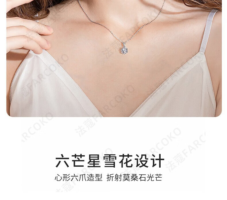 Farcoko six-pointed star snowflake pendant necklace, feminine and simple clavicle chain, Christmas, Valentine's Day, birthday gift for girlfriend, white gold (free engraving)