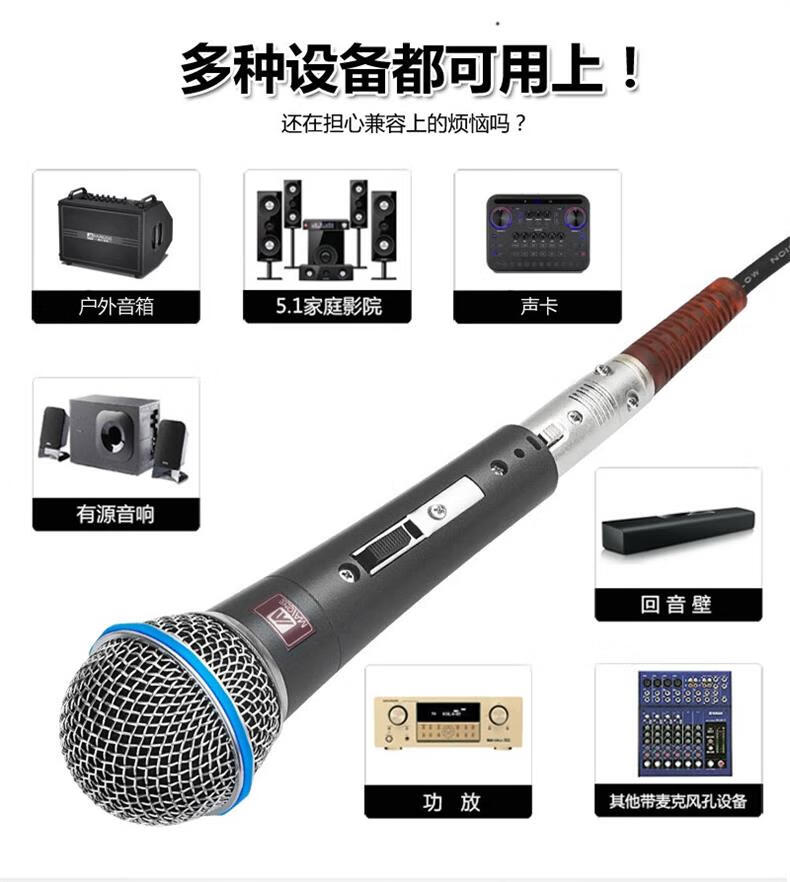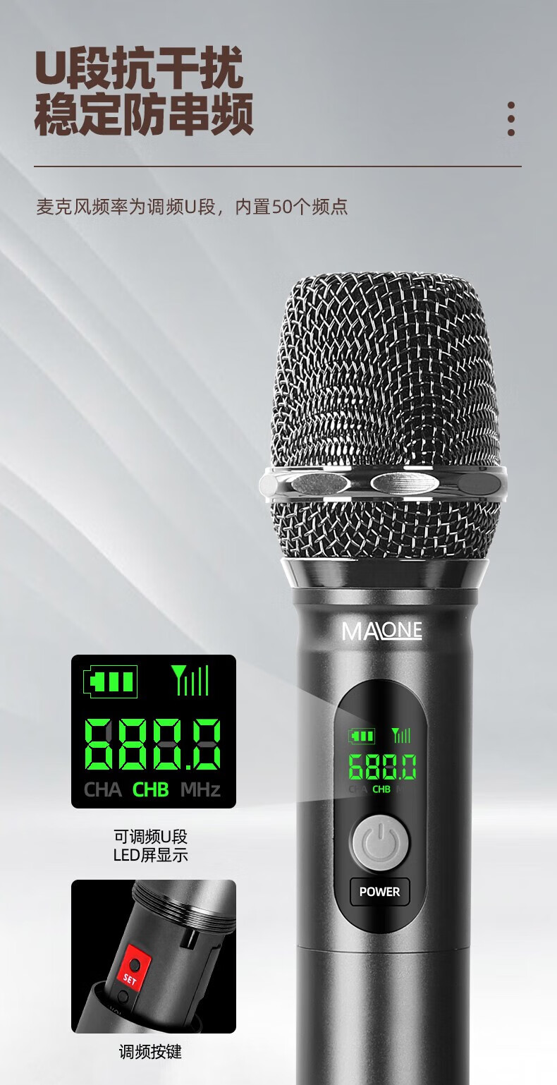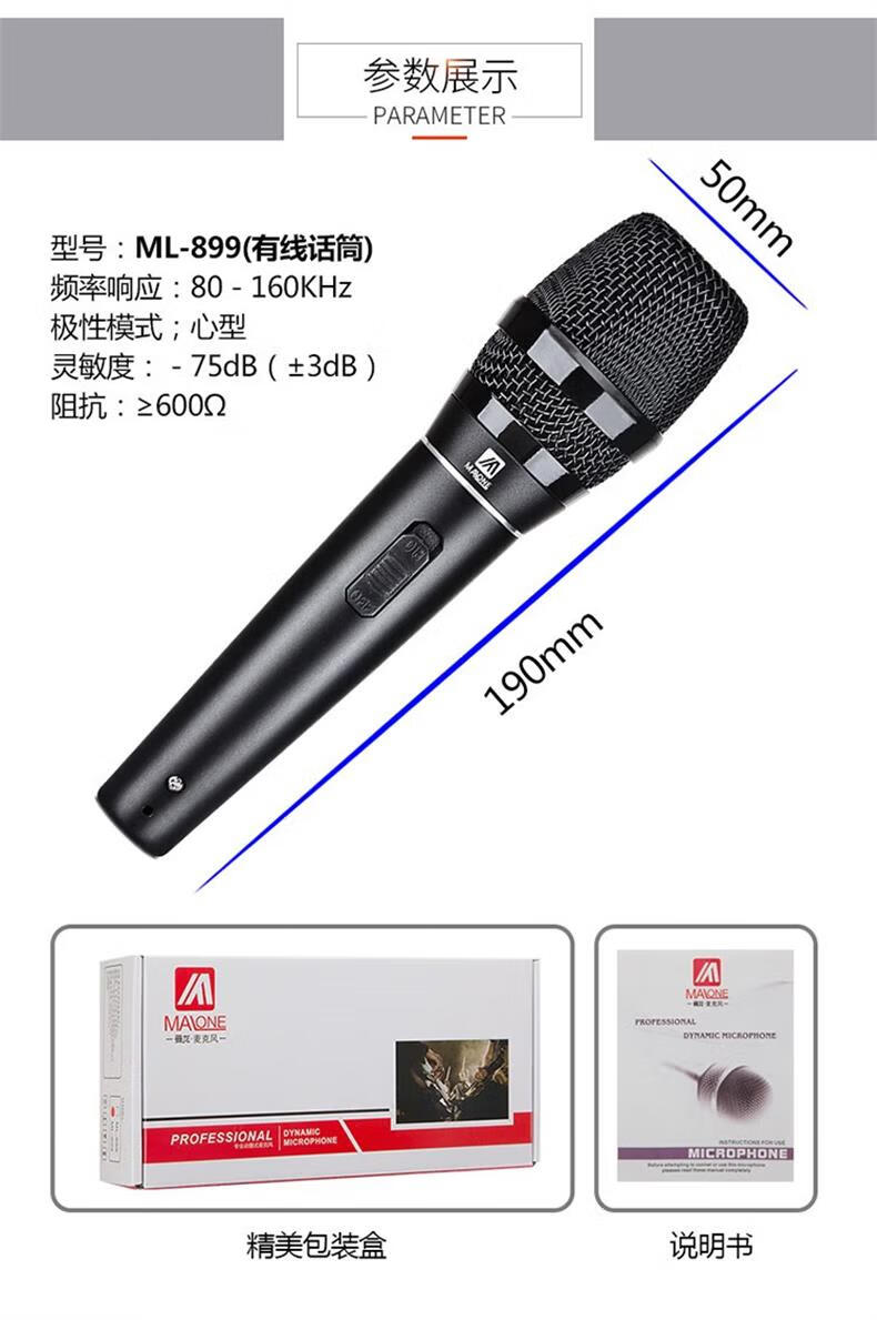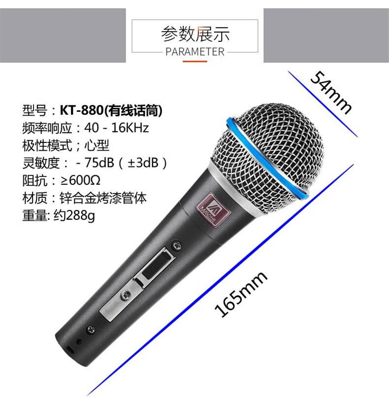 MALONE Wireless Microphone Universal Microphone Home KTV Singing Speech Stage K Song Speaker Audio Amplifier Universal KT-880 High Fidelity Sound Quality (5 Meters Cable)