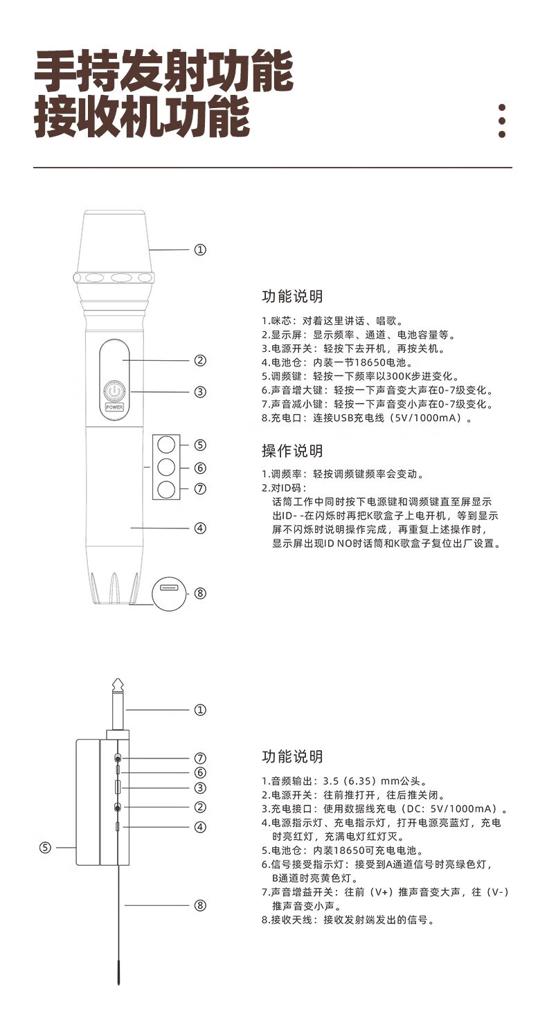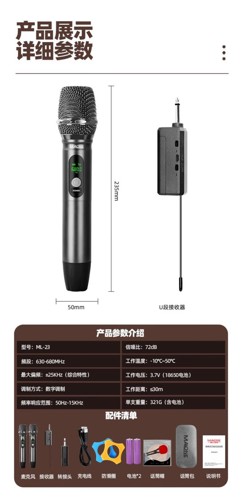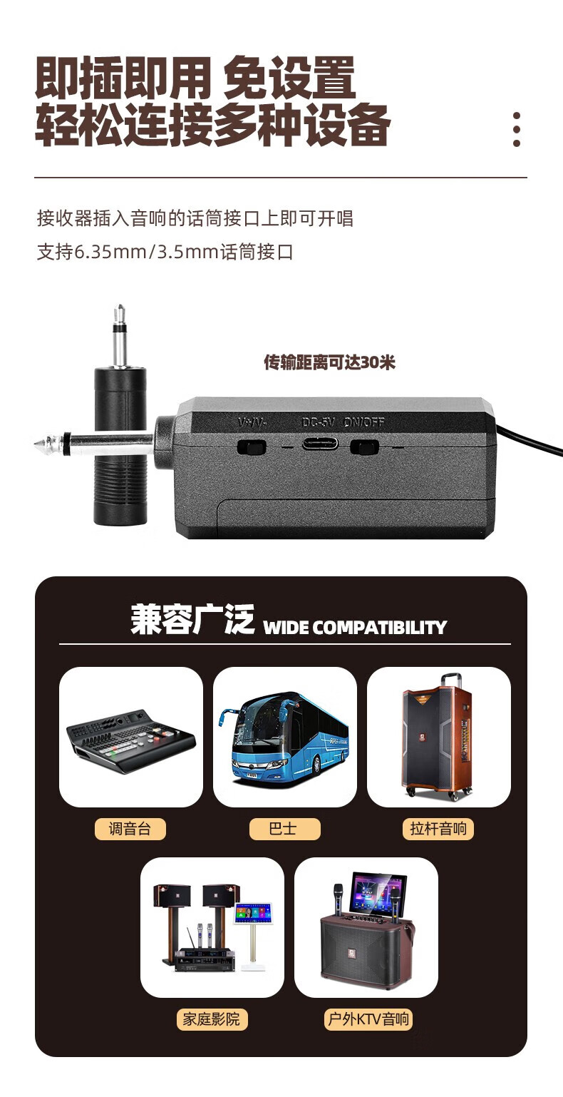MALONE Wireless Microphone Universal Microphone Home KTV Singing Speech Stage K Song Speaker Audio Amplifier Universal KT-880 High Fidelity Sound Quality (5 Meters Cable)