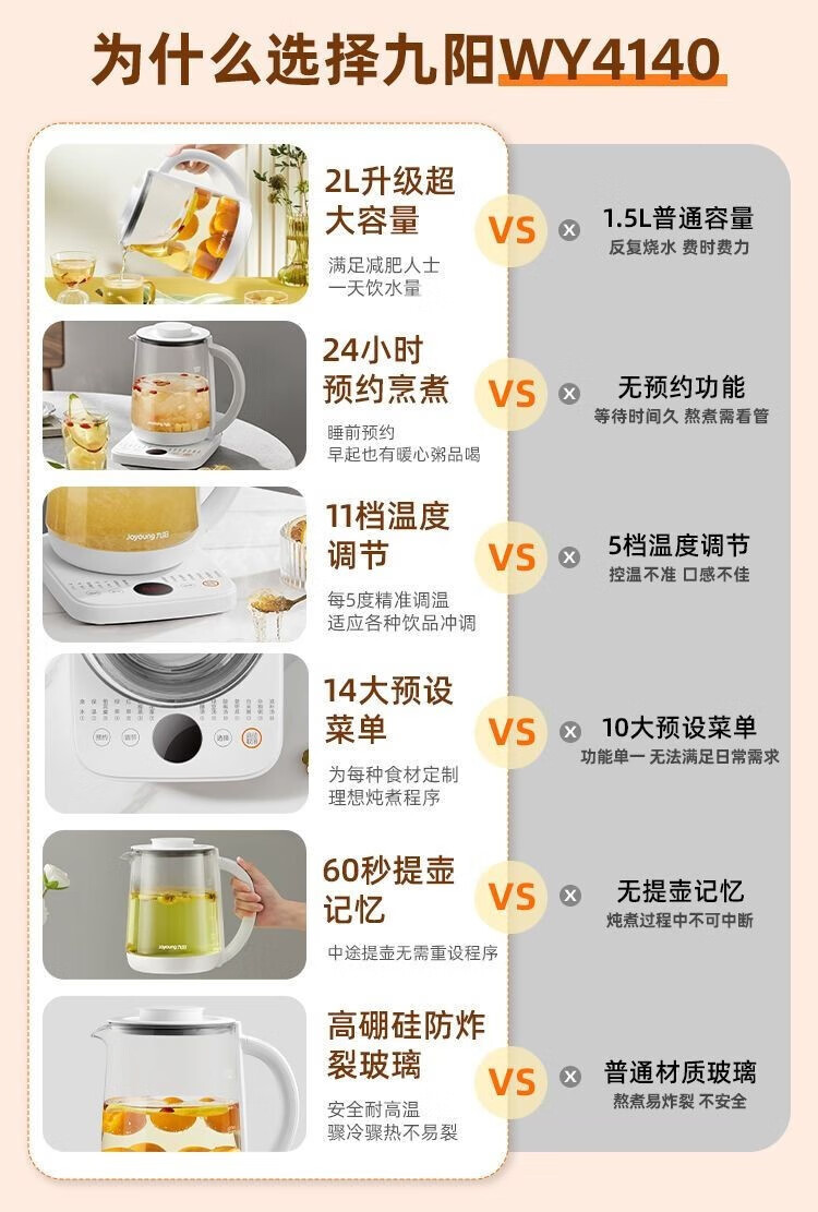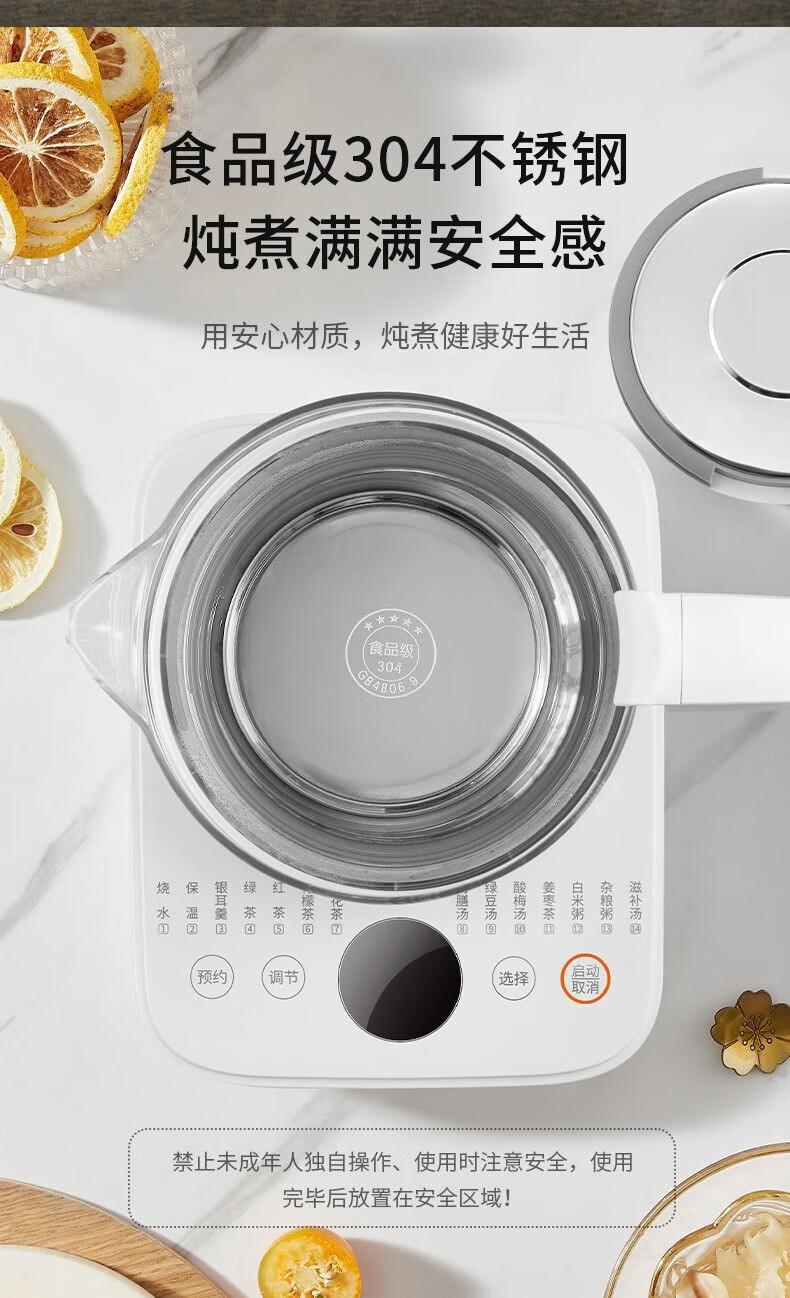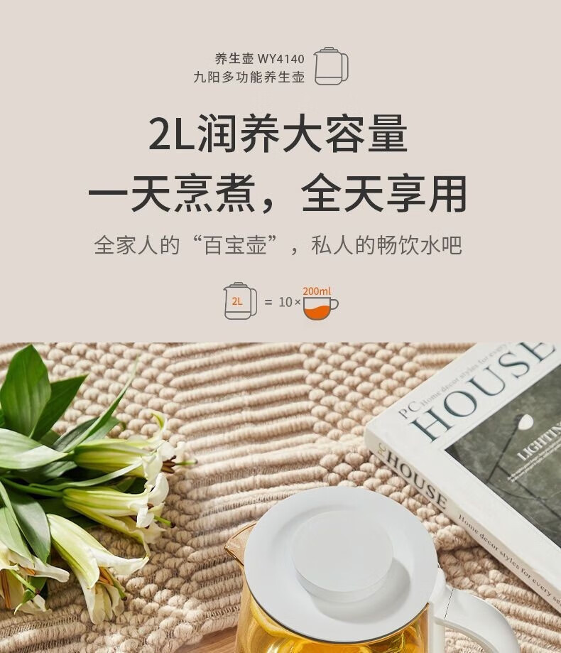 Joyoung health pot 2 liters L household fully automatic multi-function kettle teapot electric kettle flower teapot K20D-WY4140 white 2L